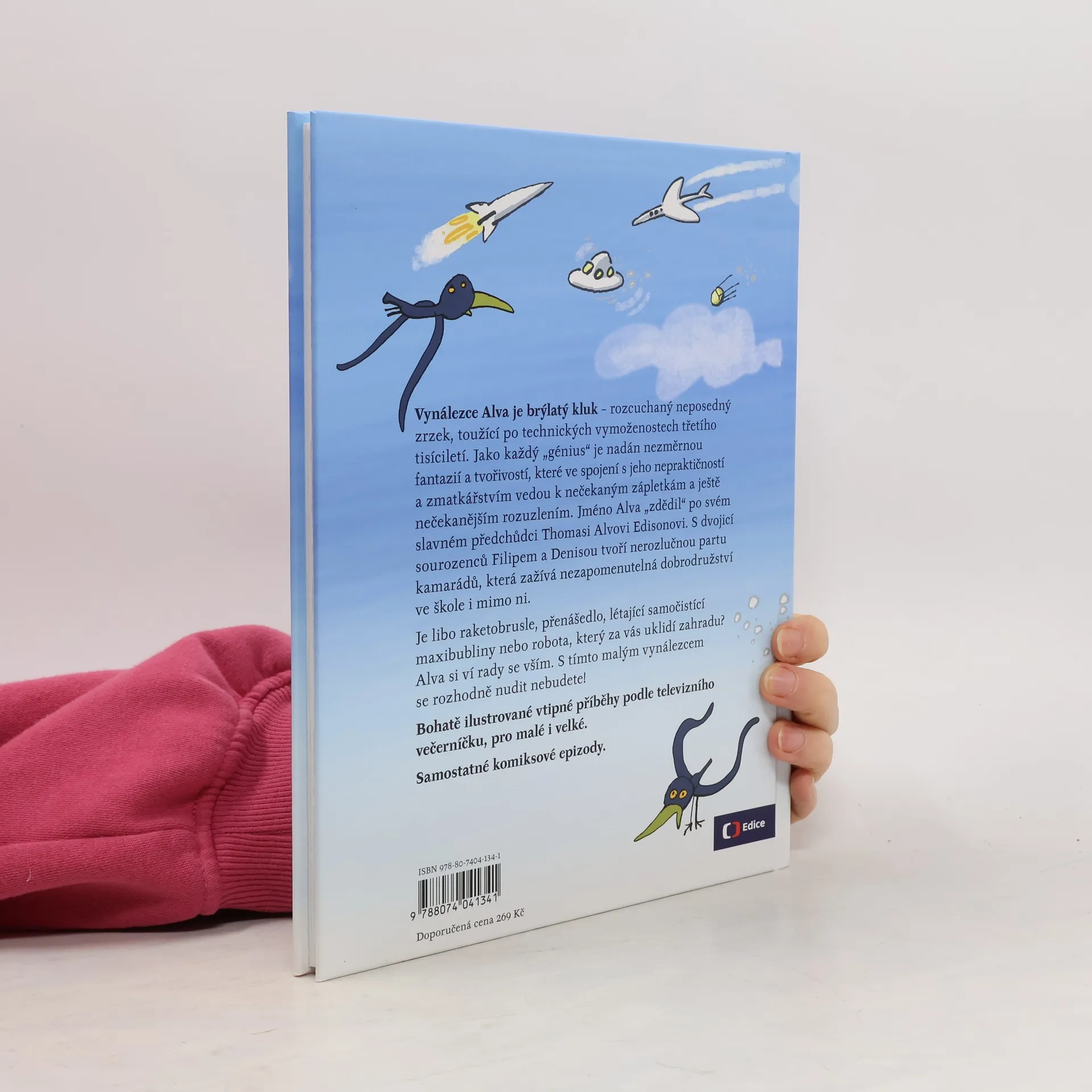 Je libo raketobrusle, přenášedlo, létající samočistící maxibubliny nebo robota, který za vás uklidí zahradu? Alva si ví rady se vším. S tímto vynálezcem se rozhodně nudit nebudete! Vynálezce Alva je brýlatý kluk – rozcuchaný neposedný zrzek, toužící po technických vymoženostech třetího tisíciletí. Jméno Alva „zdědil“ po svém slavném předchůdci T. A. Edisonovi. Jako každý génius je nadán nezměrnou fantazií a tvořivostí, které ve spojení s jeho nepraktičností a zmatkářstvím vedou k nečekaným zápletkám a ještě nečekanějším rozuzlením. S dvojicí sourozenců Filipem a Denisou tvoří nerozlučnou partu kamarádů, která zažívá neuvěřitelná dobrodružství ve škole i mimo ni. Náš příběh začíná první školní den… Bohatě ilustrované vtipné příběhy podle televizního večerníčku, pro malé i velké.