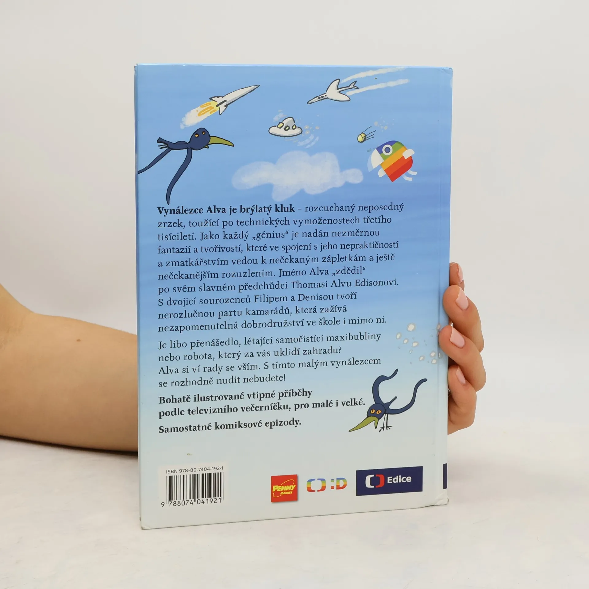 Je libo raketobrusle, přenášedlo, létající samočistící maxibubliny nebo robota, který za vás uklidí zahradu? Alva si ví rady se vším. S tímto vynálezcem se rozhodně nudit nebudete! Vynálezce Alva je brýlatý kluk – rozcuchaný neposedný zrzek, toužící po technických vymoženostech třetího tisíciletí. Jméno Alva „zdědil“ po svém slavném předchůdci T. A. Edisonovi. Jako každý génius je nadán nezměrnou fantazií a tvořivostí, které ve spojení s jeho nepraktičností a zmatkářstvím vedou k nečekaným zápletkám a ještě nečekanějším rozuzlením. S dvojicí sourozenců Filipem a Denisou tvoří nerozlučnou partu kamarádů, která zažívá neuvěřitelná dobrodružství ve škole i mimo ni. Náš příběh začíná první školní den… Bohatě ilustrované vtipné příběhy podle televizního večerníčku, pro malé i velké. 2.,upravené vydání.