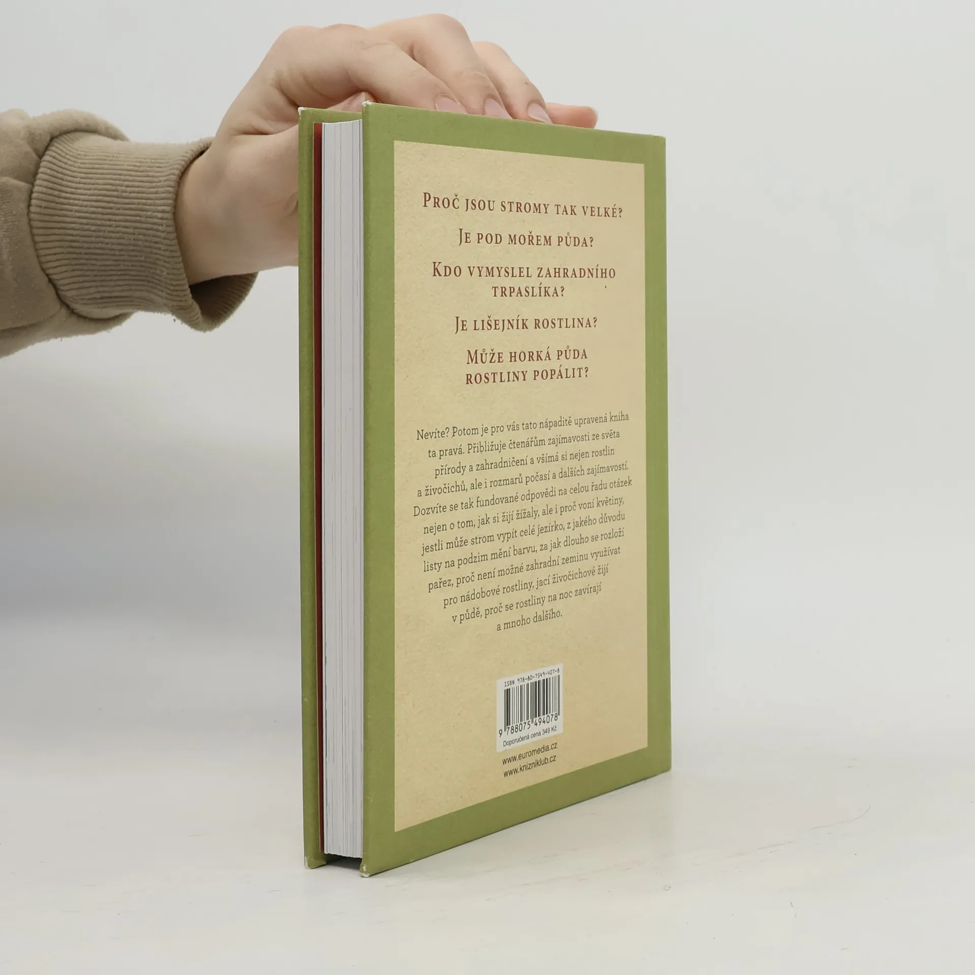 Nápaditě upravená publikace přibližuje čtenářům zajímavosti ze světa přírody a zahradničení. Je rozdělená na části, pracovně nazvané: Rostliny a semena, Květiny a ovoce, Pod zemí, Počasí, klima a roční období a Na zahradě. Všímá si rostlin, živočichů, rozmarů počasí a kromě obecných informací rozebírá i některé konkrétní zahradnické postupy, jako je například prořezávání rostlin či zavlažování. Dozvíte se tak fundované odpovědi na celou řadu otázek, nejen o tom, jak si žijí žížaly, ale i proč voní květiny, jestli může strom vypít celé jezírko, z jakého důvodu listy na podzim mění barvu, proč některé stromy mají jehličí a jiné rostliny zase trny, za jak dlouho se rozloží pařez, proč není možné zahradní zeminu využívat pro nádobové rostliny, jací živočichové žijí v půdě, jak rychle rostou stromy, proč se rostliny na noc zavírají a mnoho dalšího.