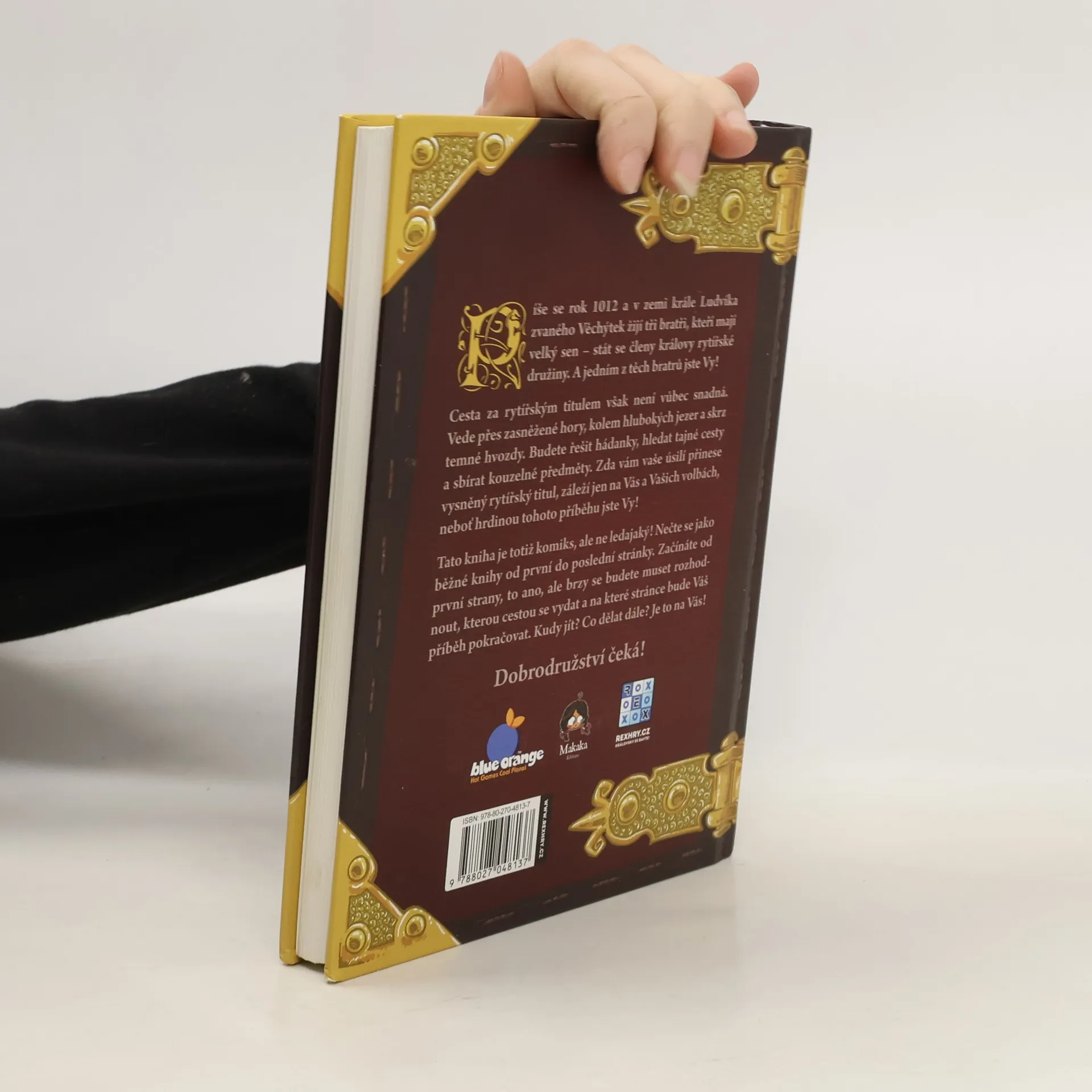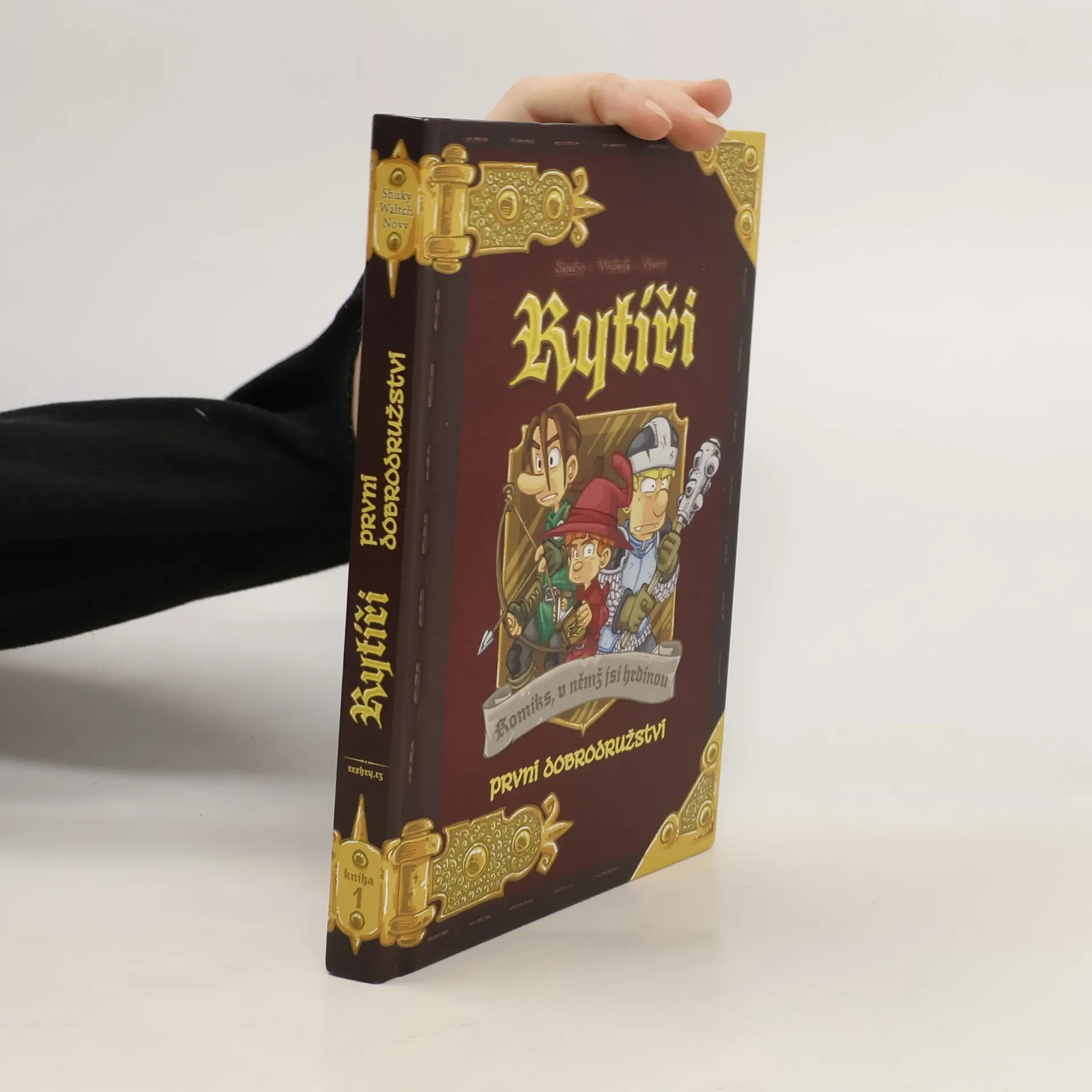 Rytíři: První dobrodružství je kniha z řady Komiks, v němž jsi hrdinou, v níž se originálně spojují dva oblíbené prvky: komiks s gamebookem, tedy s knihou, v níž vaše rozhodnutí určují další pokračování děje. V této komiksové knize se stanete jedním ze tří mladých sedláckých bratrů, kteří se rozhodli, že se stanou rytíři. Aby toho dosáhli, musí ale obstát v rytířské zkoušce. Budete s nimi prozkoumávat neznámé končiny, bojovat s lupiči, hledat poklady a získávat zbraně a magické předměty. Je jen na vás, kam se se svým hrdinou vydáte. Jeho osud je zcela ve vašich rukou. Svou obtížností, příběhem i zpracováním je hra obzvláště vhodná pro mladší hráče od desíti let.