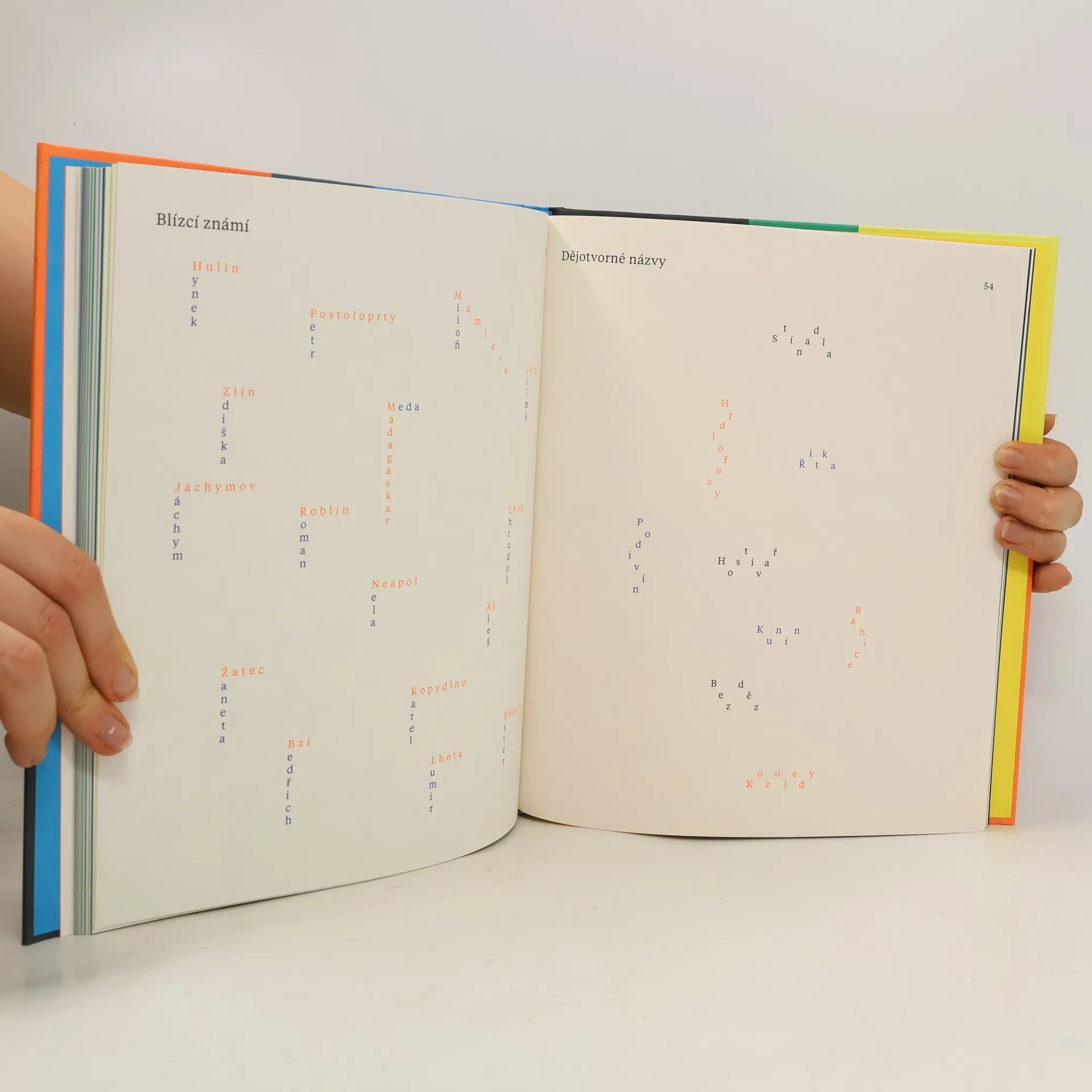 Věnováno všem názvům, které opustily obrazy, a všem podobiznám, které odmítly slova. Ono ovšem – jedno bez druhého se neobejde. Originální výtvarná knížka se zabývá vztahem a souvislostmi mezi obrazovou a slovní představivostí, symbiózou obrazu a slova. Obrazotvorností textu a slovotvorností obrazu. Ve formě typogramů si hraje s možnostmi prolínání obou výrazových prostředků nejrůznějším způsobem. Sbírku obrazových básní v japonské vazbě nápaditě koncipoval Marek Pistora ze studia Najbrt.