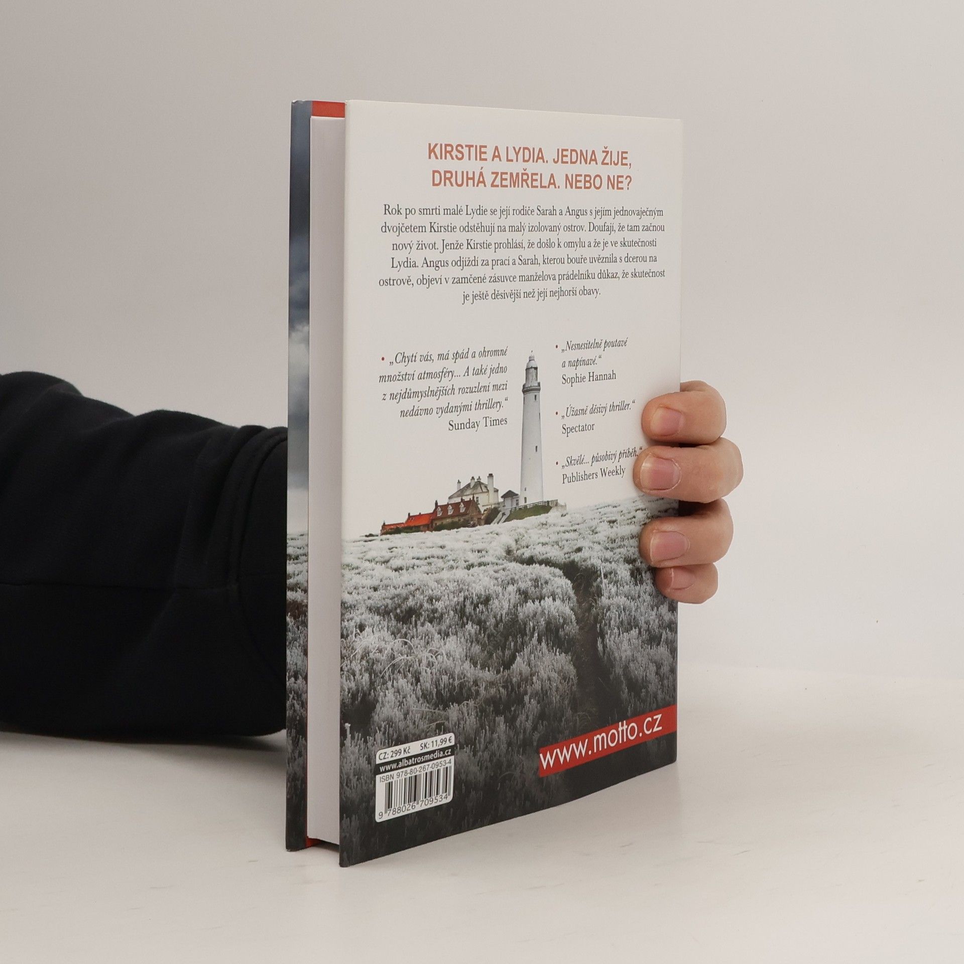 Rok po tragické smrti malé Lydie se její rodiče Angus a Sarah Moorcroftovi s jejím jednovaječným dvojčetem Kirstie odstěhují na malý skotský ostrov, který Angus zdědil po své babičce. Doufají, že v novém prostředí se jim podaří složit dohromady střípky jejich starého života. Jenže pak jejich zbývající dcera Kirstie prohlásí, že právě ona je Lydie a Kirstie je dvojčetem, které zemřelo – a jejich svět se opět hroutí. S blížící se zimou je Angus nucen odcestovat z ostrova kvůli práci. Sarah trpí pocitem osamělosti a Kirstie (nebo je to Lydie?) je čím dál tím víc nevyrovnaná. Bouře zanechá Sarah s dcerou na ostrově zcela odříznuté a Sarah se začne znovu trápit minulostí – co se opravdu stalo toho osudného dne, kdy jedna z jejích dcer zemřela?