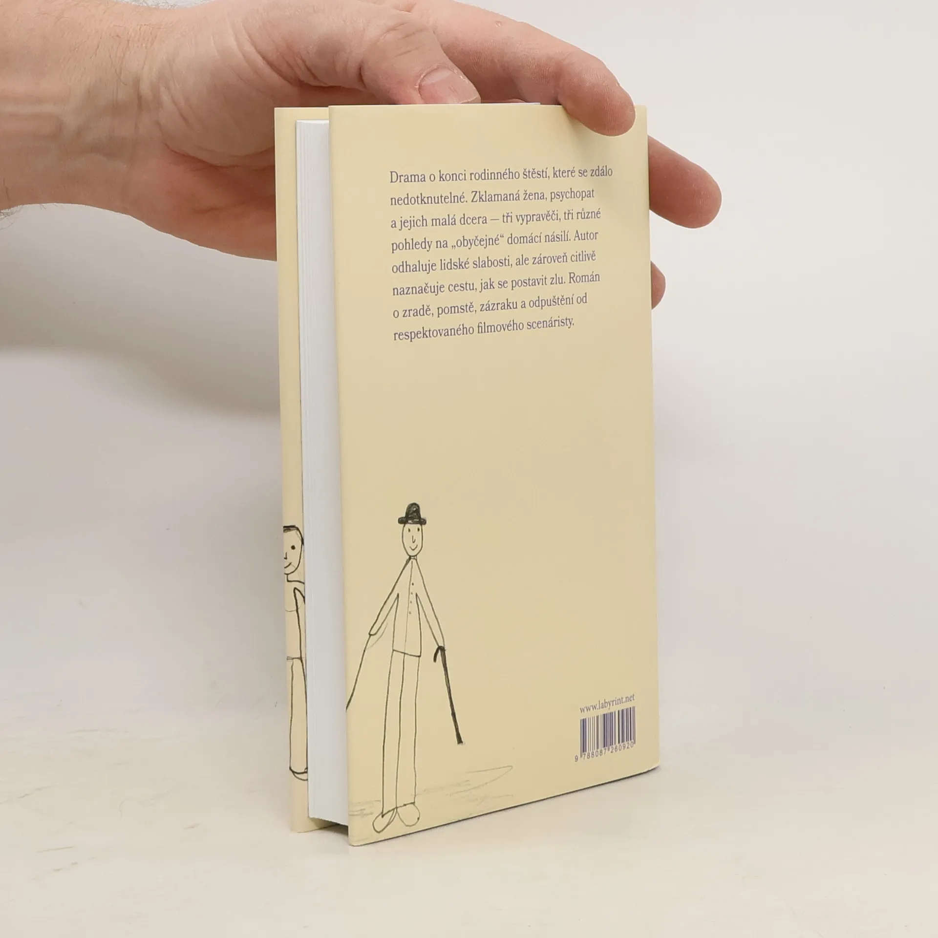 Drama o konci rodinného štěstí, které se zdálo nedotknutelné. Zklamaná žena, psychopat a jejich malá dcera — tři vypravěči, tři různé pohledy na „obyčejné“ domácí násilí. Autor odha-luje lidské slabosti, ale zároveň citlivě naznačuje cestu, jak se postavit zlu. Román o zradě, pomstě, zázraku a odpuštění od respektovaného filmového scenáristy.
