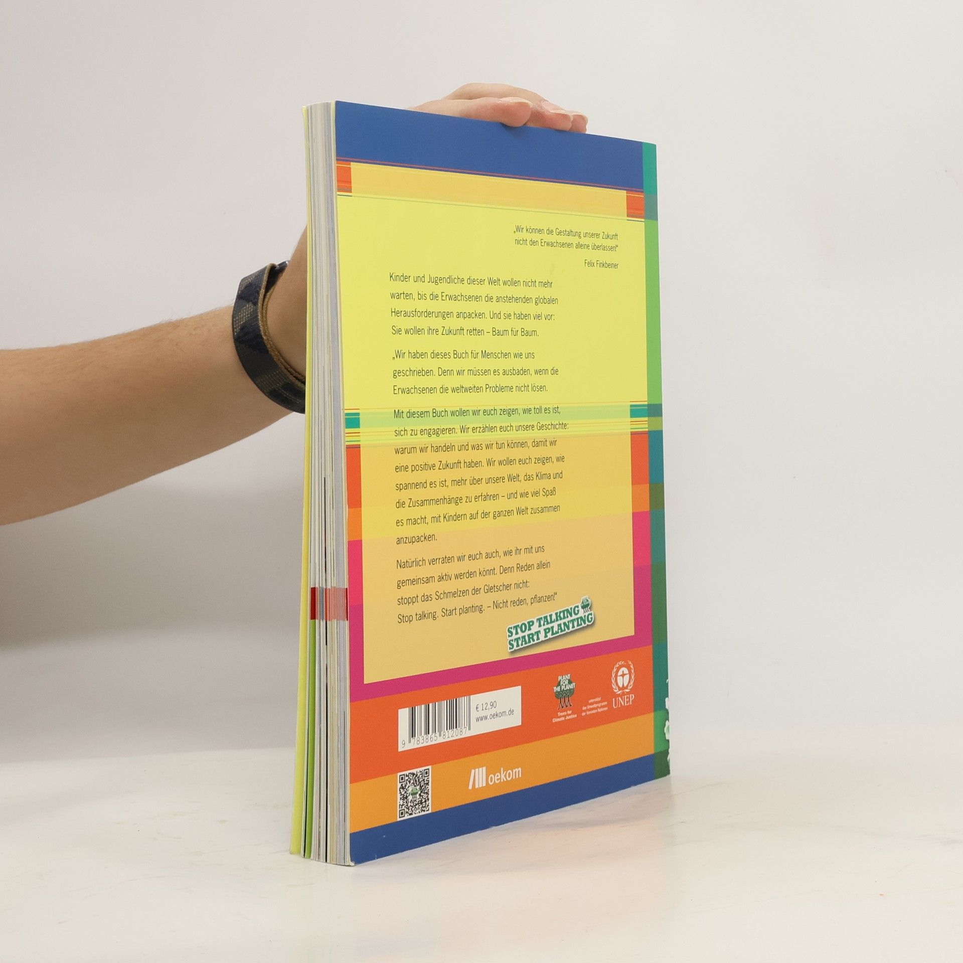 »Wir können die Gestaltung unserer Zukunft nicht den Erwachsenen alleine überlassen!« Felix Finkbeiner Kinder und Jugendliche dieser Welt wollen nicht mehr warten, bis die Erwachsenen die anstehenden globalen Herausforderungen anpacken. Und sie haben viel vor: Sie wollen ihre Zukunft retten – Baum für Baum. »Wir haben dieses Buch für Menschen wie uns geschrieben. Denn wir müssen es ausbaden, wenn die Erwachsenen die weltweiten Probleme nicht lösen. Mit diesem Buch wollen wir euch zeigen, wie toll es ist, sich zu engagieren. Wir erzählen euch unsere Geschichte: warum wir handeln und was wir tun können, damit wir eine positive Zukunft haben. Wir wollen euch zeigen, wie spannend es ist, mehr über unsere Welt, das Klima und die Zusammenhänge zu erfahren – und wie viel Spaß es macht, mit Kindern auf der ganzen Welt zusammen anzupacken. Natürlich verraten wir euch auch, wie ihr mit uns gemeinsam aktiv werden könnt. Denn Reden allein stoppt das Schmelzen der Gletscher nicht: Stop talking, Start planting! – Nicht reden, pflanzen!«