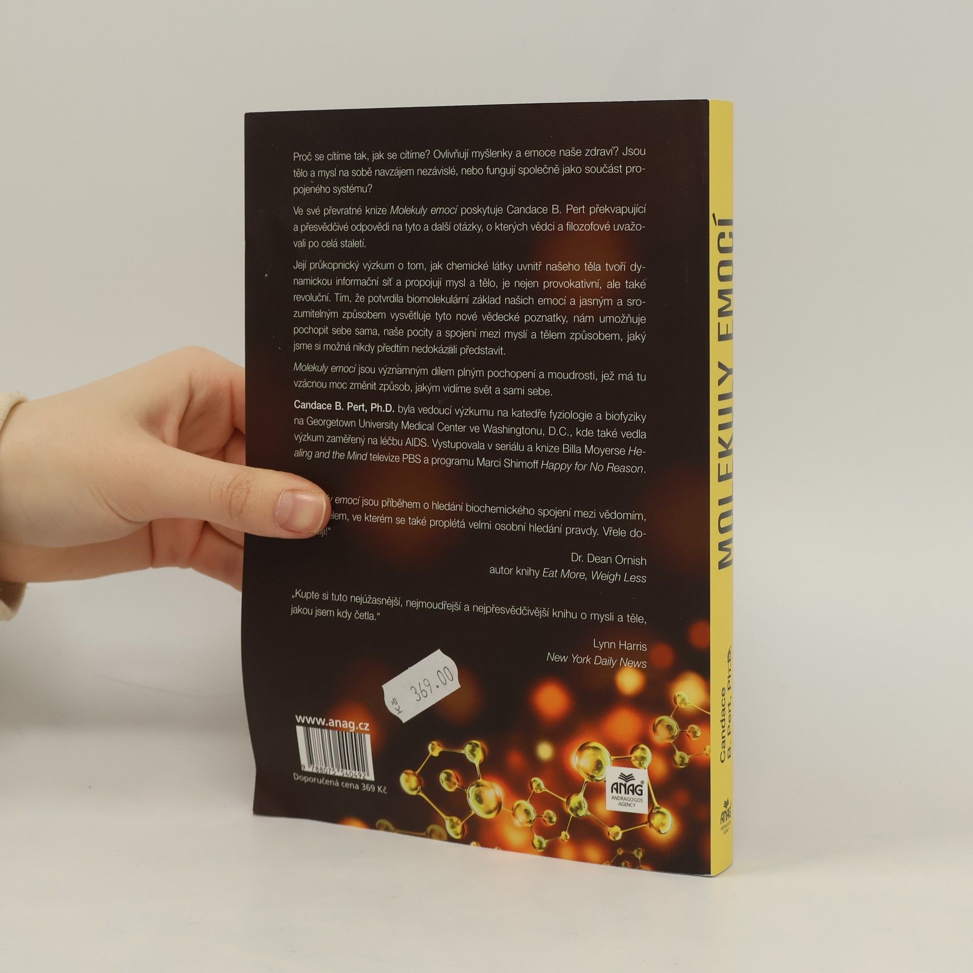Proč se cítíme tak, jak se cítíme? Jak naše myšlenky a emoce ovlivňují naše zdraví? Jsou naše tělo a mysl od sebe navzájem odlišné, nebo fungují společně jako součást propojeného systému? Propojení těla a mysli. Ve své průkopnické knize Molekuly emocí Candace Pert poskytuje překvapivé a přesvědčivé odpovědi na tyto a další náročné otázky, o kterých vědci a filozofové uvažovali už po staletí. Její průkopnický výzkum o tom, jak chemikálie uvnitř našich těl tvoří dynamickou informační síť, propojující mysl a tělo, není pouze provokativní, nýbrž revoluční. Na základě stanovení biomolekulárního základu našich emocí a vysvětlení těchto nových vědeckých poznatků jasným a přístupným způsobem nám autorka umožňuje pochopit sama sebe, své pocity a spojení mezi naší myslí a naším tělem – těla-mysli – způsobem, který jsme si možná nikdy předtím nemohli představit. Molekuly emocí je dominantní dílo, plné pochopení a moudrosti a ovládnutí této vzácné síly ke změně způsobu, jakým vidíme svět a sami sebe.