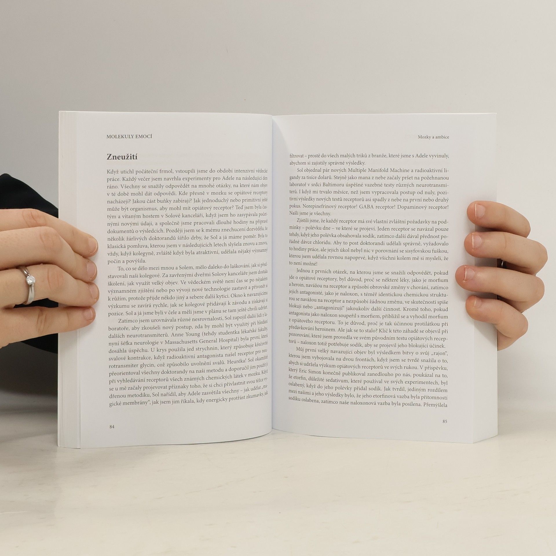 Pokud hledáte knihu o hormonech, tak bych Molekuly emocí moc nedoporučoval (o hormonech se zde mluví velmi povrchově), ale pokud hledáte příběh zajímavé vědkyně, tak jste na správném místě. Já bohužel hledal první možnost, a proto jsem byl často znuděný, když jsem místo podrobném popisu funkce hormonu dostal příběh z osobního života vědkyně.