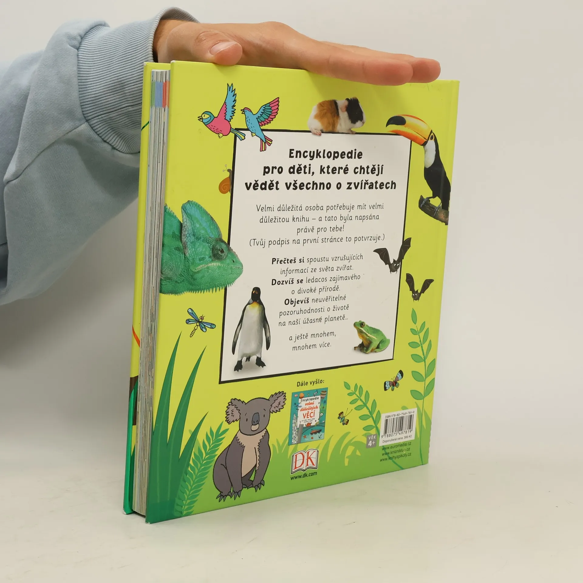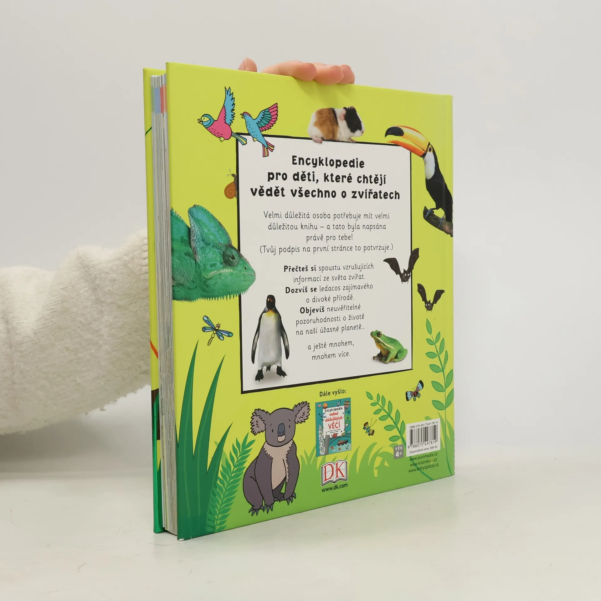 Pro děti, které chtějí o zvířatech vědět všechno. Zvídavé děti od 5 let se v této přehledné encyklopedii s bohatými ilustracemi dozvědí vzrušující a velmi důležité informace o světě zvířat, která s námi obývají naši planetu – poznají nejen zvířata žijící v různých prostředích nebo dokonce v extrémních podmínkách, ale i zvířata používající originální taktiky k přežití, obraně či shánění potravy, zvířata lecčím pozoruhodná, zvířata ohrožená… a vůbec se dozvědí spoustu zajímavostí, které v jiných knihách nenajdou. Pro zvídavé milovníky zvířat je tato knížka k nezaplacení!