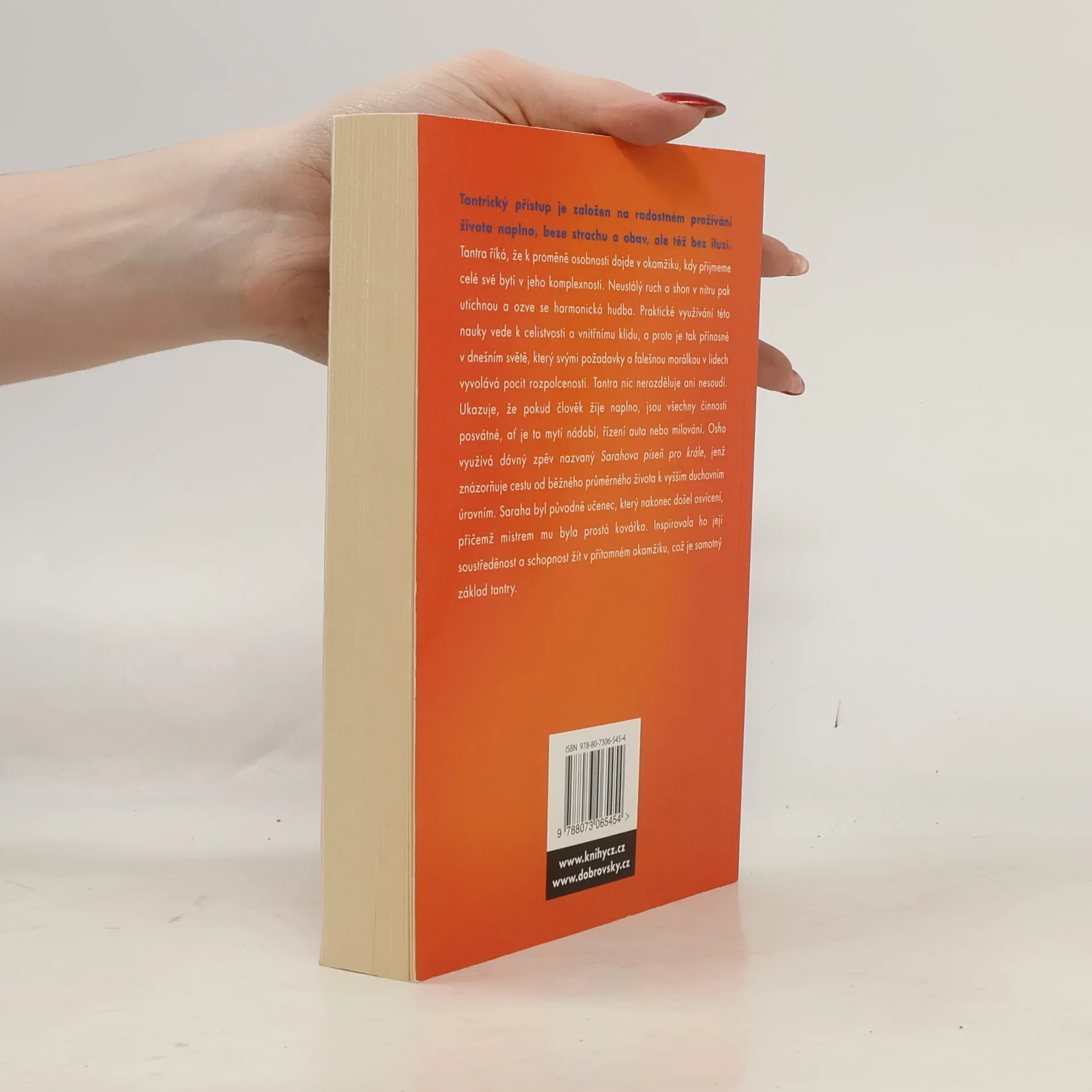 Evoluce prostřednictvím lásky Základním tématem těchto promluv mistra Osho je tantrický přístup k životu, jenž je založený na radosti, prožívání života naplno, beze strachu a obav. Je to naprosté propojení s existencí, která člověku nabízí nekonečně mnoho darů, ale lidé je většinou nevidí a nedokážou ocenit. Osho využívá dávný indický zpěv nazvaný Sarahova píseň pro krále, jehož jednotlivé sútry ukazují cestu od běžného průměrného života k vyšším duchovním úrovním. Je to píseň člověka, který opustil výhodné místo u dvora a našel si zvláštního gurua – kovářku vyrábějící šípy. K údivu všech lidí, kteří ho považovali za velkého mudrce, s ní pak žil na pohřebišti a zpíval a tančil. Jeho píseň je určena králi, jenž se ho snažil přemluvit, aby se vrátil k bývalému způsobu života. Ale Saraha mu ukázal, co je skutečný život prožívaný s radostí a nadšením. Osho na těchto sútrách objasňuje skutečnou podstatu tantry, která bývá na Západě často mylně chápána jako sexuální praktika, ale ve skutečnosti je sex pouhým odrazovým můstkem k nejvyšší úrovni života propojeného s celou existencí. A pouze takový život má skutečnou hodnotu a je oslavou každého přítomného okamžiku.