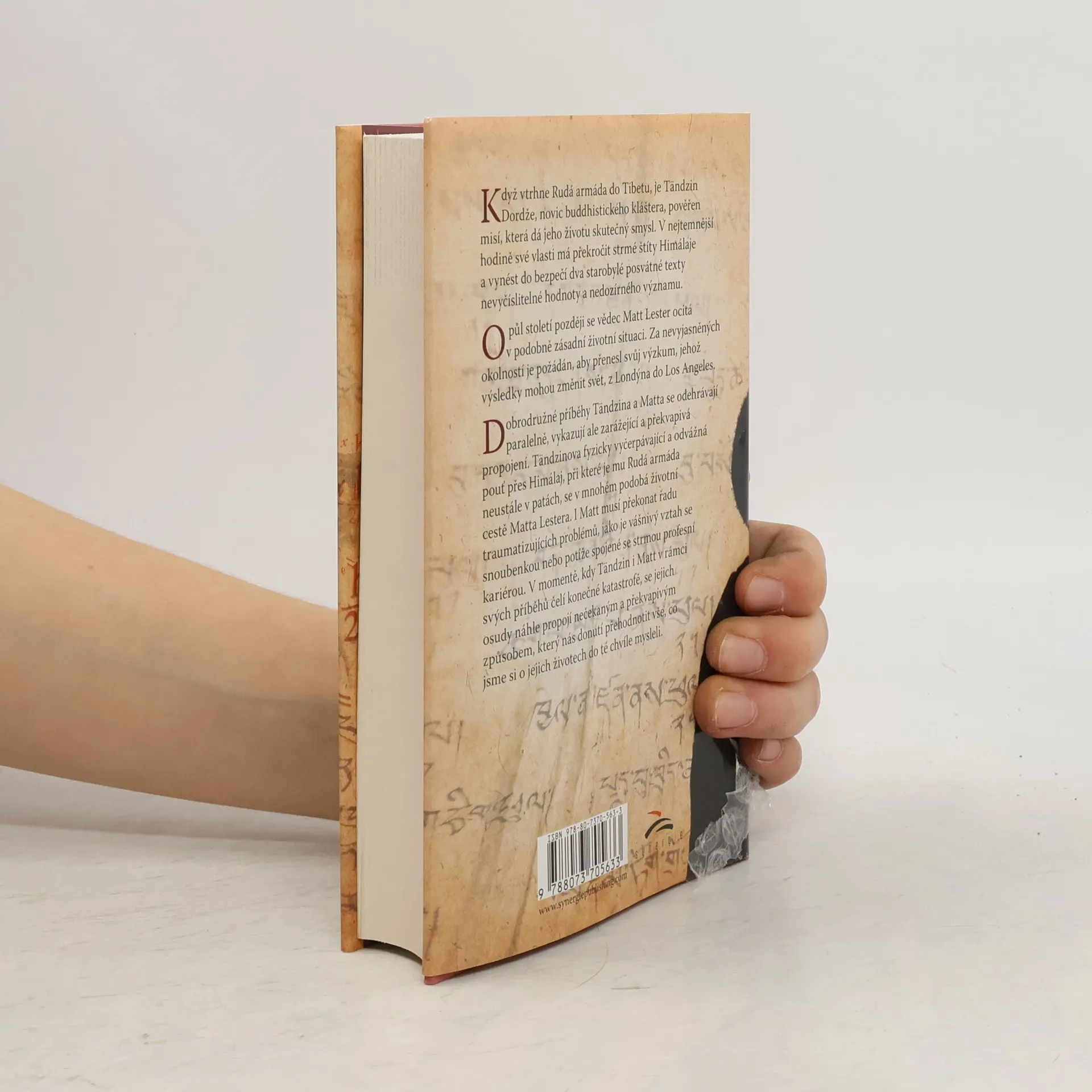 Když vtrhne Rudá armáda do Tibetu, je Tändzin Dordže, novic buddhistického kláštera, pověřen misí, která dá jeho životu skutečný smysl. V nejtemnější hodině své vlasti má překročit strmé štíty Himálají a vynést do bezpečí dva starobylé posvátné texty nevyčíslitelné hodnoty a nedozírného významu. O půl století později se vědec Matt Lester ocitá v podobně zásadní životní situaci. Za nevyjasněných okolností je požádán, aby přenesl svůj výzkum, jehož výsledky mohou změnit svět, z Londýna do Los Angeles. Dobrodružné příběhy Tändzina a Matta se odehrávají paralelně, vykazují ale zarážející a překvapivá propojení. Tändzinova fyzicky vyčerpávající a odvážná pouť přes Himálaje, při které je mu Rudá armáda neustále v patách, se v mnohém podobá životní cestě Matta Lestera. I Matt musí překonat řadu traumatizujících problémů, jako je vášnivý vztah se snoubenkou Isabellou nebo potíže spojené se strmou profesní kariérou. V momentě, kdy Tändzin i Matt v rámci svých příběhů čelí konečné katastrofě, se jejich osudy náhle propojí nečekaným a překvapivým způsobem, který nás donutí přehodnotit vše, co jsme si o jejich životech do té chvíle mysleli.