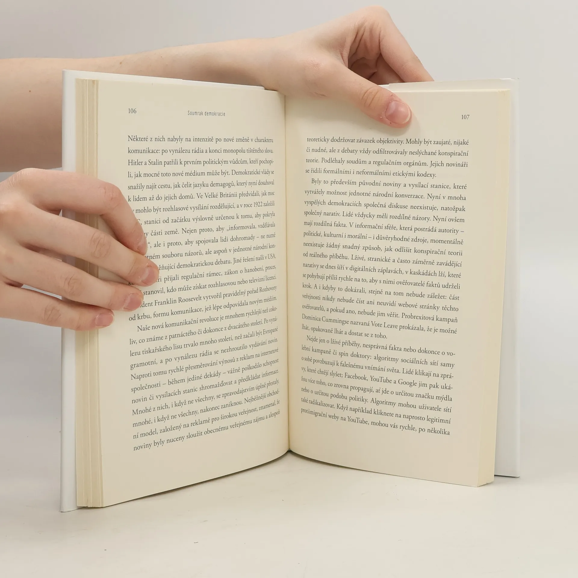 Svůdná přitažlivost autoritářství Renomovaná americká novinářka a historička se ve své nejnovější knize věnuje znepokojivému fenoménu posledních let – antidemokratickým trendům, které jsou stále patrnější jak ve východní a západní Evropě, tak i ve Spojených státech. Anne Applebaumová patří k prvním autorům, kteří ve svých novinových článcích na tuto skutečnost upozornili. V knize vysvětluje, proč se elity v demokratických státech začaly přiklánět k nacionalismu a autoritářství. Na známých příkladech ukazuje příchod nové vlny zastánců iliberalismu a popisuje, jak ke změně společenského pořádku tito lidé využívají konspirační teorie, politickou polarizaci, sociální média, a dokonce i nostalgii. Autoritativní vůdci moderní doby nejsou osamělými diktátory, při svém vládnutí se spoléhají na politické spojence, loajální úředníky či mediálně známé osobnosti, které jim pomáhají vydláždit cestu a podporují jejich vzestup. A na oplátku tyto své spojence odměňují participací na moci a bohatství. Naléhavá, a přitom elegantně napsaná kniha Soumrak demokracie je brilantním rozborem politických posunů, které otřásají světem, a zároveň výzvou k cestě nazpět k demokratickým hodnotám.