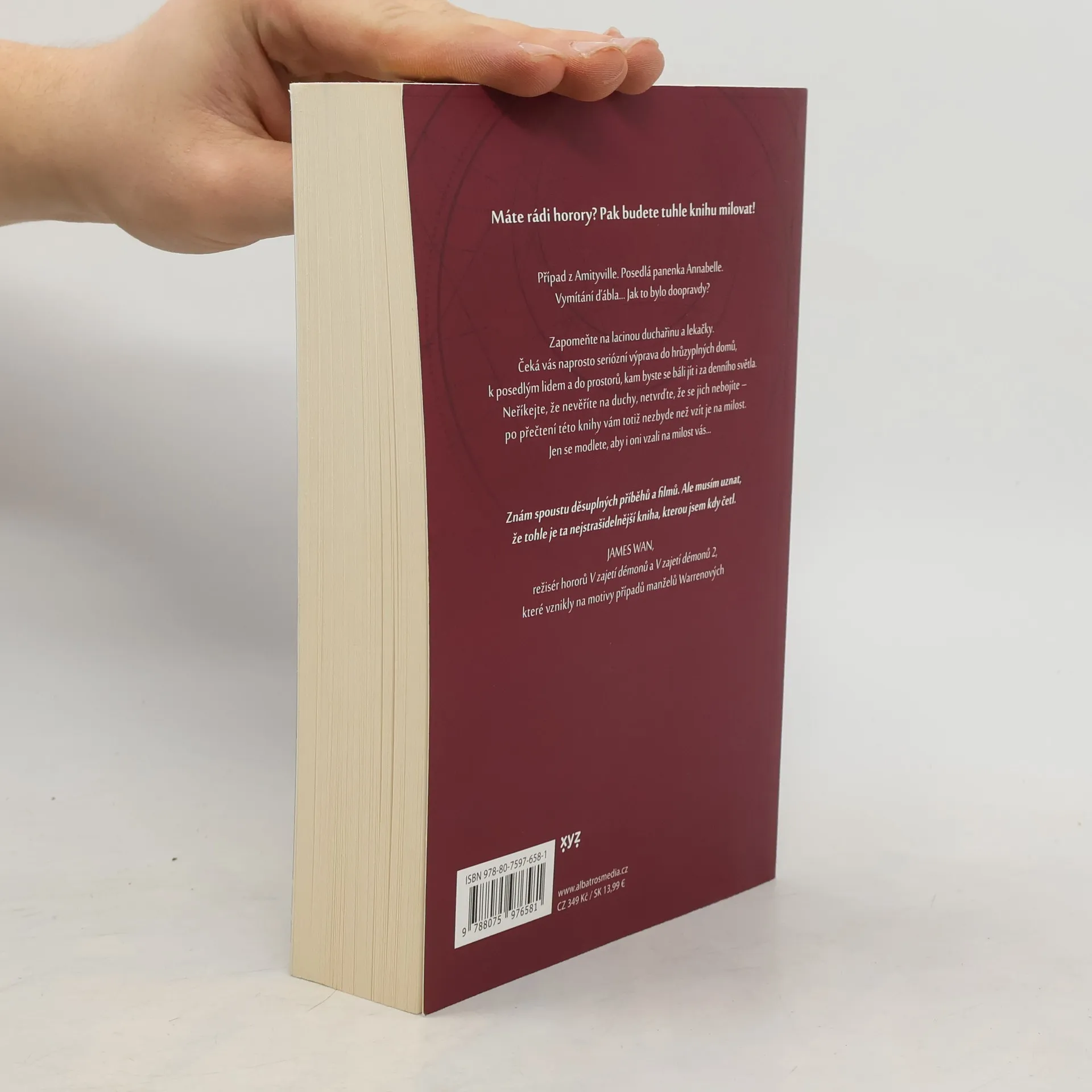Neuvěřitelný příběh Eda a Lorraine Warrenových, skutečných "lovců duchů". Nejstrašidelnější kniha všech dob Zapomeňte na lacinou duchařinu, čeká vás naprosto seriózní výprava do hrůzyplných domů, k postelím posedlých lidí a do prostorů, kam byste se báli jít i za denního světla. Neříkejte, že nevěříte na duchy, netvrďte, že se jich nebojíte – po přečtení této knihy, založené na autentických svědectvích a zkušenostech skutečných lovců duchů, manželů Warrenových, vám totiž nezbyde než vzít duchy na milost. Jen se modlete, aby i oni vzali na milost vás...