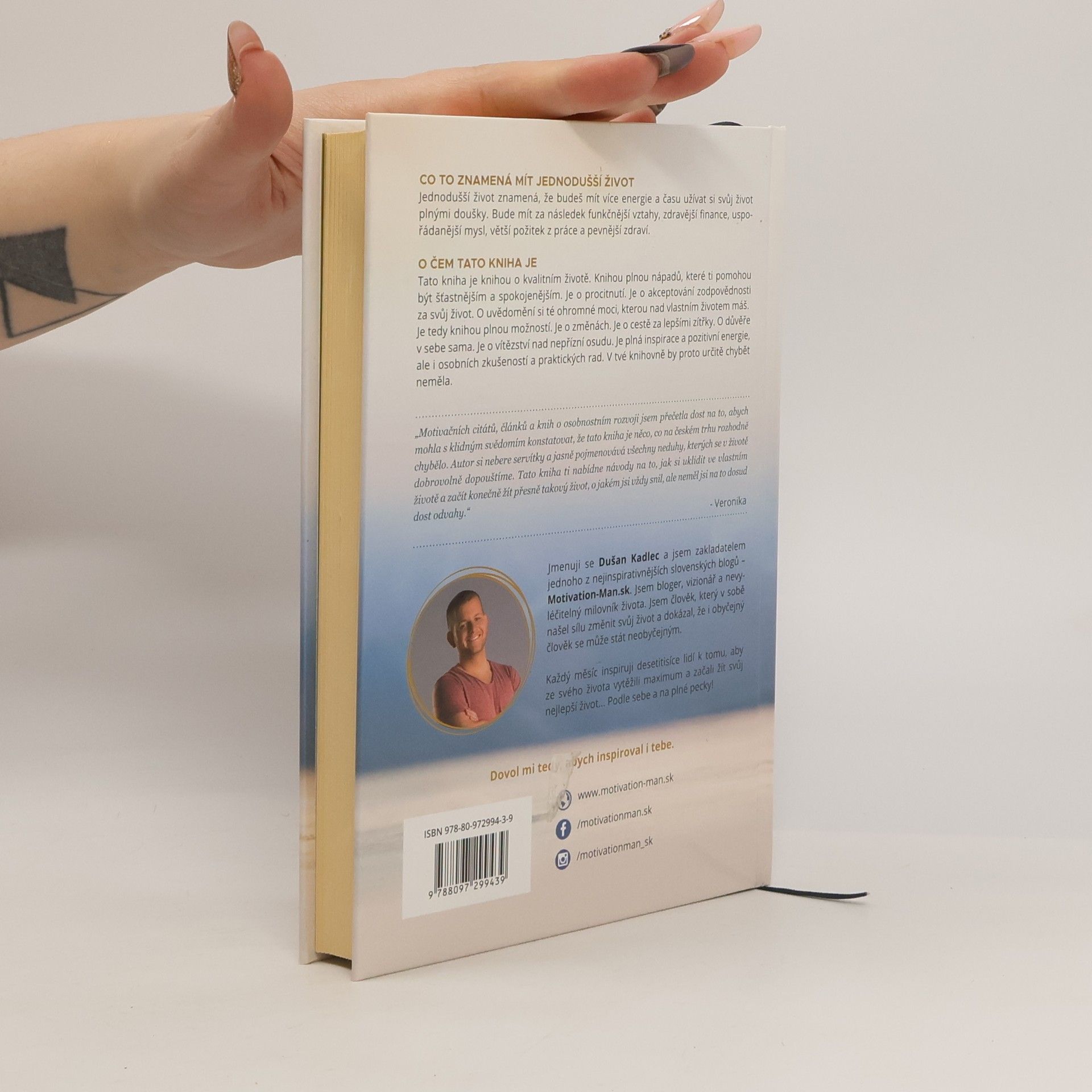 Tato kniha, oceněná titulem Kniha roka 2017 v kategorii Životní styl, je o kvalitním životě a nabízí nápady, jak dosáhnout štěstí a spokojenosti. Zaměřuje se na procitnutí a přijetí odpovědnosti za svůj život, přičemž zdůrazňuje moc, kterou máme nad svým osudem. Obsahuje 100 způsobů, jak si komplikujeme život každodenními rozhodnutími, ale nenabízí kritiku; naopak, poskytuje vysvětlení a praktické rady pro zlepšení situace. Kniha je psána jednoduše a poutavě, takže čtení je příjemné. Nabízí funkčnější vztahy tím, že ukazuje, jak se vyhnout dramatu a jak budovat kvalitní a upřímné vztahy. Dále se zaměřuje na zdraví, připomíná základní pilíře a jak o ně pečovat. Pomůže ti uspořádat život a uvědomit si, co je skutečně důležité. Kniha také posiluje uvědomělou mysl a ukazuje, jaké myšlenky vítat a kterých se zbavit. Zdravější finance jsou dalším tématem, přičemž nabízí principy, které ti pomohou dostat se do pozitivního finančního stavu. Nakonec se zaměřuje na práci, kterou si zamiluješ, a poskytuje informace, které tě nasměrují k naplnění v profesním životě.