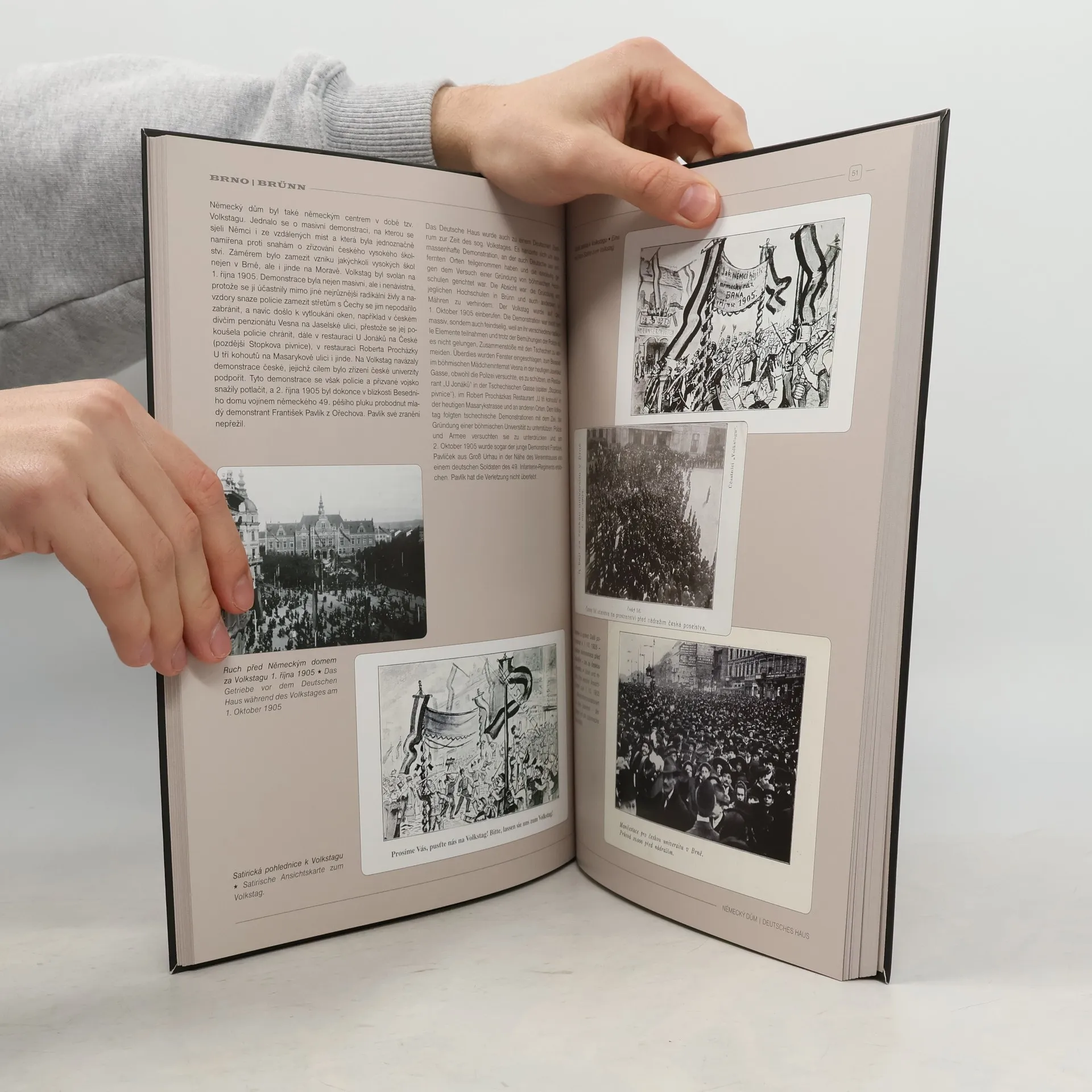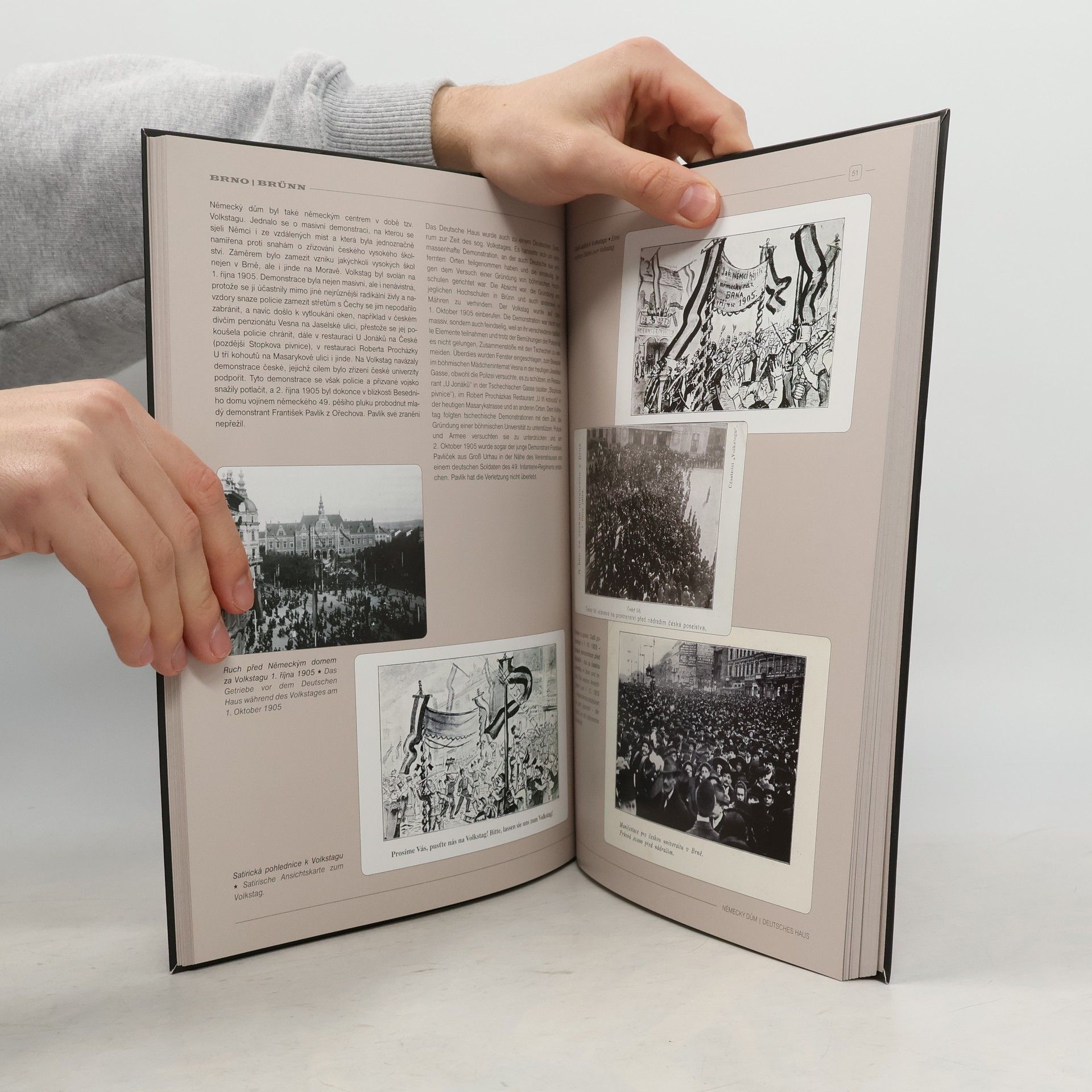 Knížka zachycuje historii jedné z významných brněnských staveb z konce 19. století. Šlo o stavbu architektonicky zajímavou, velmi luxusní, s tehdy největším sálem v Brně, urbanisticky dotvořenou velkým pomníkem císaře Josefa II., který byl v přilehlém parku postaven dva roky po dokončení budovy. Socha Josefa II. přežila jen pár měsíců první republiky a byla natrvalo přemístěna jinam, Německý dům pak byl poškozen při bombardování Brna za II. světové války a zejména při bojích v Brně koncem dubna 1945. V srpnu 1945 bylo rozhodnuto o odtranění celé stavby, takže se Německý dům dožil jen padesáti tří let a v letošním roce je více jak sedmdesát let už jen ve fotografiích a vzpomínkách pamětníků. Texty v českém a německém jazyce.