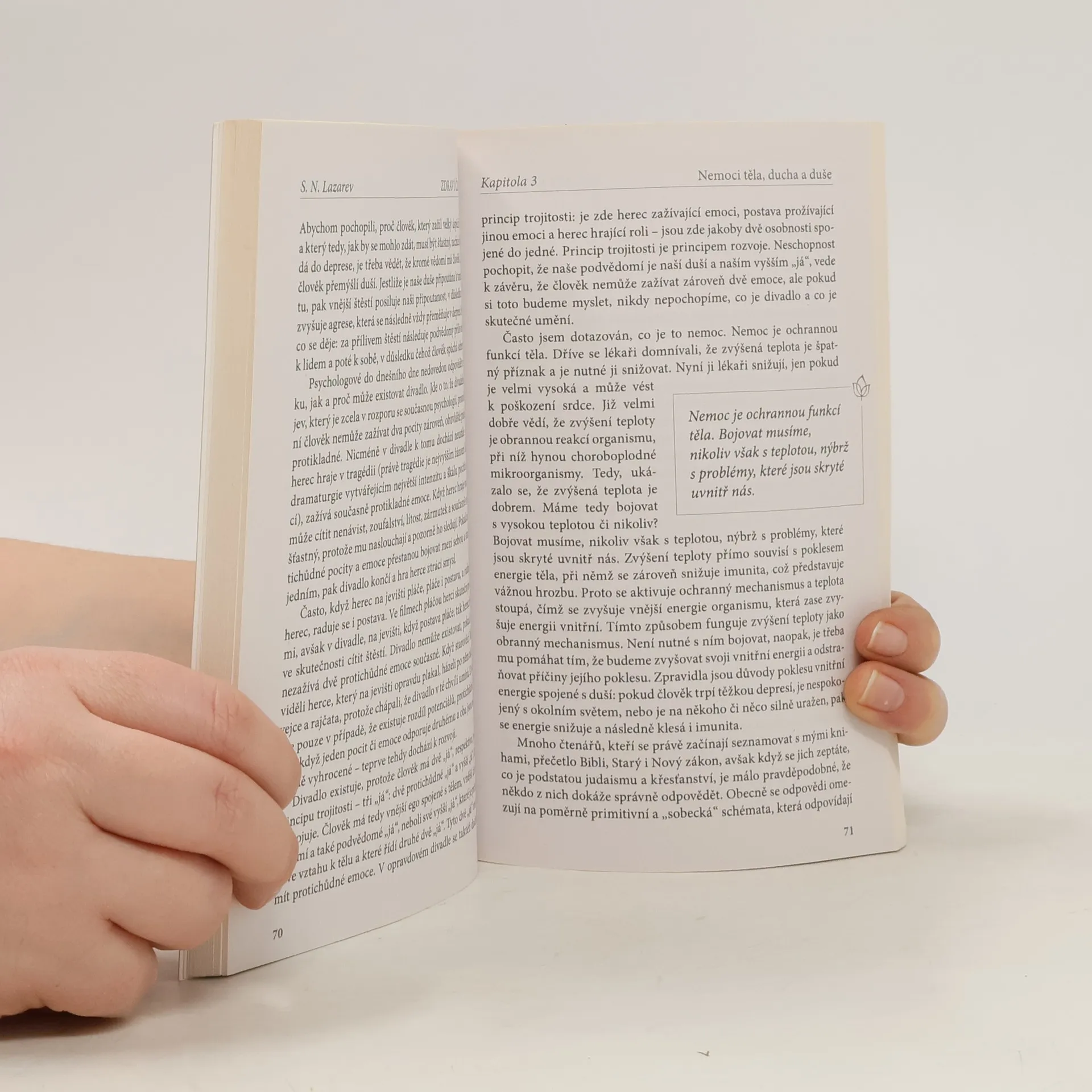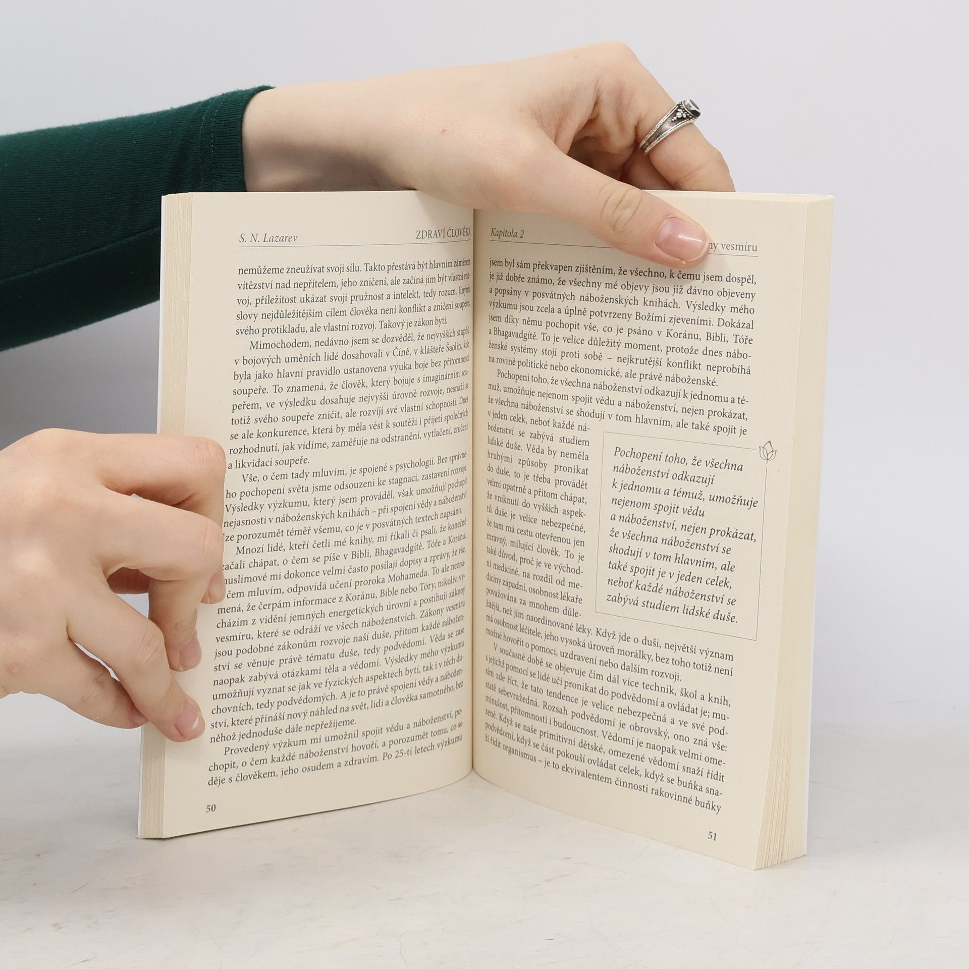 Hlavním cílem mnoha lidí, kteří čtou knihy S.N. Lazareva a přicházejí na jeho semináře, je vyřešit některé ze svých problémů. Mnohdy jsou to totiž právě vážné nemoci a problémy, které je přivádějí ke snaze o pochopení toho, co je to život, k otázkám, v čem spočívá jeho smysl, zda existuje souvislost mezi minulostí a budoucností, zda platí takový pojem jako karma, jaké dopady mají lidské neřesti či jak své neřesti odčinit. Ne všichni lidé se ale dokáži zorientovat v tak obrovském množství informací, které k nám přicházejí ze všech stran. Současné zdravotnictví v podstatě funguje tak, že nemoc buď přemění na jinou, nebo její akutní formu převede do chronické. V důsledku toho člověk sice nezažívá silné utrpení, ale nemoc nikam nezmizí. Sergej Nikolajevič Lazarev objevil, že vyléčit se je možné skrze pochopení. Když člověk porozumí zákonům bytí a uvědomí si, co je skutečně dobré a co špatné, pak nemoc zmizí sama od sebe. Pochopení léči lépe než léky. Vesmírné zákony a principy, jejichž znalost opravdové pochopení, jsou popsány v této knize.