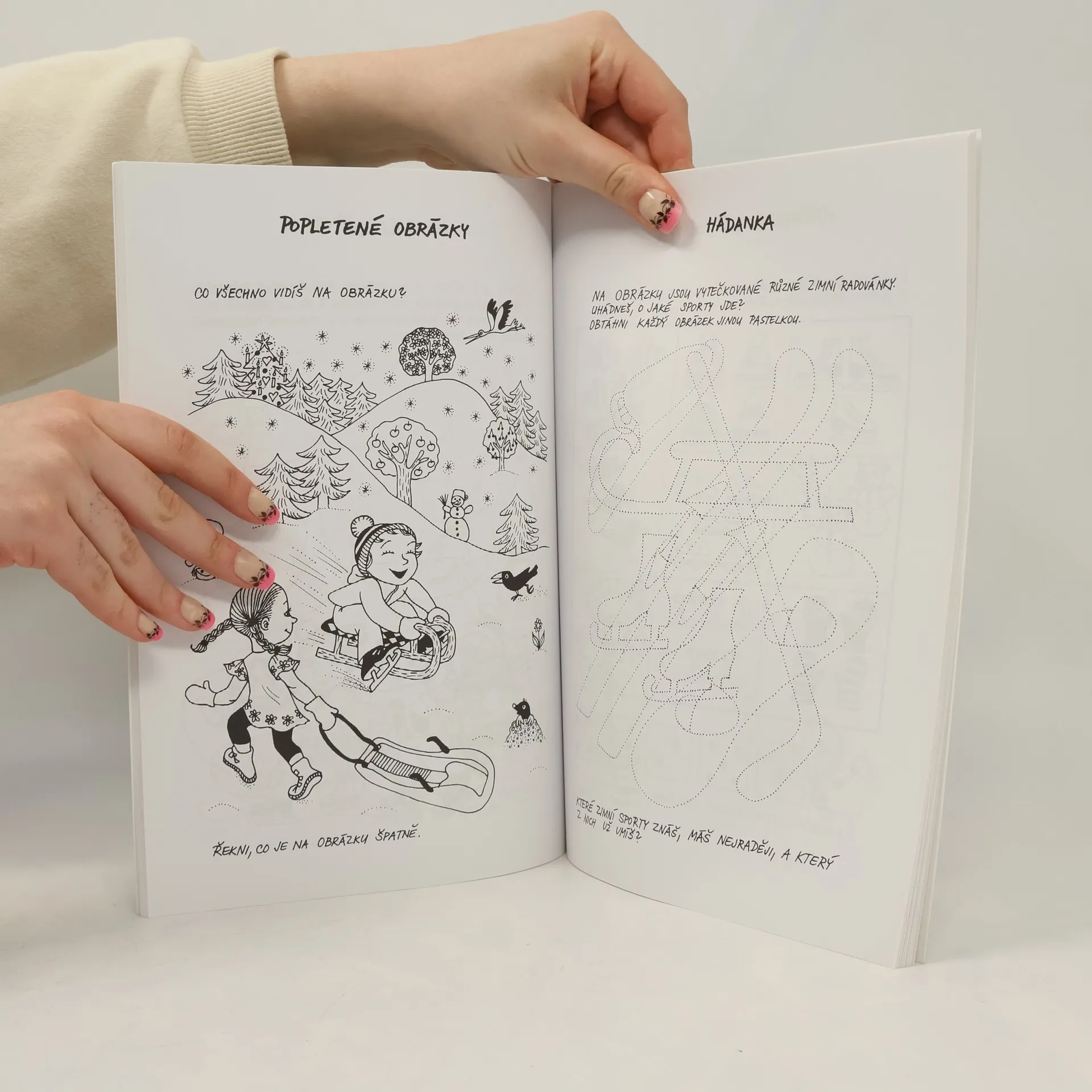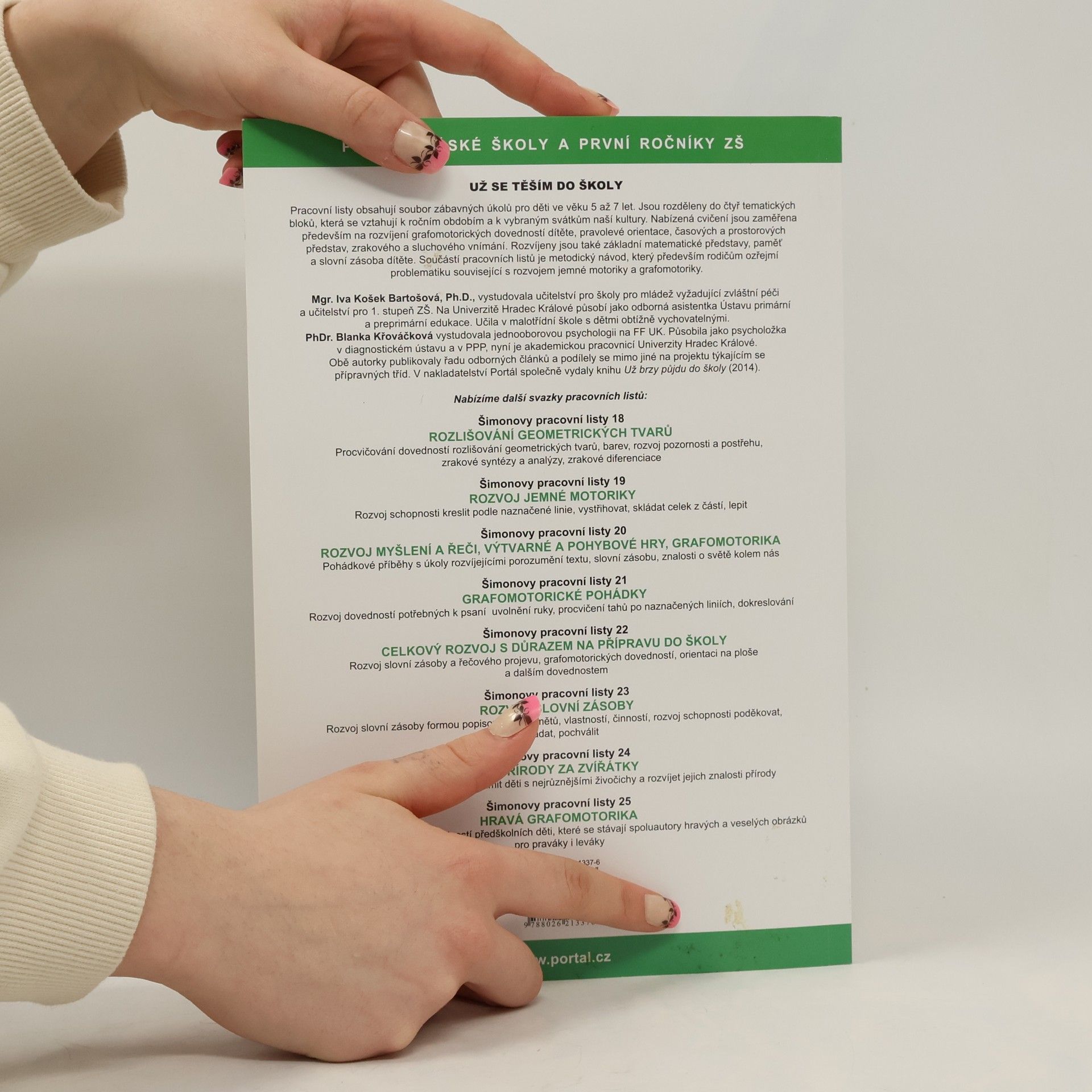 Pracovní listy obsahují soubor zábavných úkolů pro děti ve věku 5–7 let. Jsou rozděleny do čtyř tematických bloků. Témata se vztahují k ročním obdobím a k vybraným svátkům naší kultury. Nabízená cvičení jsou zaměřena především na rozvíjení grafomotorických dovedností dítěte, pravolevé orientace, časových a prostorových představ, zrakového, sluchového vnímání. Rozvíjeny jsou také základní matematické představy, paměť a slovní zásoba dítěte. Součástí pracovních listů je metodický návod, který, především rodičům, ozřejmí problematiku související s rozvojem jemné motoriky a grafomotoriky.
