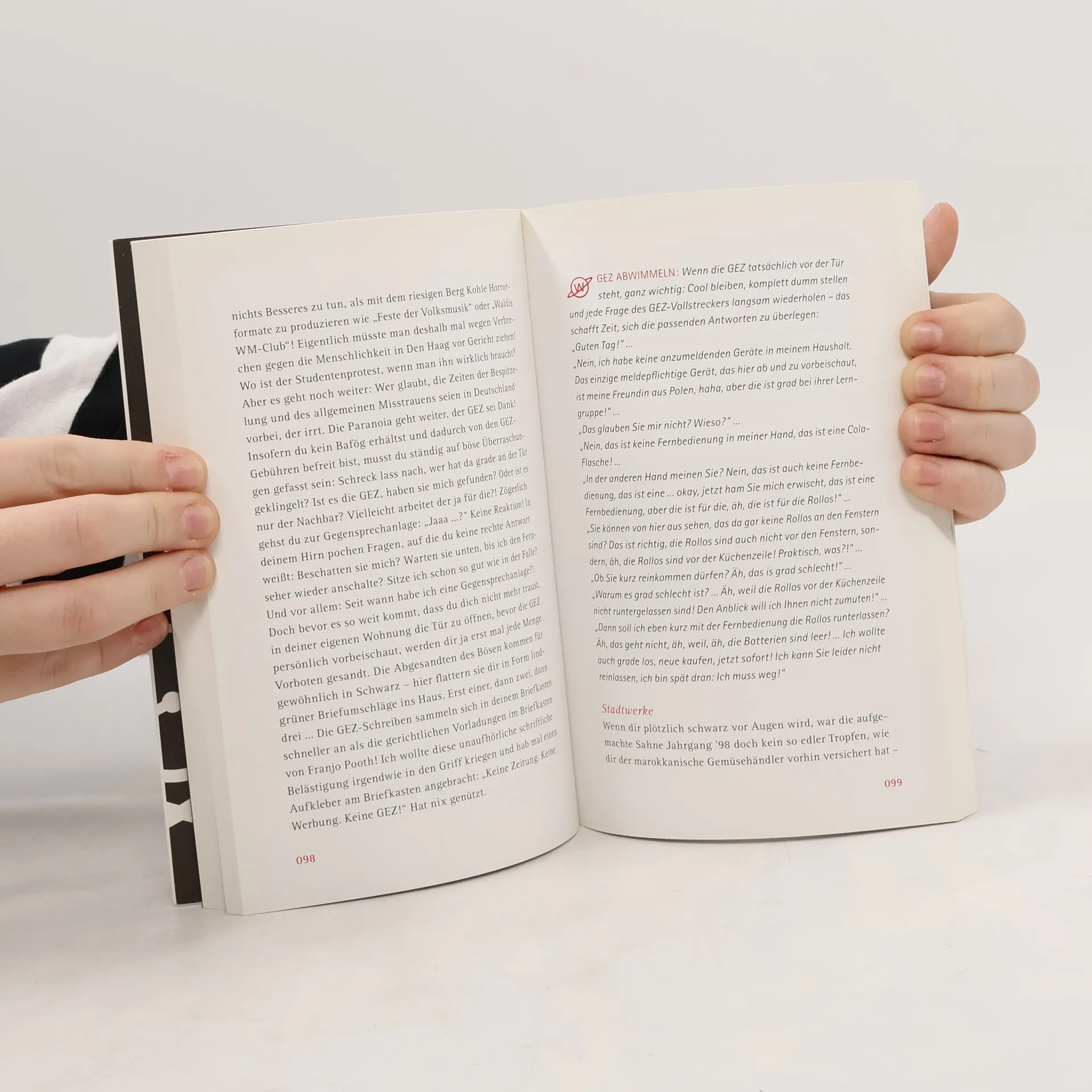 Damit man dennoch gut durchs Studium kommt, enthält dieses Handbuch alle überlebensnotwendigen Tipps und Tricks: Studieren, aber was? Hier merkt man ganz schnell, dass auch Eltern ein Mitspracherecht haben. Studieren, aber wo? Blöde Frage! Natürlich in der Kneipe neben der Uni!! Überlebenskünstler Student: Mit 85 Euro leben wie Gott in Frankfurt. Wie sag ich’s meinem Prof? Die 10 besten Ausreden für Prüfungen und Hausarbeiten. Drunk communicator: Lässig kommunizieren mit über 1,5 Promille auf lauten Partys.