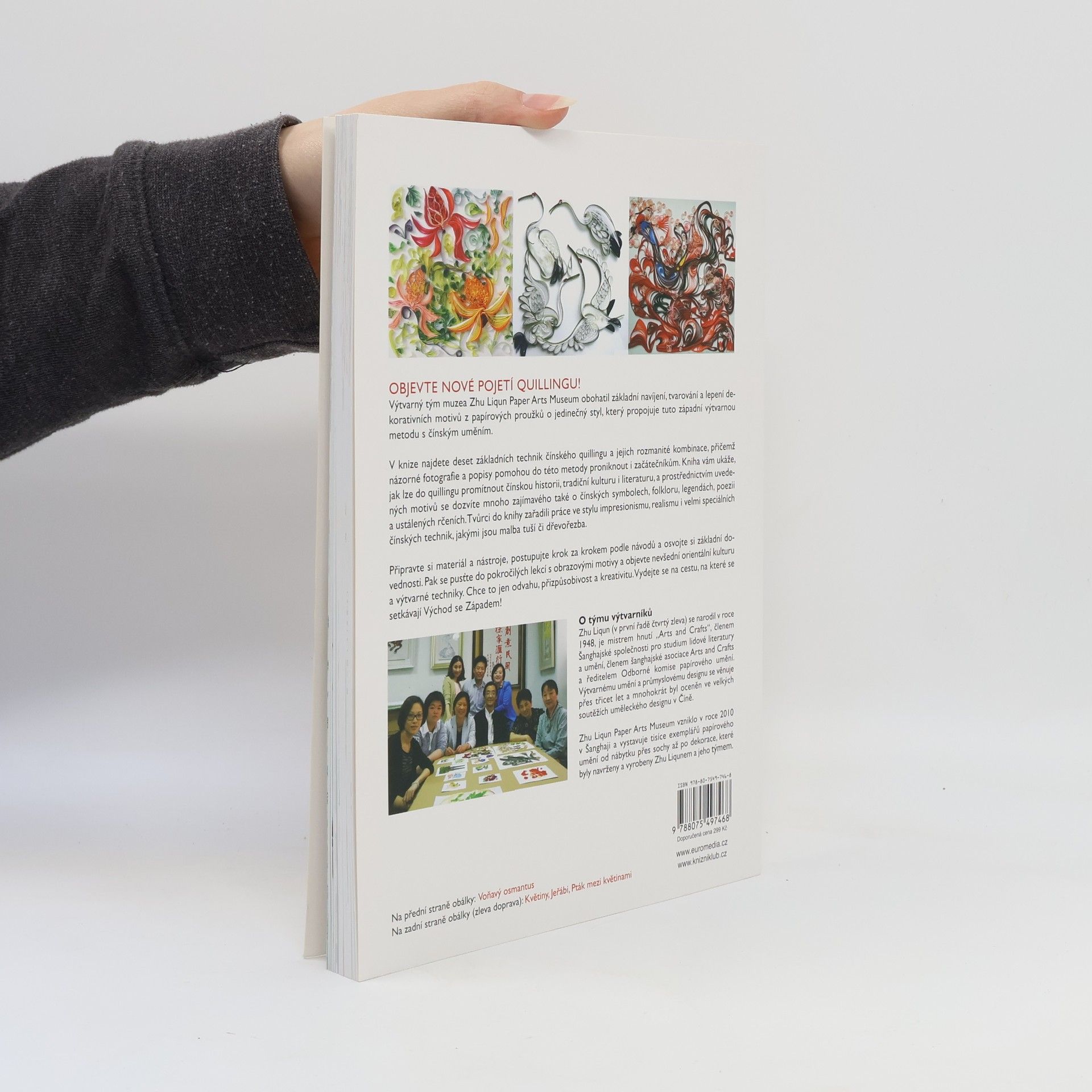Tvořte z papíru jedinečná díla, v nichž se pojí západní techniky s čínským uměním. Quilling je výtvarná technika využívající proužků papíru, které jsou stáčeny a formovány do požadovaného tvaru. V této knize najdete kromě základního navíjení, tvarování a lepení i nový jedinečný styl, který propojuje západní tvorbu a tradiční čínské umění. Připravte si materiál a nástroje, postupujte krok za krokem podle návodů a osvojte si základní dovednosti. Chce to jen odvahu, přizpůsobivost a kreativitu. Vydejte se na cestu, kde se setkávají východ se západem!