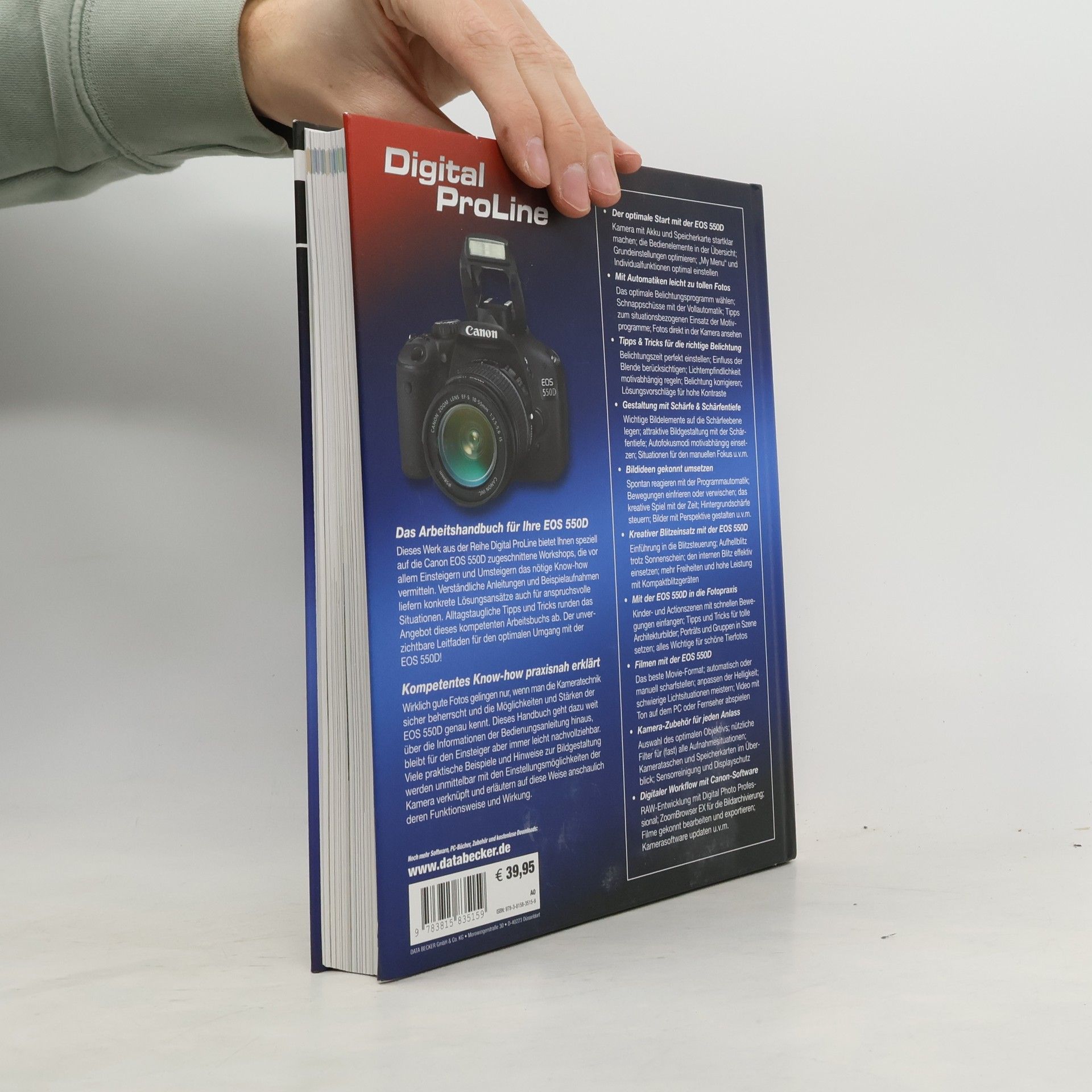Dieses umfassende, anschauliche Werk aus der Reihe Digital ProLine bietet Ihnen speziell auf die Canon EOS 550D zugeschnittene Workshops, die vor allem Einsteigern und Umsteigern von Kompaktkameras das nötige Know-how vermitteln. Verständliche Anleitungen und Beispielaufnahmen liefern Ihnen konkrete Lösungsansätze auch für anspruchsvolle Situationen. Alltagstaugliche Tipps und Tricks für bessere Aufnahmen runden das Themenspektrum dieses Handbuchs ab. Der unverzichtbare Leitfaden für den optimalen Umgang mit Ihrer neuen DSLR-Kamera!