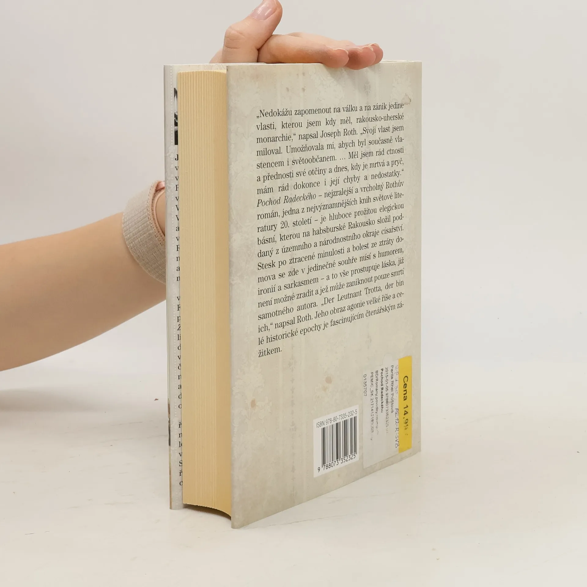 „Nedokážu zapomenout na válku a na zánik jediné vlasti, kterou jsem kdy měl, rakousko-uherské monarchie,“ napsal Joseph Roth. „Svoji vlast jsem miloval. Umožňovala mi, abych byl současně vlastencem i světoobčanem. … Měl jsem rád ctnosti a přednosti své otčiny a dnes, kdy je mrtvá a pryč, mám rád dokonce i její chyby a nedostatky.“ Pochod Radeckého – nejzralejší a vrcholný Rothův román, jedna z nejvýznamnějších knih světové literatury 20. století – je hluboce prožitou elegickou básní, kterou na habsburské Rakousko složil poddaný z územního a národnostního okraje císařství. Stesk po ztracené minulosti a bolest ze ztráty domova se zde v jedinečné souhře mísí s humorem, ironií a sarkasmem – a to vše prostupuje láska, již není možné zradit a jež může zaniknout pouze smrtí samotného autora. „Der Leutnant Trotta, der bin ich,“ napsal Roth. Jeho obraz agonie velké říše a celé historické epochy je fascinujícím čtenářským zážitkem. Vydání v tomto překladu čtvrté, v LEDA první