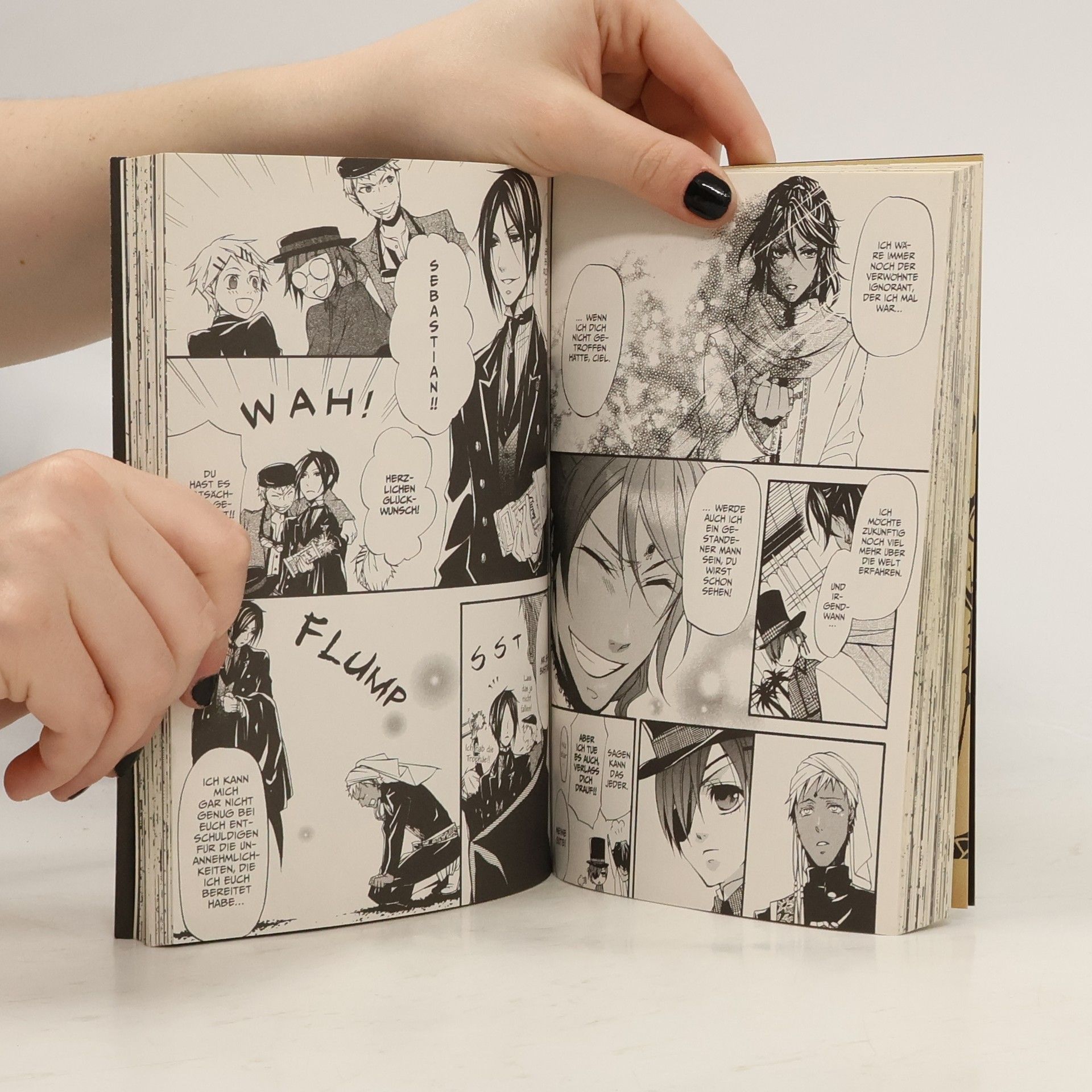 BLACK BUTLER verspricht atemberaubende Spannung im London des 19. Jahrhunderts.  Um das begehrte Royal Warrant für seinen Herrn zu gewinnen, muss Sebastian in einem Curry-Wettbewerb gegen einen indischen Butler antreten, der die »rechte Hand Gottes« besitzt. Und während er inmitten eines Berges von Gewürzen die richtige Mischung zu finden versucht, beben seine Nasenflügel... und wie sie beben!  Einzigartiger Mix aus Krimi, Action und Mystery, bei dem der Afternoon Tea nicht fehlen darf.  Weitere Informationen:  - empfohlen ab 14 Jahren - Artbook und Character Guide zum Manga - Anime auf Netflix - Anime-DVD/Blu-ray von KAZÉ Anime - Kinofilm - Live-Action-Film- Die Serie gilt als noch nicht abgeschlossen.