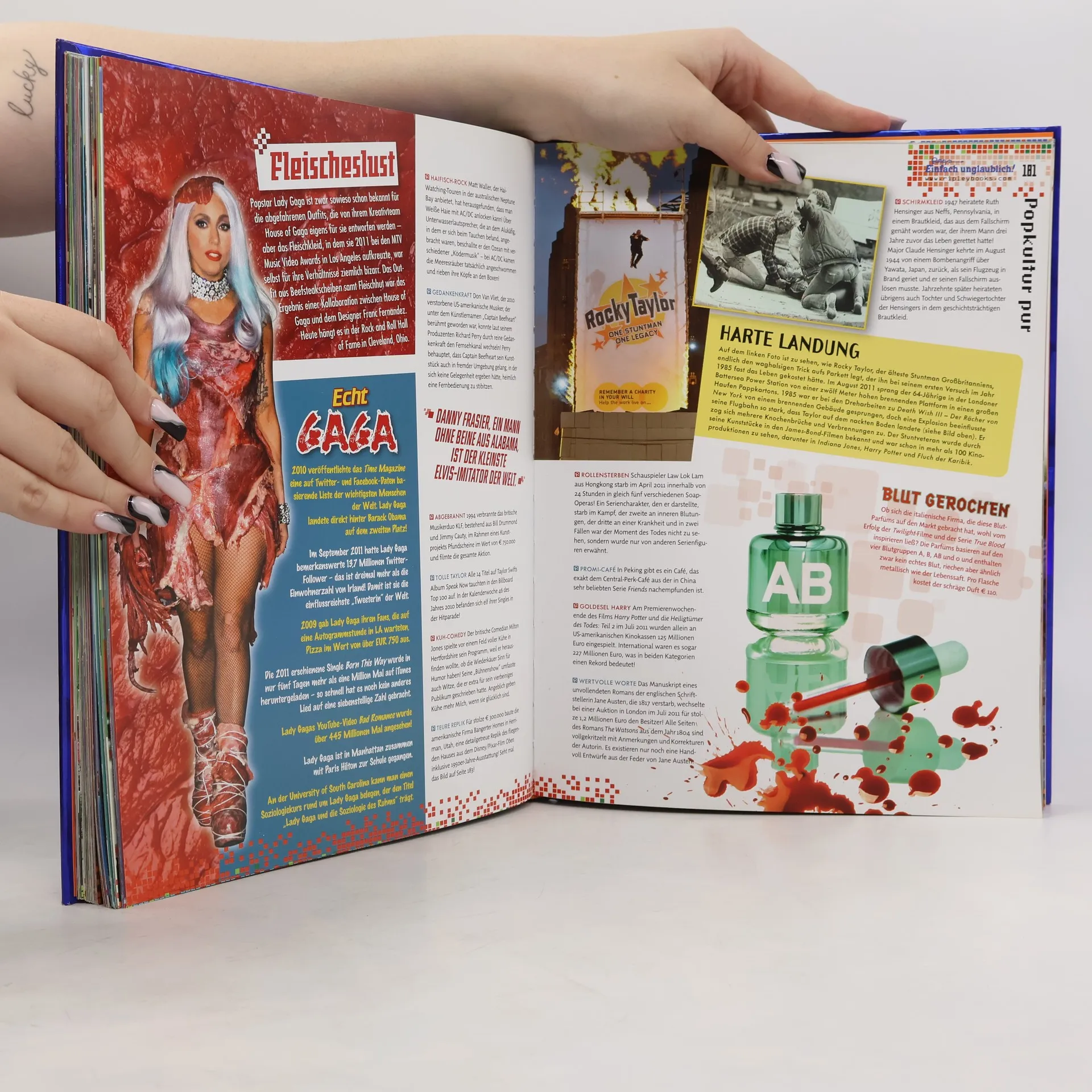 Seit 95 Jahren begeistert und unterhält die Marke Ripleys Menschen auf der ganzen Welt. Die jährlich neu erscheinenden Bände der Ripleys - Einfach unglaublich! - Reihe sind in über 20 Ländern erhältlich, und weltweit wurden bisher mehr als 1 Mio. Exemplare der Erfolgsserie verkauft! Mit dem neunten Band wird die großartige Serie auch in diesem Jahr fortgesetzt! Zahlreiche Themenseiten voller Hintergrundwissen, großartigen Bildern und verblüffenden Fakten. Faszinierende Geschichten von Menschen aus aller Welt. Ungewöhnliche Events, Artefakte und Erlebnisse - Einfach unglaublich!