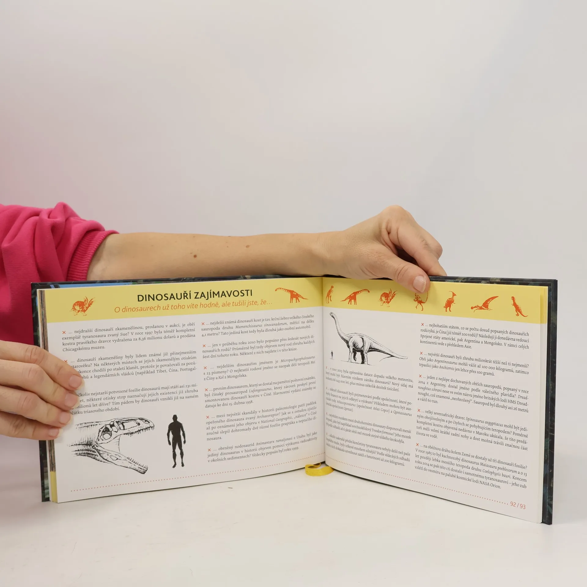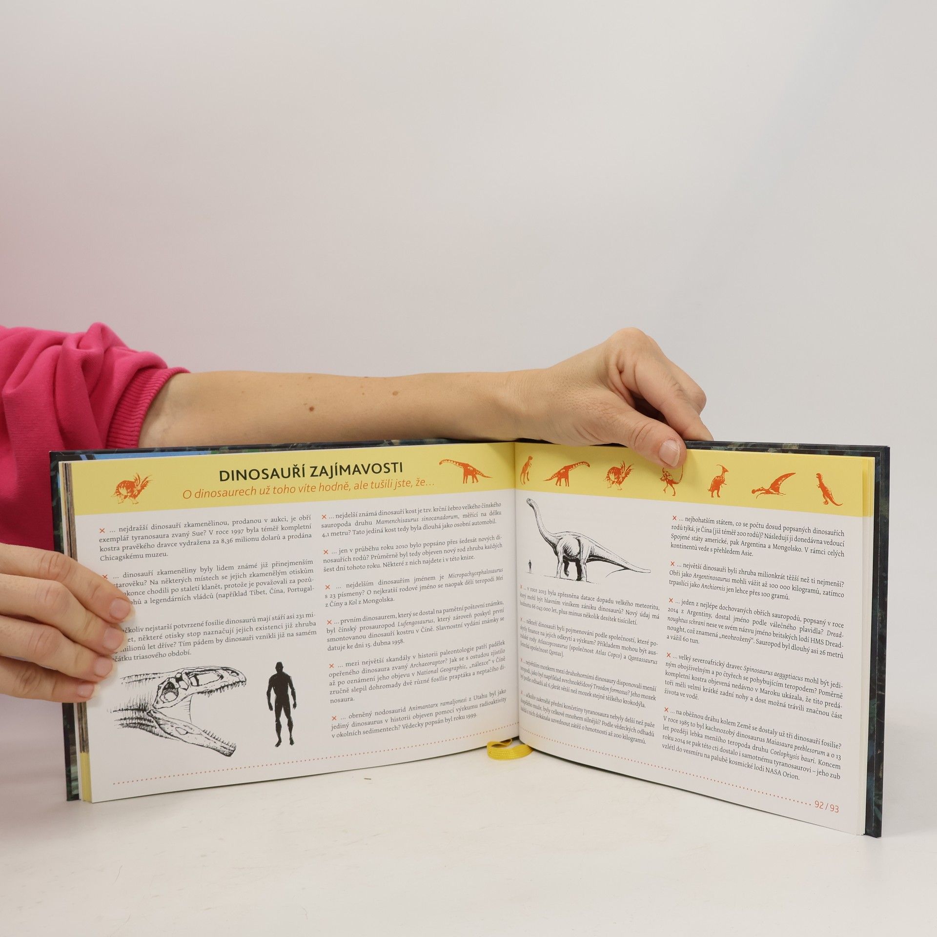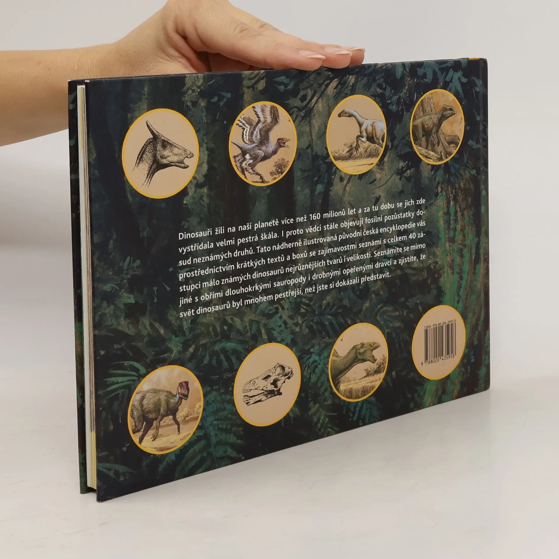 Prehistorické období naší planety trvalo miliony let a během té doby se na ní vystřídala ta nejpestřejší škála živočichů i rostlin. I proto čas od času vědci objeví fosilní pozůstatky dosud neznámých druhů. Tato nádherně ilustrovaná původní česká encyklopedie vás prostřednictvím krátkých textů a boxů se zajímavostmi seznámí s celkem 40 zástupci dinosaurů nejrůznějších tvarů, velikostí i barev – obřích sauropodů, drobných opeřenců, dravců i býložravců.