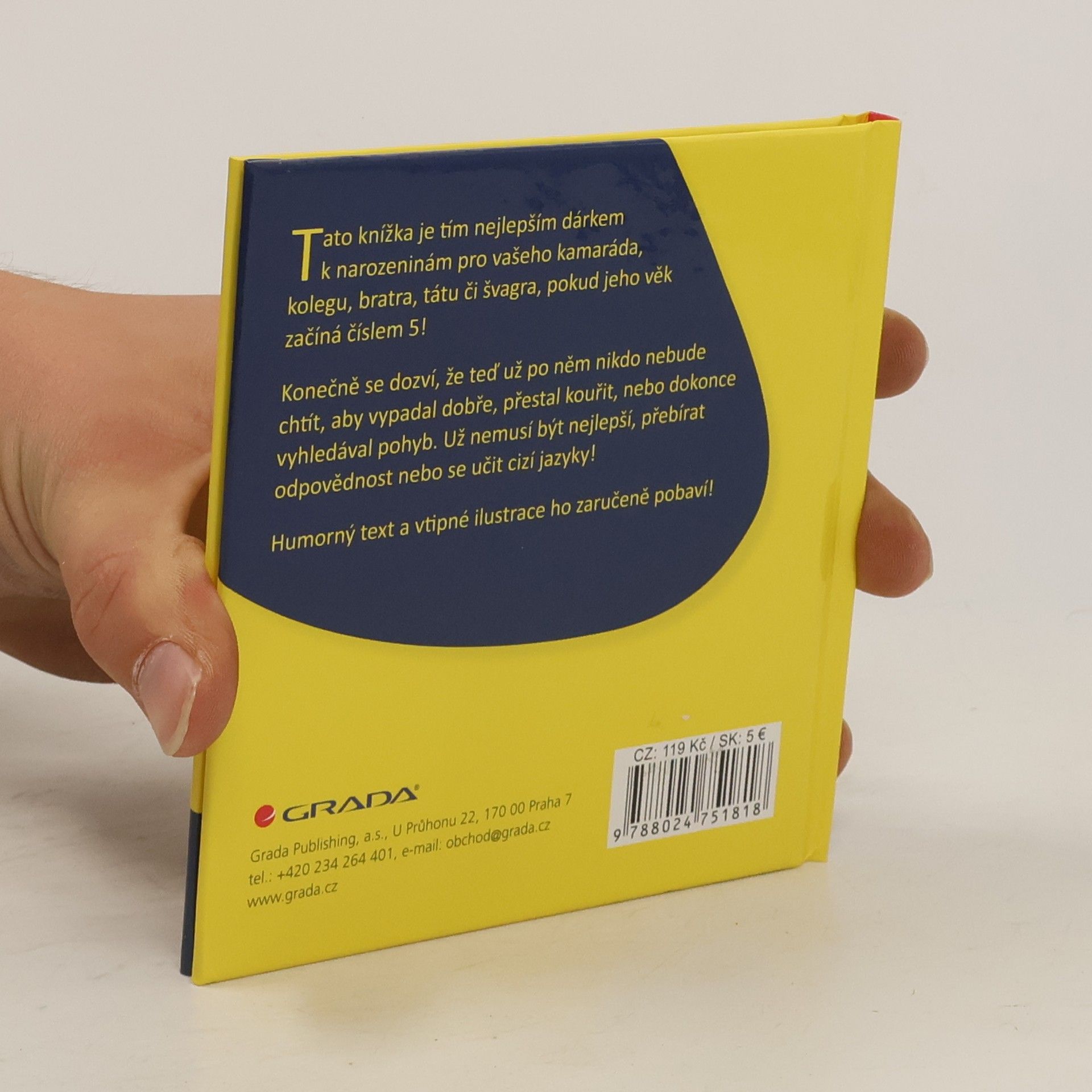 Tato knížka je tím nejlepším dárkem k narozeninám pro vašeho kamaráda, kolegu, bratra, tátu či švagra, pokud jeho věk začíná číslem 5! Konečně se dozví, že teď už po něm nikdo nebude chtít, aby vypadal dobře, přestal kouřit, nebo dokonce vyhledával pohyb. Už nemusí být nejlepší, přebírat odpovědnost nebo se učit cizí jazyky! Humorný text a vtipné ilustrace ho zaručeně pobaví a potěší!