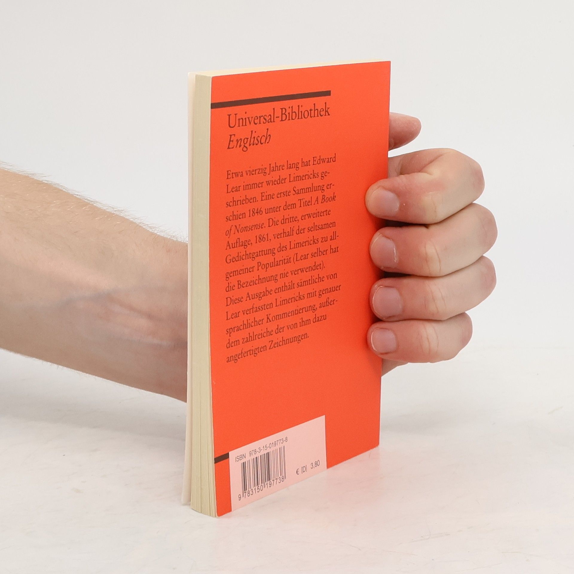 Etwa vierzig Jahre lang hat Edward Lear immer wieder Limericks geschrieben. Eine erste Sammlung erschien 1846 unter dem Titel »A Book of Nonsense«. Sie enthielt 73 Limericks. 1855 kam eine zweite, inhaltlich unveränderte Auflage. Erst die dritte, erweiterte Auflage, 1861, wurde ein Erfolg und verhalf der seltsamen Gedichtgattung des ›Limericks‹ zu allgemeiner Popularität. Lear selber hat die Bezeichnung nie verwendet, über ihre Herkunft ist viel spekuliert worden. Diese Ausgabe enthält sämtliche von Lear verfassten Limericks mit genauer sprachlicher Kommentierung, außerdem zahlreiche der von ihm selber angefertigten Zeichnungen. Ungekürzte und unbearbeitete Originaltexte mit Übersetzungen schwieriger Wörter am Fuß jeder Seite, Nachwort und Literaturhinweisen.