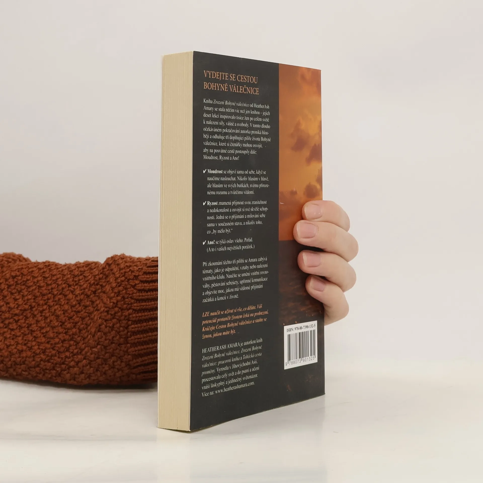 Chtějte se stát ženou, kterou byste měla být . Kniha Cesta bohyně válečnice se za velmi krátkou dobu stala mnohem víc, než jen knihou. Jejich deset lekcí inspirovalo tisíce žen po celém světě k odvaze získat zpět svou sílu, vášeň a svobodu. V tomto napjatě očekávaném pokračování Cesta bohyně válečnice jde autorka hlouběji a odhaluje další tři pilíře Bohyně válečnice, které ženám pomohou putovat dále po této posvátné cestě: moudrost, autenticita a oslava. • Moudrost vzniká přirozeně, když se učíme naslouchat. Nejde o hlasy v naší hlavě, ale hlasy v našich buňkách, našeho přirozeného rozumu a našeho kreativního já. • Autenticita objímá naši zranitelnost, hloupost a vlastní všechny naše superschopnosti. Přijímá vše, jak to je, a ne jak by to mělo být. • Oslava je důležitá po celou dobu. Slavit je třeba i ty největší porážky. Při zkoumání těchto tří pilířů se Amara ponoří do témat, jako je odpuštění, vztahy a nalezení vnitřního klidu. Naučíte se získat a udržet emocionální rovnováhu, pěstovat sebeúctu a cvičit upřímnou komunikaci. Tato kniha je – stejně jako předešlá – plná cvičení a pozorování, které vám pomohou integrovat cestu bohyně válečnice do vašeho každodenního života. Chtějte se stát ženou, kterou byste měla být.