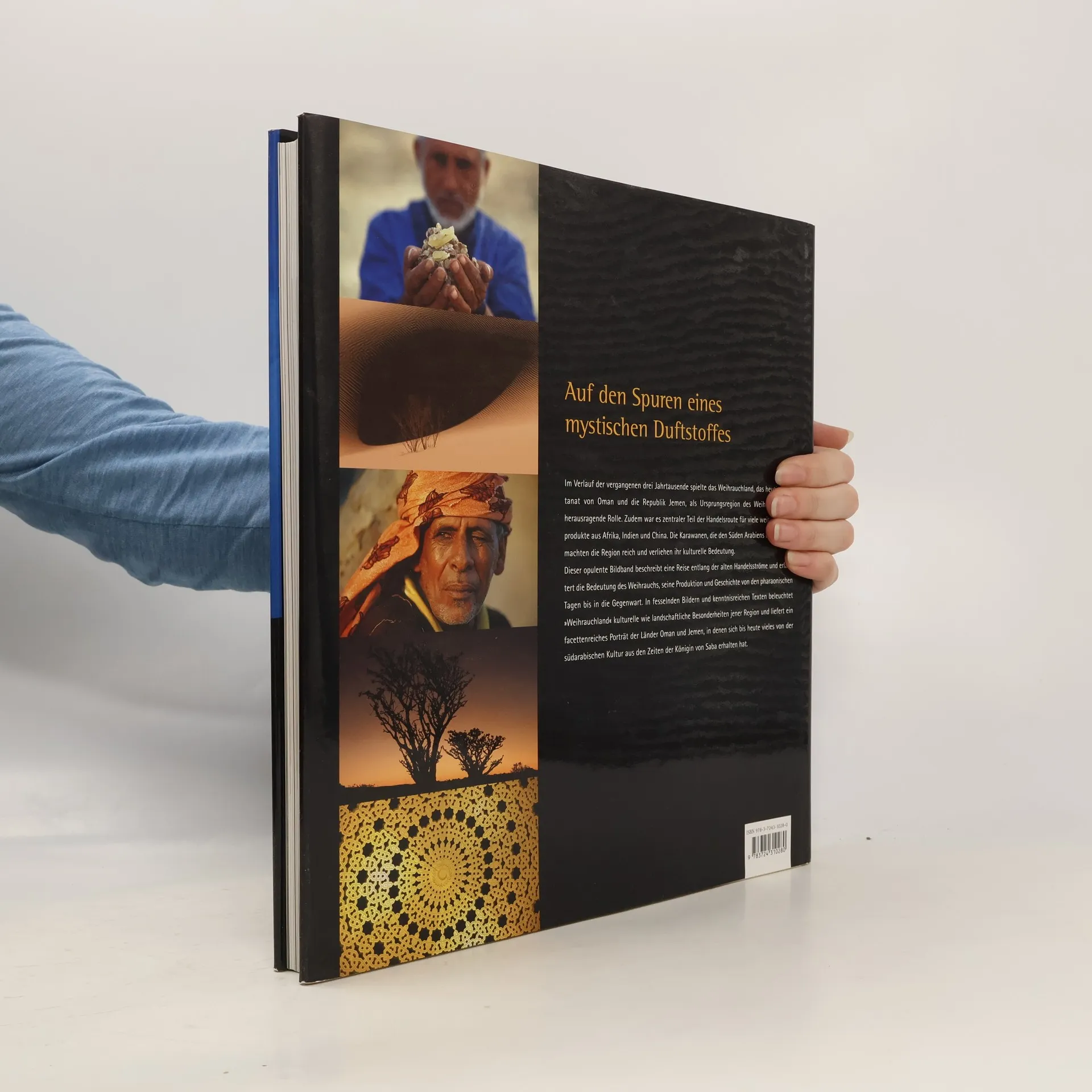 Auf den Spuren eines mystischen Duftstoffes, der sagenhaften Reichtum und kulturelle Blüte bescherte: Im Verlauf der vergangenen drei Jahrtausende spielte das Weihrauchland, das heutige Sultanat von Oman und die Republik Jemen, als Ursprungsregion des Weihrauchs eine einmalige Rolle. Zudem war es zentraler Teil der Handelsroute vieler weiterer Luxusprodukte aus Afrika, Indien und China. Dieser opulente Bildband beschreibt eine Reise entlang der alten Handelsströme und erläutert die Bedeutung des Weihrauchs, seine Produktion und seine historische Erscheinung bis in die Gegenwart. In fesselnden Bildern und kenntnisreichen Texten beleuchtet er die Besonderheiten jener Region, in der sich bis heute viel von der südarabischen Kultur aus den Zeiten der Königin von Saba erhalten hat.