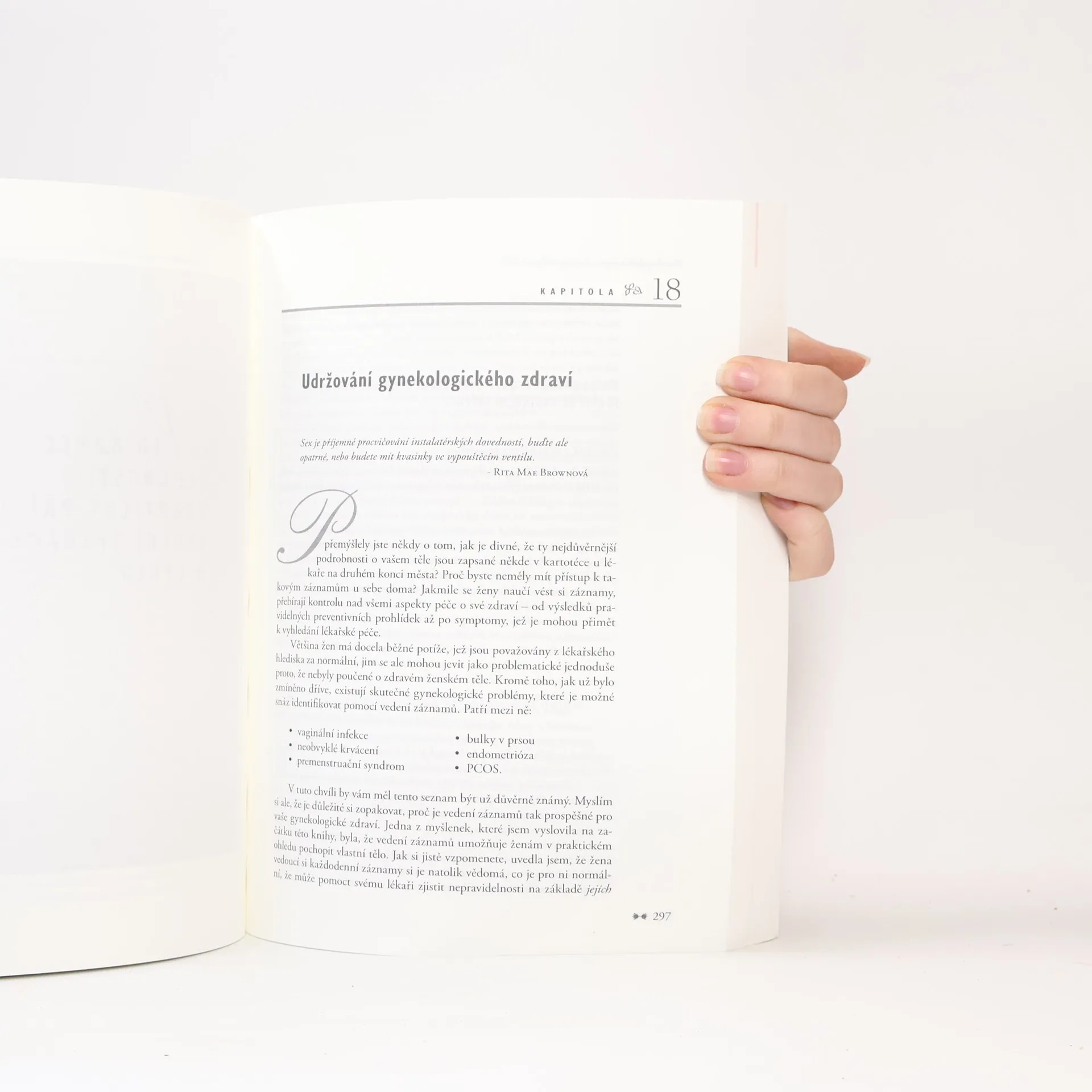Aktualizované vydání průlomového bestselleru nabízí veškeré potřebné informace pro monitorování menstruačního cyklu a nejnovější reprodukční technologie. Tato kniha je nezbytným zdrojem pro ženy, které nejsou spokojené se svou antikoncepcí, snaží se o početí nebo zažívají matoucí příznaky během cyklu. Pomohla již statisícům žen přirozeně předcházet těhotenství, maximalizovat šance na otěhotnění a získat kontrolu nad gynekologickým a sexuálním zdravím. Toni Weschlerová podrobně vysvětluje Metodu sledování plodnosti (MSP), která umožňuje efektivní a vědecky prokázanou metodu přirozené antikoncepce bez chemie. Tato metoda také pomáhá identifikovat překážky v otěhotnění a urychlit léčbu problémů s plodností. Aktualizované vydání obsahuje plně revidovaný a intuitivní systém vedení záznamů, individualizované vzorové tabulky pro různé životní fáze, rozšířenou barevnou přílohu shrnující klíčové koncepty a šest nových kapitol o přirozeném vyrovnávání hormonů, ochraně plodnosti a důležitých zdravotních problémech, které by měly znát všechny ženy.