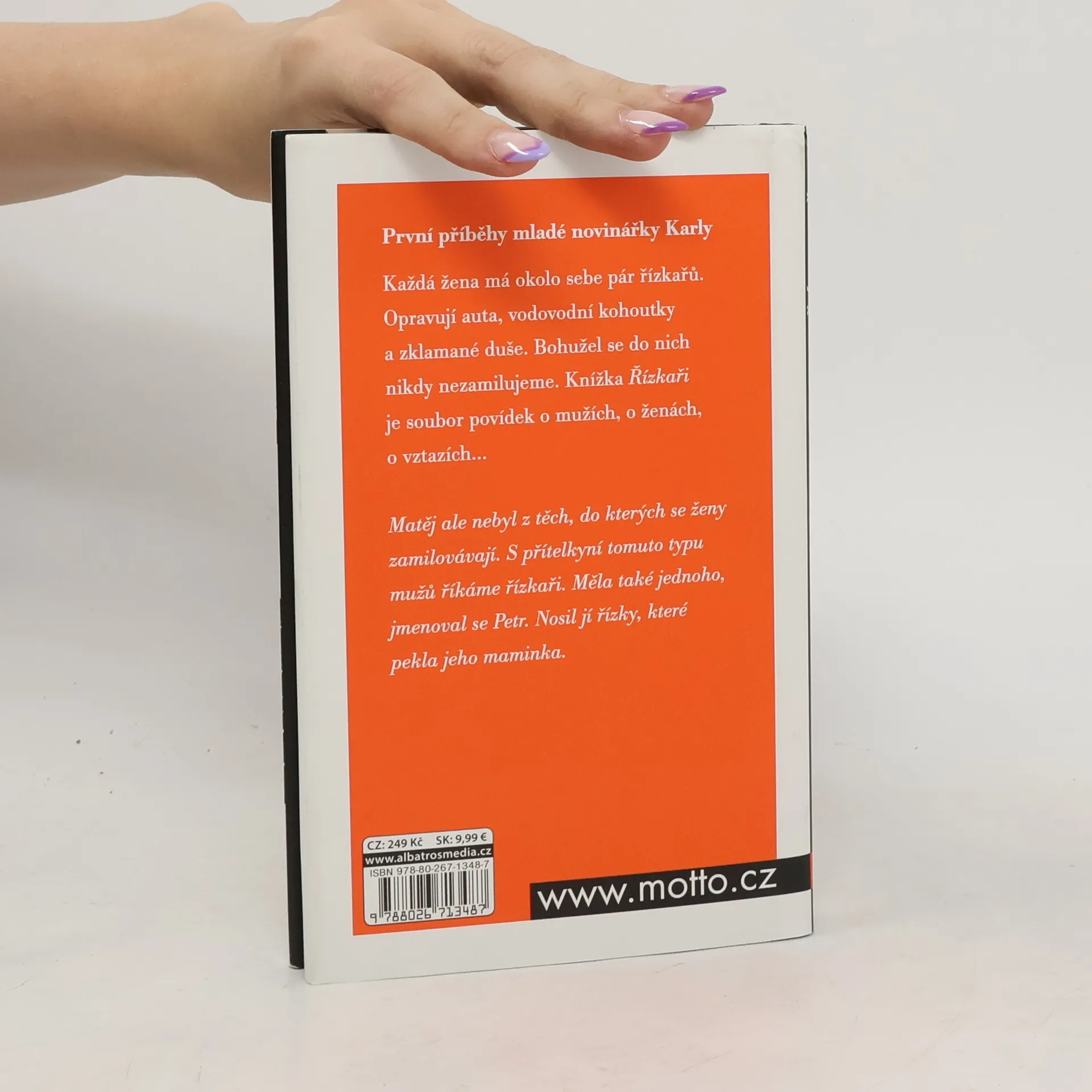 První příběhy mladé novinářky Karly Každá žena má okolo sebe pár řízkařů. Opravují auta, vodovodní kohoutky a zklamané duše. Bohužel se do nich nikdy nezamilujeme. Knížka Řízkaři je soubor povídek o mužích, o ženách, o vztazích…