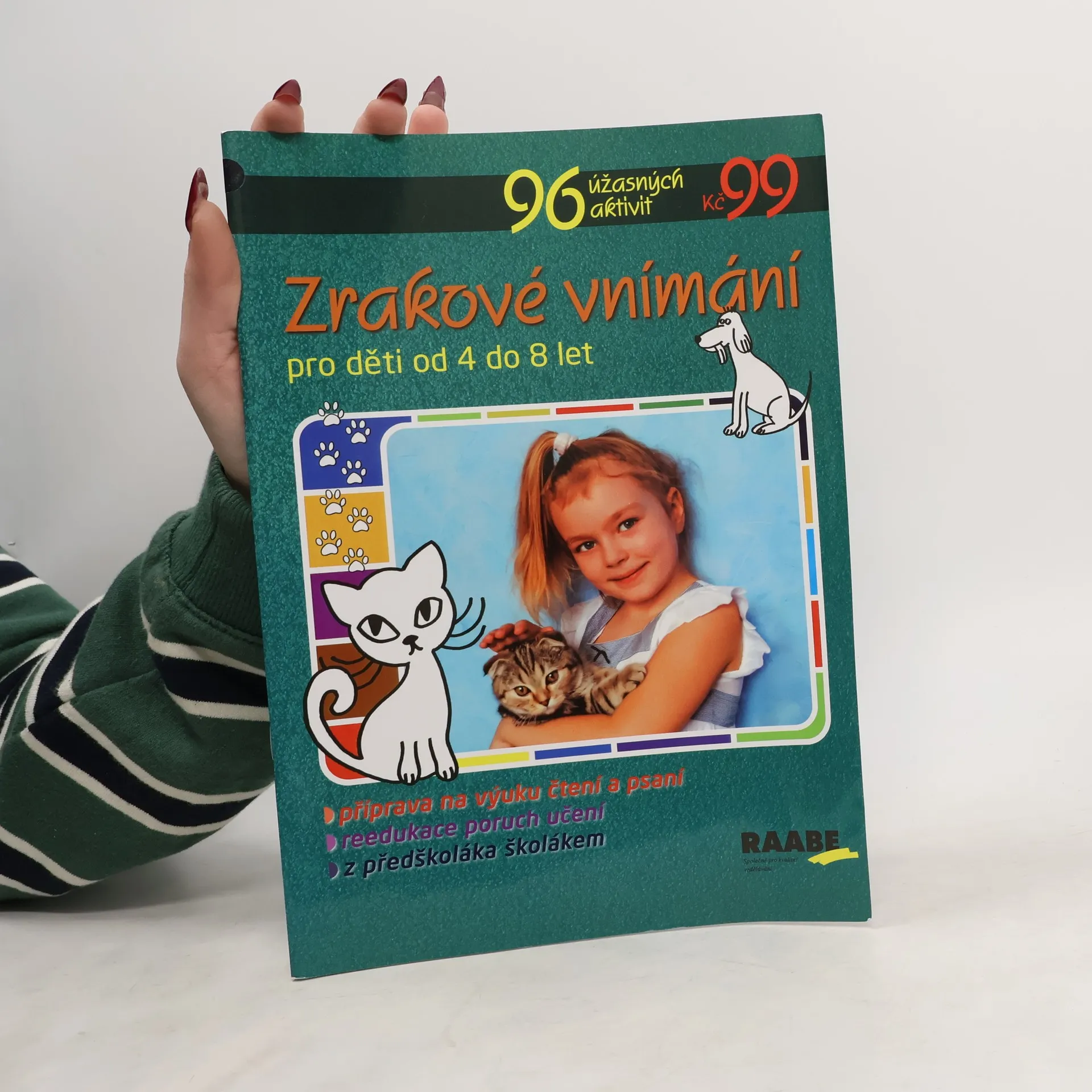 Aktivity v knize ZRAKOVÉ VNÍMÁNÍ rozvíjejí u dítěte v předškolním věku zrakové vnímání, které je jedním z předpokladů úspěšného zvládnutí čtení a psaní písmen, slabik, slov i čísel. 96 aktivit nabídne Vašemu dítěti přípravu na výuku čtení. Aktivity rozvoje zrakového vnímání jsou též vhodné pro děti s poruchami učení jako součást reedukačních cvičení. Kniha je určena dětem od 4 do 8 let. Anotace v bodech: příprava na výuku čtení a psaní reedukace poruch učeníz předškoláka školákem
