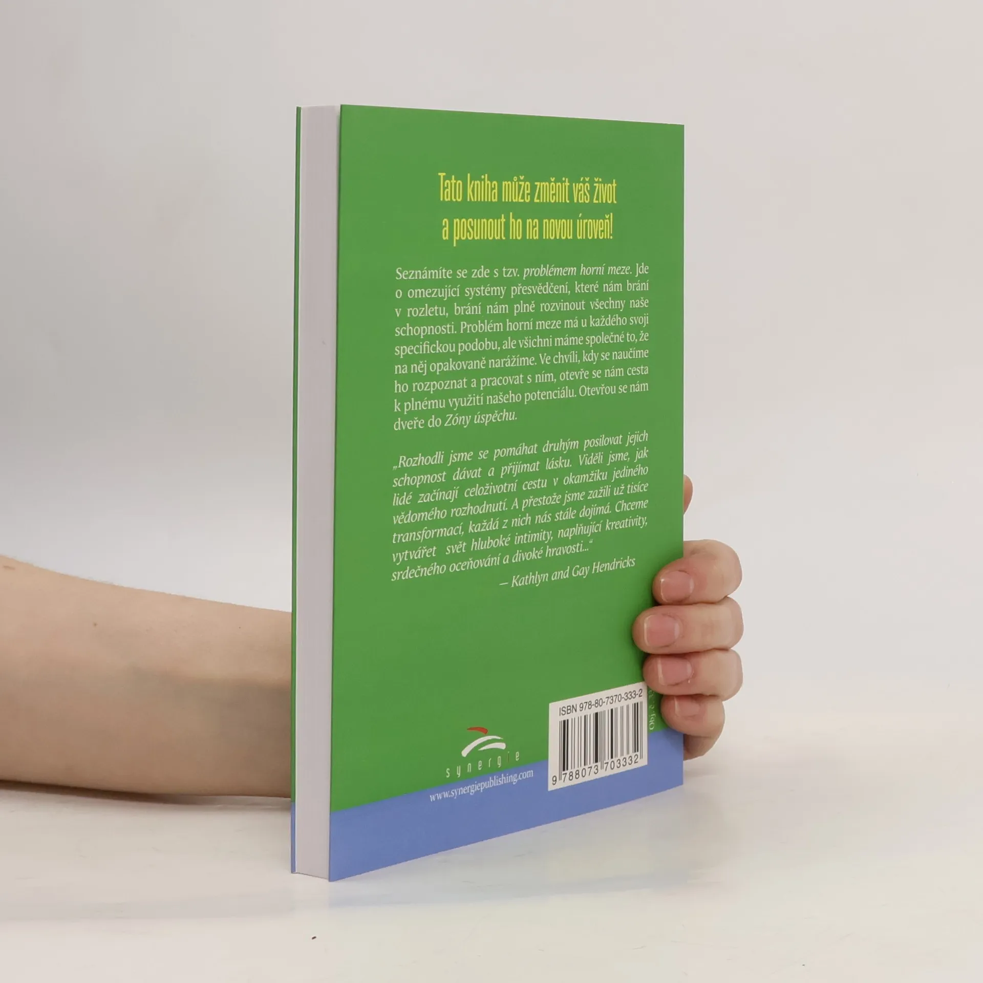 Tato kniha je první ze série, která může zásadně změnit váš život. Seznámíte se s „problémem horní meze“ – skrytými přesvědčeními, jež nás omezují v osobním růstu. Každý ho zažívá jinak, ale společné je, že nás brzdí ve chvílích úspěchu. Jde o tendenci sabotovat sami sebe, když překročíme hranici toho, co si (často nevědomě) dovolujeme prožívat. Tato hranice bývá nastavena nízko, a dokud ji nepřekonáme, vracíme se ke starým vzorcům. Kniha ukazuje, jak problém rozpoznat, pracovat s ním a otevřít se větší hojnosti, lásce a kreativitě. Autorem je Gay Hendricks, který se tématu věnuje přes 30 let a spolu se svou ženou založil Hendricks Institute zaměřený na vědomý život a partnerství.