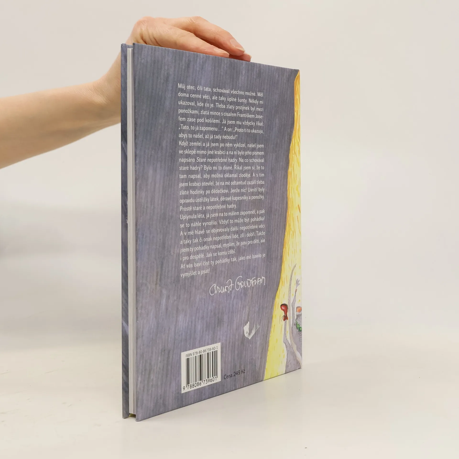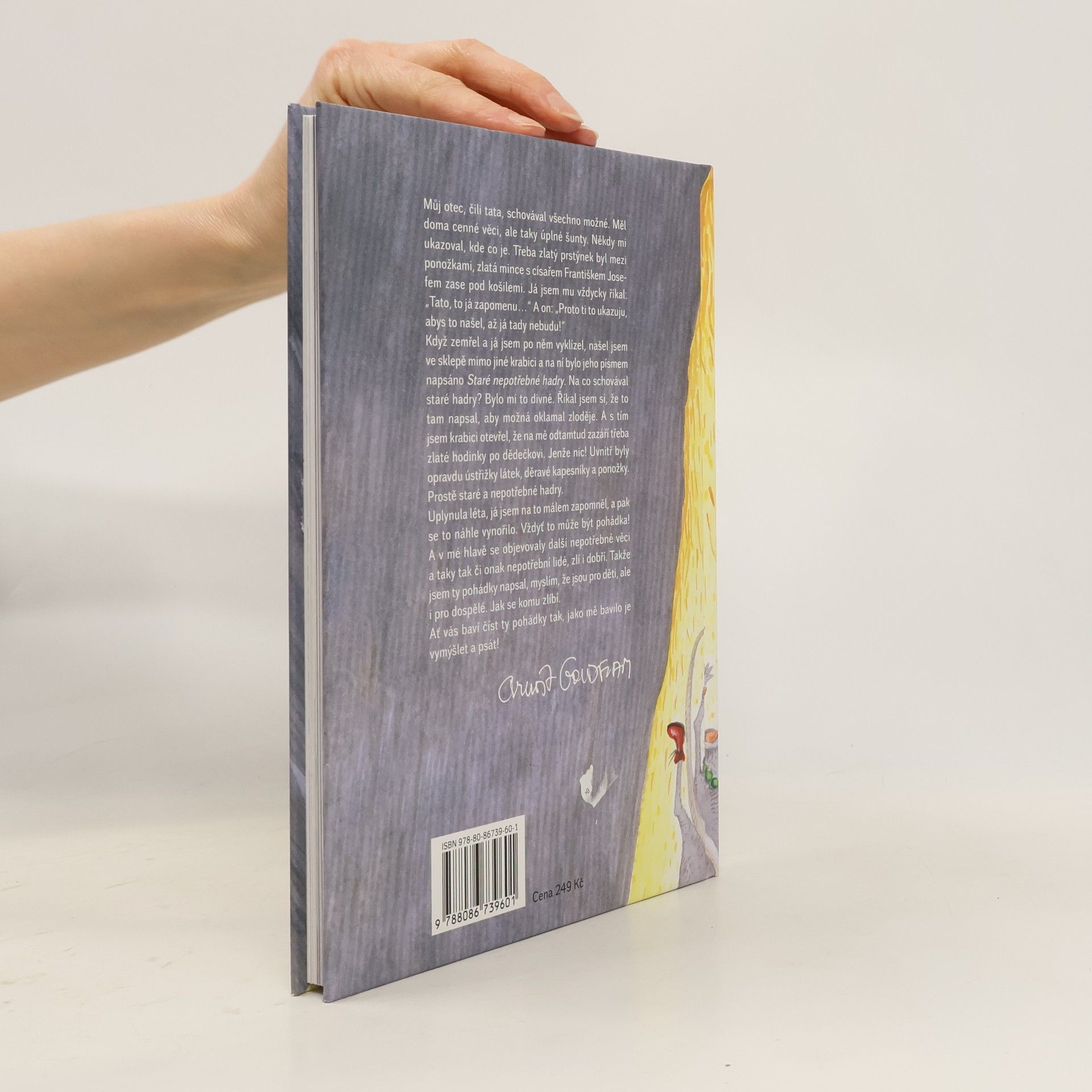 Oblíbený autor originálních pohádkových příběhů přichází se 14 novými pohádkami, plnými svérázné poetiky a neotřelých nápadů. „Můj otec schovával všechno možné. Měl doma cenné věci, ale taky úplné šunty. Někdy mi ukazoval, kde co je. Třeba zlatý prstýnek byl mezi ponožkami, zlatá mince s císařem Františkem Josefem zase pod košilemi. Našel jsem po něm ve sklepě mimo jiné krabici a na ní bylo jeho písmem napsáno Staré nepotřebné hadry. Říkal jsem si, že to tam napsal, aby možná oklamal zloděje. A s tím jsem krabici otevřel, že na mě odtamtud zazáří třeba zlaté hodinky po dědečkovi. Jenže nic! Uvnitř byly opravdu ústřižky látek, děravé kapesníky a ponožky. Uplynula léta, já jsem na to málem zapomněl, a pak se to náhle vynořilo. Vždyť to může být pohádka! A v mé hlavě se objevovaly další nepotřebné věci a taky tak či onak nepotřební lidé, zlí i dobří. Takže jsem ty pohádky napsal, myslím, že jsou pro děti, ale i pro dospělé. Jak se komu zlíbí. Ať vás baví číst ty pohádky tak, jako mě bavilo je vymýšlet a psát!“
