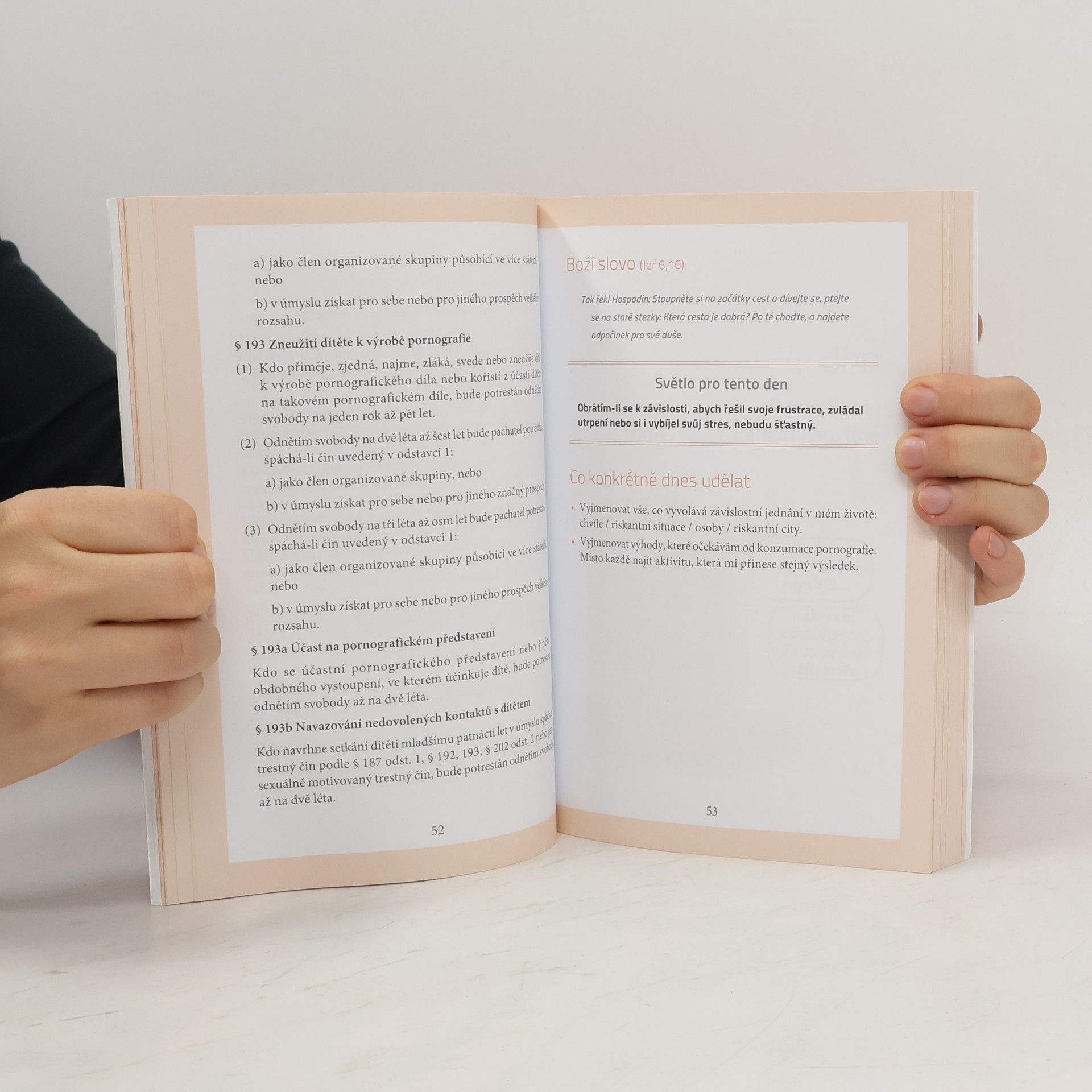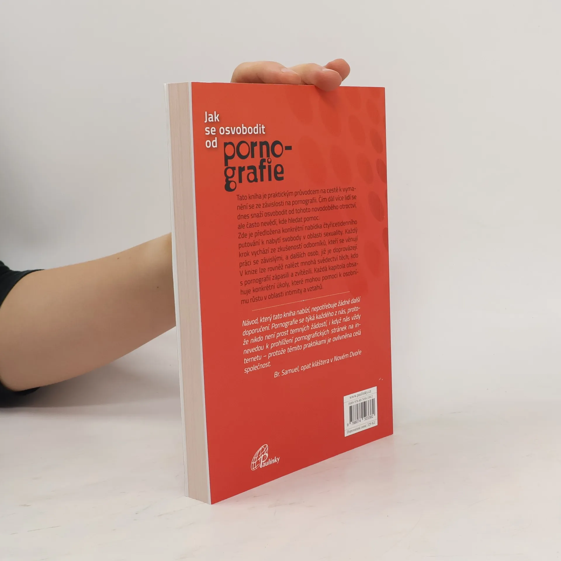 Tato kniha je praktickým průvodcem na cestě k vymanění se ze závislosti na pornografii. Čím dál více lidí se dnes snaží osvobodit od tohoto novodobého otroctví, ale často nevědí, kde hledat pomoc. Zde je předložena konkrétní nabídka čtyřicetidenního putování k nabytí svobody v oblasti sexuality. Každý krok vychází ze zkušeností odborníků, kteří se věnují práci se závislými, a dalších osob, již je doprovázejí. V knize lze rovněž nalézt mnohá svědectví těch, kdo s pornografií zápasili a zvítězili. Každá kapitola obsahuje konkrétní úkoly, které mohou pomoci k osobnímu růstu v oblasti intimity a vztahů. Návod, který tato kniha nabízí, nepotřebuje žádné další doporučení. Pornografie se týká každého z nás, protože nikdo není prost temných žádostí, i když nás vždy nevedou k prohlížení pornografických stránek na internetu – protože těmito praktikami je ovlivněna celá společnost. Br. Samuel, opat kláštera v Novém Dvoře