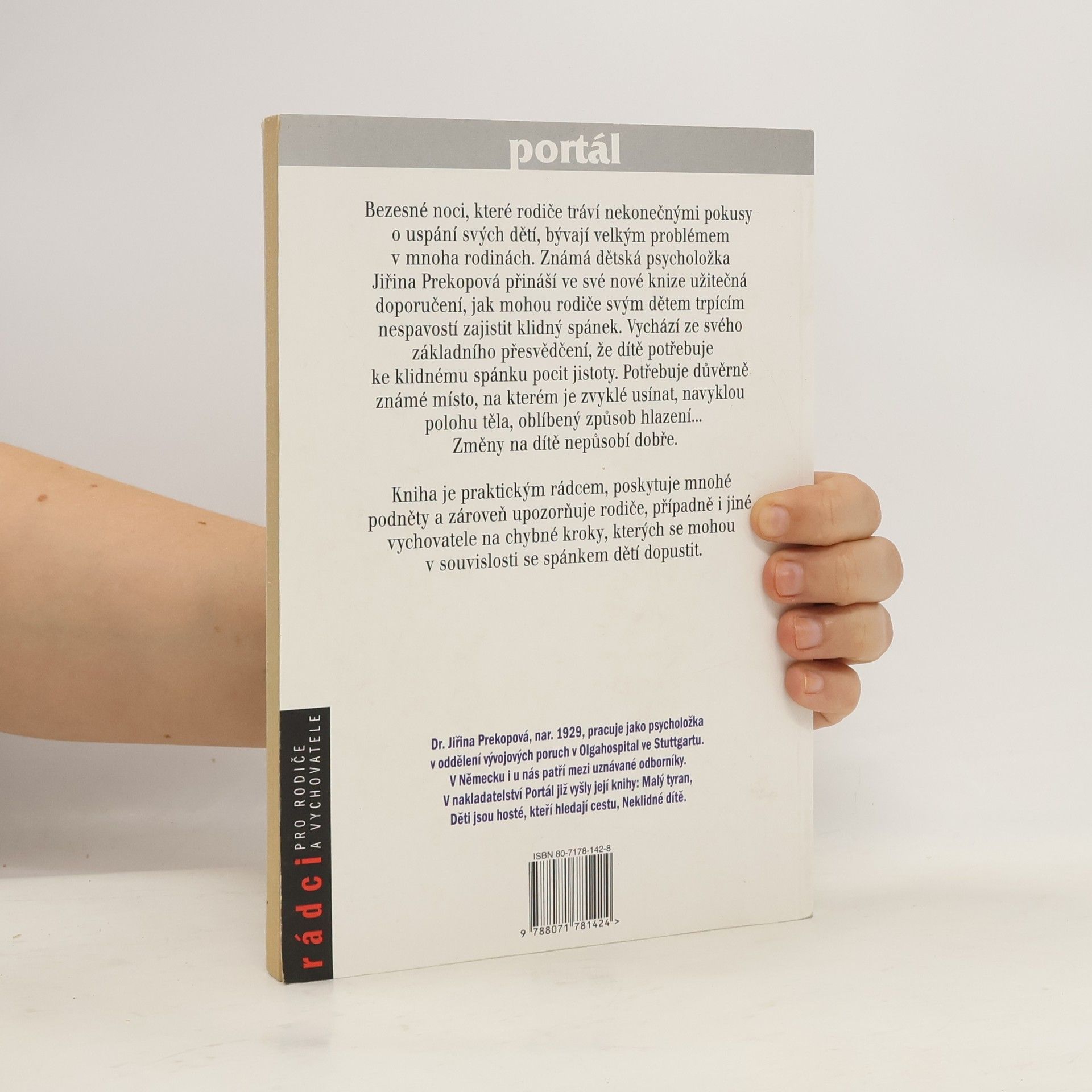 Bezesné noci, které rodiče tráví nekonečnými pokusy o uspání svých dětí, bývají velkým problémem v mnoha rodinách. Známá dětská psycholožka Jiřina Prekopová přináší ve své knize užitečná doporučení, jak mohou rodiče svým dětem trpícím nespavostí zajistit klidný spánek. Autorka vychází ze svého přesvědčení, že pro dítě je ke spánku důležitý pocit jistoty. Potřebuje důvěrně známé místo, na kterém je zvyklé usínat, navyklou polohu těla, oblíbený způsob hlazení… Změny na dítě nepůsobí dobře. Kniha je praktickým rádcem, poskytuje mnohé podněty a zároveň upozorňuje rodiče na chybné kroky, kterých se mohou v souvislosti se spánkem dětí dopustit. Je určena rodičům dětí od nejútlejšího věku.