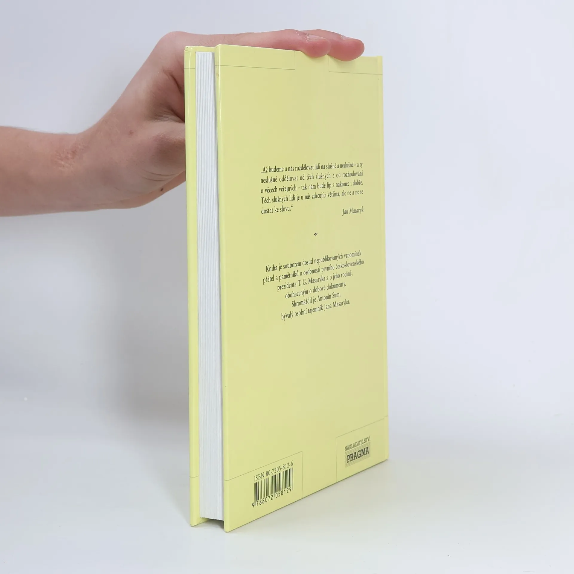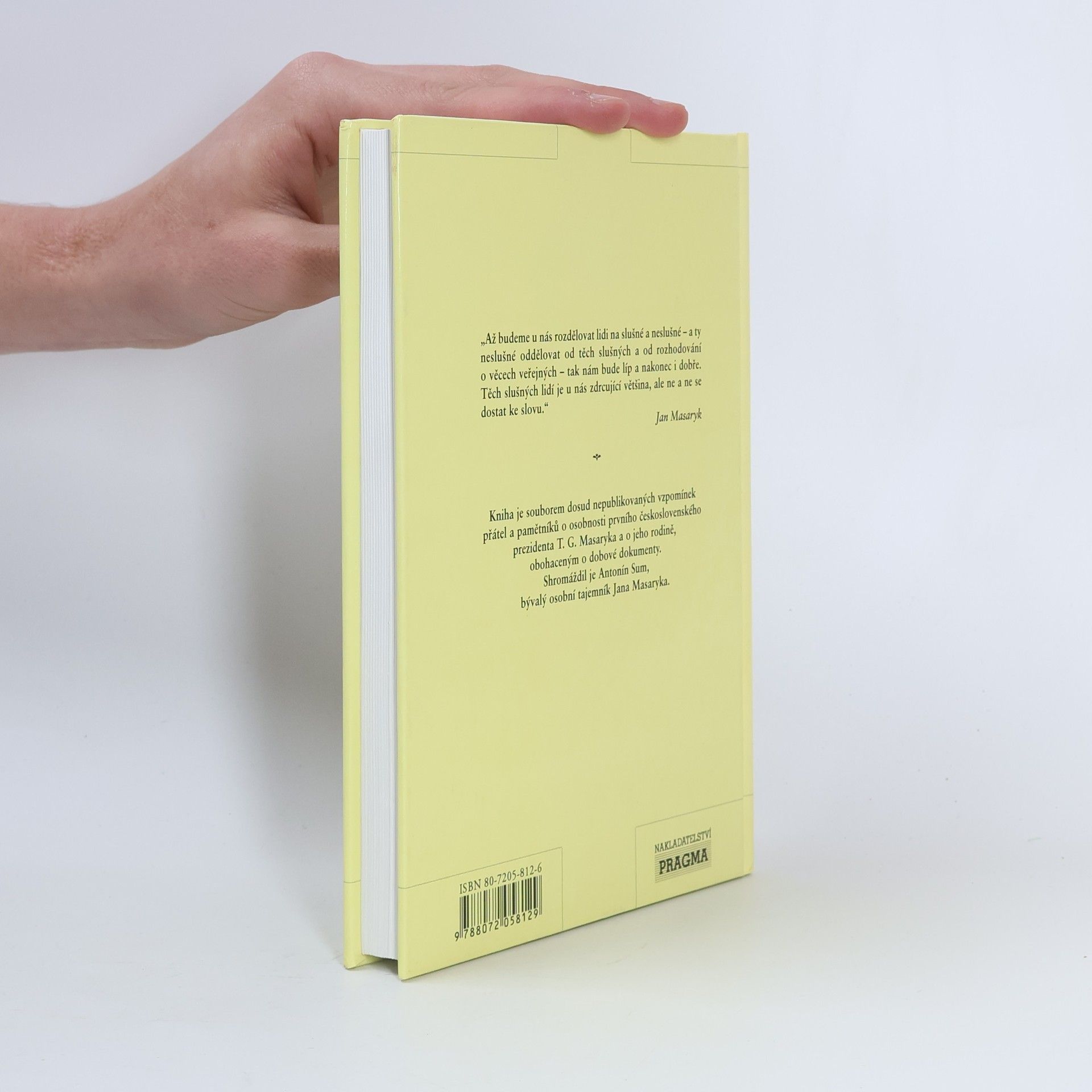 Kniha je souborem dosud nepublikovaných vzpomínek přátel a pamětníků o osobnosti prvního československého prezidenta T.G.Masaryka a o jeho rodině, obohaceným o dobové dokumenty. Shromáždil je Antonín Sum, bývalý osobní tajemník Jana Masaryka.