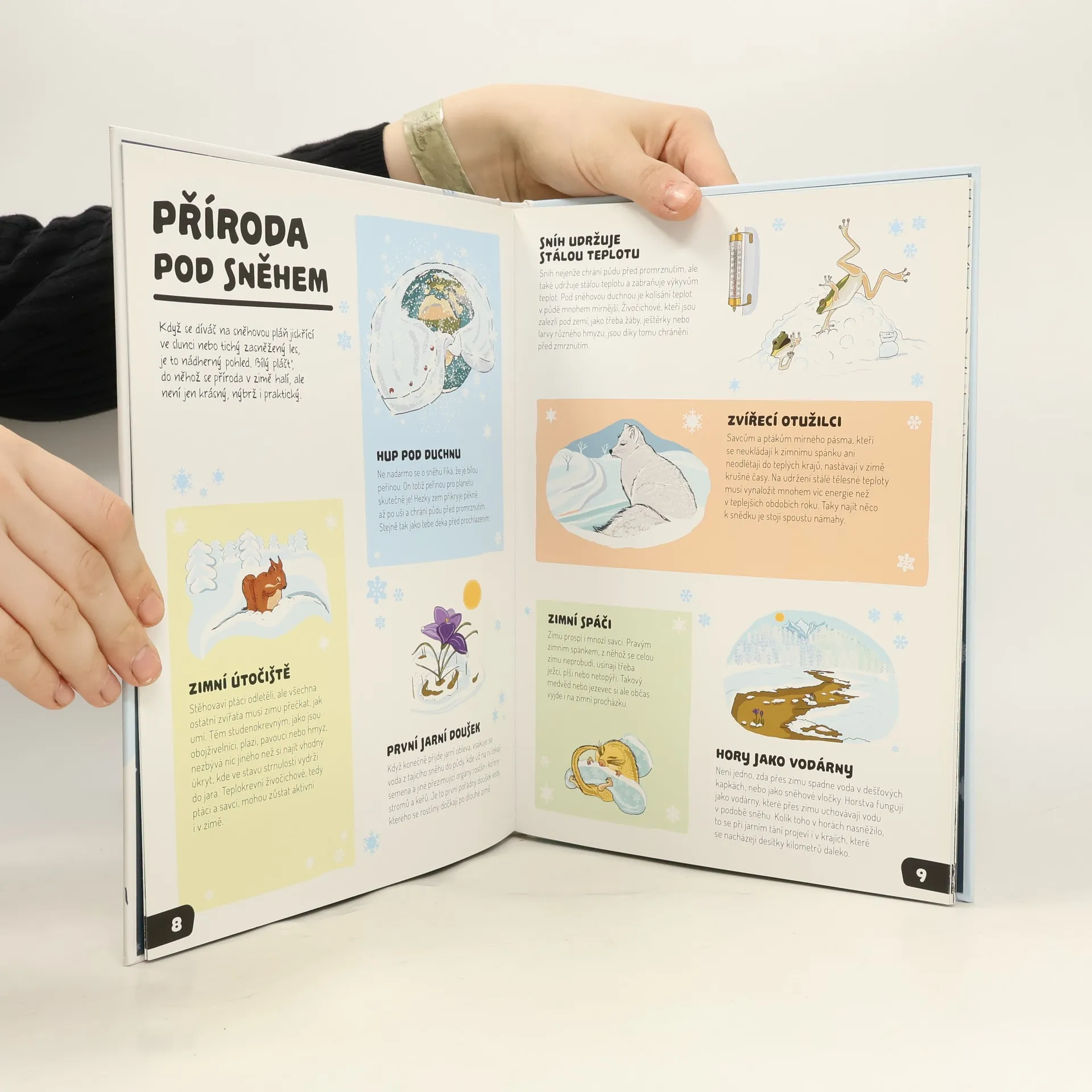 Vitajte v krajine snehu a ľadu. Čiapky a rukavice nasadiť, začína sa polárna expedícia! Ako vzniká sneh a koľko druhov snehu poznáme? Existujú dve rovnaké vločky a na čo je nám sneh a ľad? Na všetky studené otázky dostane každý záujemca mrazené odpovede v balení plnom celostranových ilustrácií, roztváracích chlopní a informácií o zime. Aké to je, keď sa na človeka valí lavína? Ako dobre sa býva v iglu a spí na lôžku zo stvrdnutého ľadu? Čitateľ, ktorý to chce vedieť, nech neváha a vyskúša... Bez teplých rukavíc, šálu a poriadnej čapice sa ale nezaobíde. Pozor... blíži sa snehová búrka!