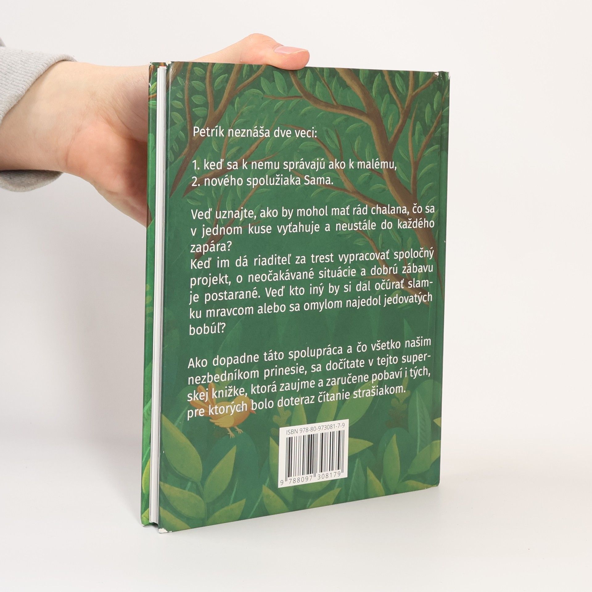 Petrík neznáša dve veci: 1. keď sa k nemu správajú ako k malému, 2. nového spolužiaka Sama. Veď uznajte, ako by mohol mať rád chalana, čo sa v jednom kuse vyťahuje a neustále do každého zapára? Keď im dá riaditeľ za trest vypracovať spoločný projekt, o neočakávané situácie a dobrú zábavu je postarané. Veď kto iný by si dal očúrať slamku mravcom alebo sa omylom najedol jedovatých bobúľ? Ako dopadne táto spolupráca a čo všetko našim nezbedníkom prinesie, sa dočítate v tejto superskej knižke, ktorá zaujme a zaručene pobaví i tých, pre ktorých bolo doteraz čítanie strašiakom.