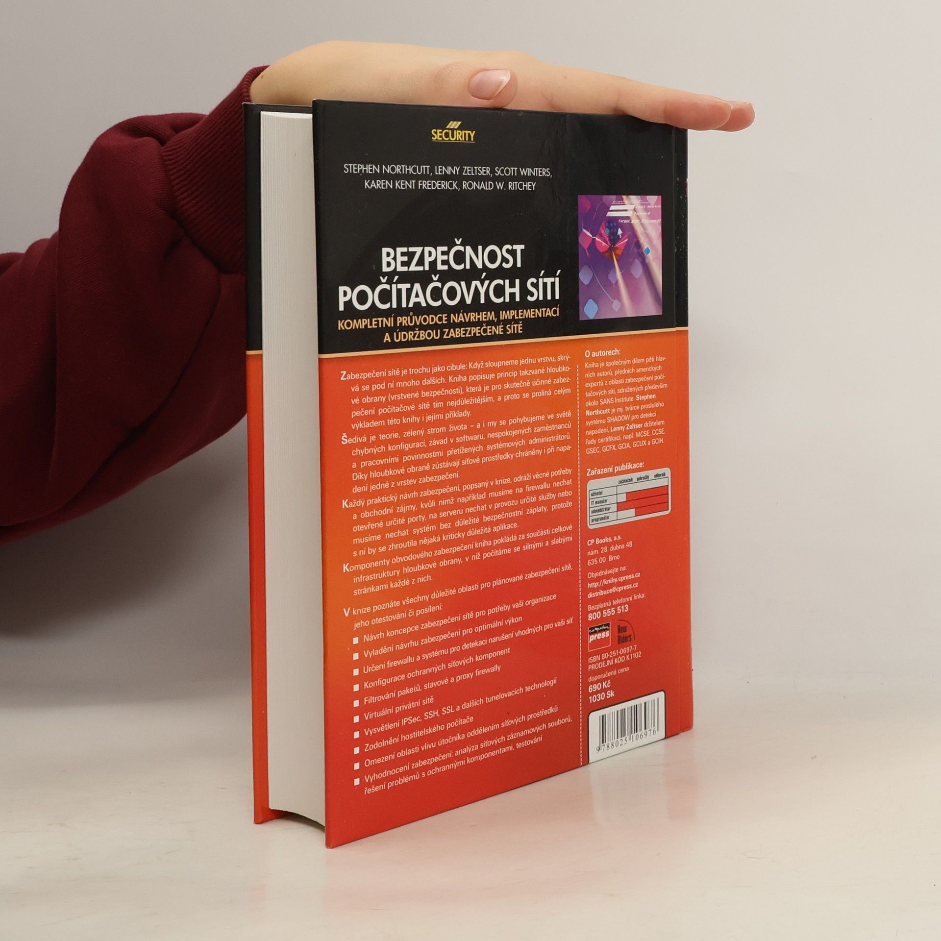 Zabezpečení sítě se podobá cibuli, kde každá vrstva skrývá další. Kniha se zaměřuje na hloubkovou obranu (vrstvenou bezpečnost), klíčový prvek pro efektivní ochranu počítačové sítě, a tento princip prostupuje celým výkladem a příklady. V reálném světě se potýkáme s chybami v konfiguracích, softwarovými závadami a přetíženými administrátory. Hloubková obrana zajišťuje ochranu síťových prostředků i při napadení jedné vrstvy. Praktické návrhy zabezpečení reflektují obchodní potřeby, jako je nutnost otevření portů na firewallu nebo provoz určitých služeb na serveru, což může znamenat, že některé bezpečnostní záplaty zůstanou neaplikované. Kniha považuje komponenty obvodového zabezpečení za součást celkové infrastruktury hloubkové obrany, zohledňující jejich silné a slabé stránky. Čtenáři se seznámí s klíčovými oblastmi plánování, testování a posílení zabezpečení sítě, včetně návrhu koncepce zabezpečení, optimalizace výkonu, výběru firewallu a systémů pro detekci narušení, konfigurace ochranných komponent, filtrování paketů, virtuálních privátních sítí a analýzy síťových záznamů. Kniha je dílem pěti expertů na zabezpečení počítačových sítí, včetně Stephen Northcutt a Lennyho Zeltsera, kteří přinášejí cenné znalosti a zkušenosti z praxe.