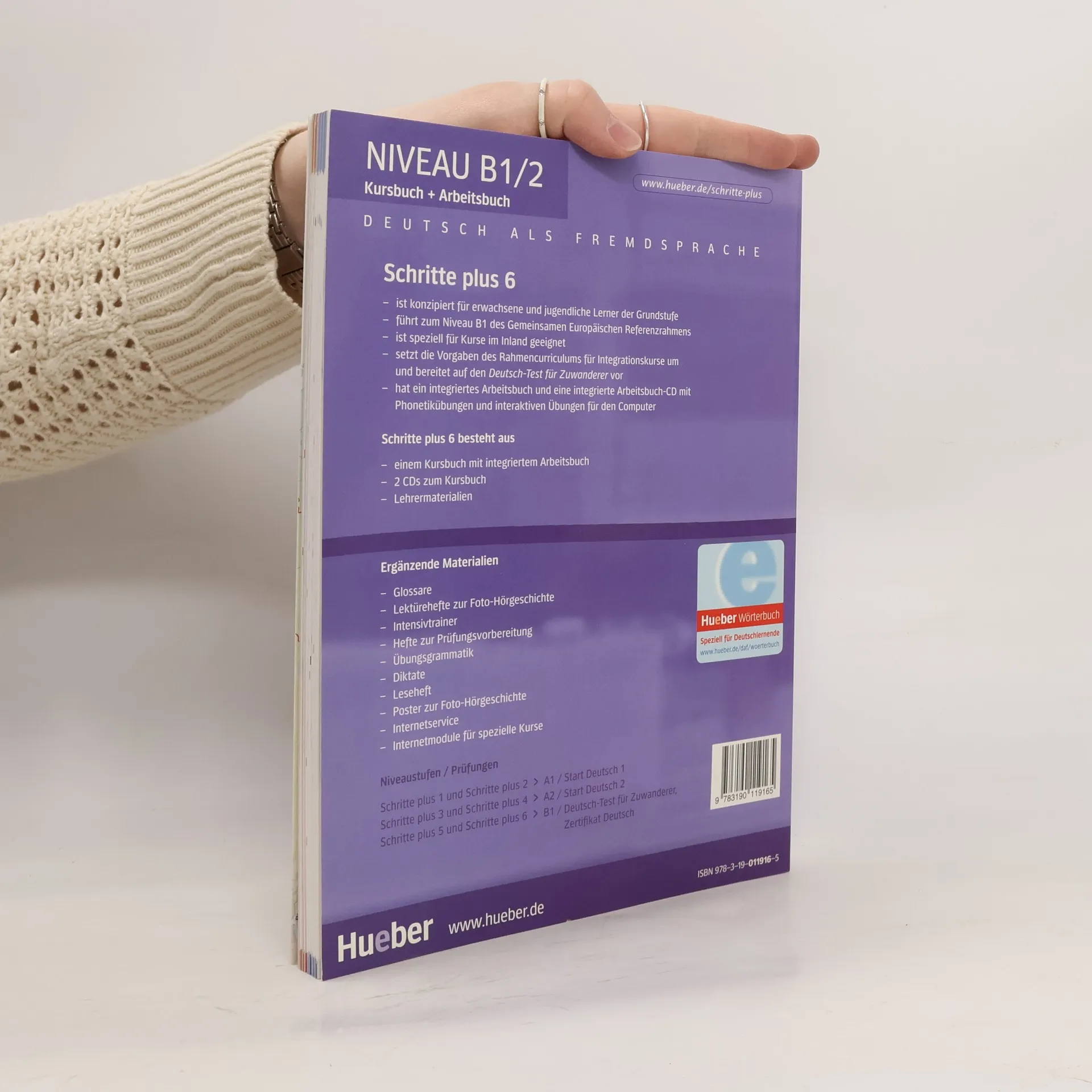 Zielniveau B1.1 – das Lehrwerk für alle, die in einem deutschsprachigen Land leben oder leben möchten, in einer neuen Bearbeitung. Schritte plus bietet Flexibilität durch zusätzliche „Zwischenspiele“ und „Fokusseiten“, interessante Texte sowie intensive Prüfungsvorbereitung in speziellen Heften. Es richtet sich an Erwachsene und Jugendliche in deutschsprachigen Ländern sowie Lernende im Ausland, die sich auf einen Aufenthalt vorbereiten. Die Inhalte orientieren sich am Gemeinsamen Europäischen Referenzrahmen und den Vorgaben des Rahmencurriculums des Bundesministeriums des Inneren. Das Kursbuch behandelt alltagsrelevante Themen und fördert die Integration in den deutschsprachigen Alltag, insbesondere in den Bereichen Familie und Arbeit. Die Lektionen sind klar strukturiert und bieten einen transparenten Aufbau. Jede Lektion beginnt mit einer unterhaltsamen Foto-Hörgeschichte, die landeskundliches Wissen vermittelt und das Hörverstehen schult. Das integrierte Arbeitsbuch enthält Übungen in verschiedenen Schwierigkeitsstufen, ein Phonetikprogramm, ein Lerntagebuch sowie Aufgaben zur Selbstevaluation. Es bietet ein systematisches Schreibtraining und fördert das selbstentdeckende Lernen grammatischer Strukturen. Schritte plus ist auch mit einer Arbeitsbuch-CD erhältlich, die Hörtexte und interaktive Übungen umfasst. Fokus-Seiten bieten zusätzlich Materialien zu Familie, Beruf und Alltag, um den speziellen Bedürfnissen der Lern