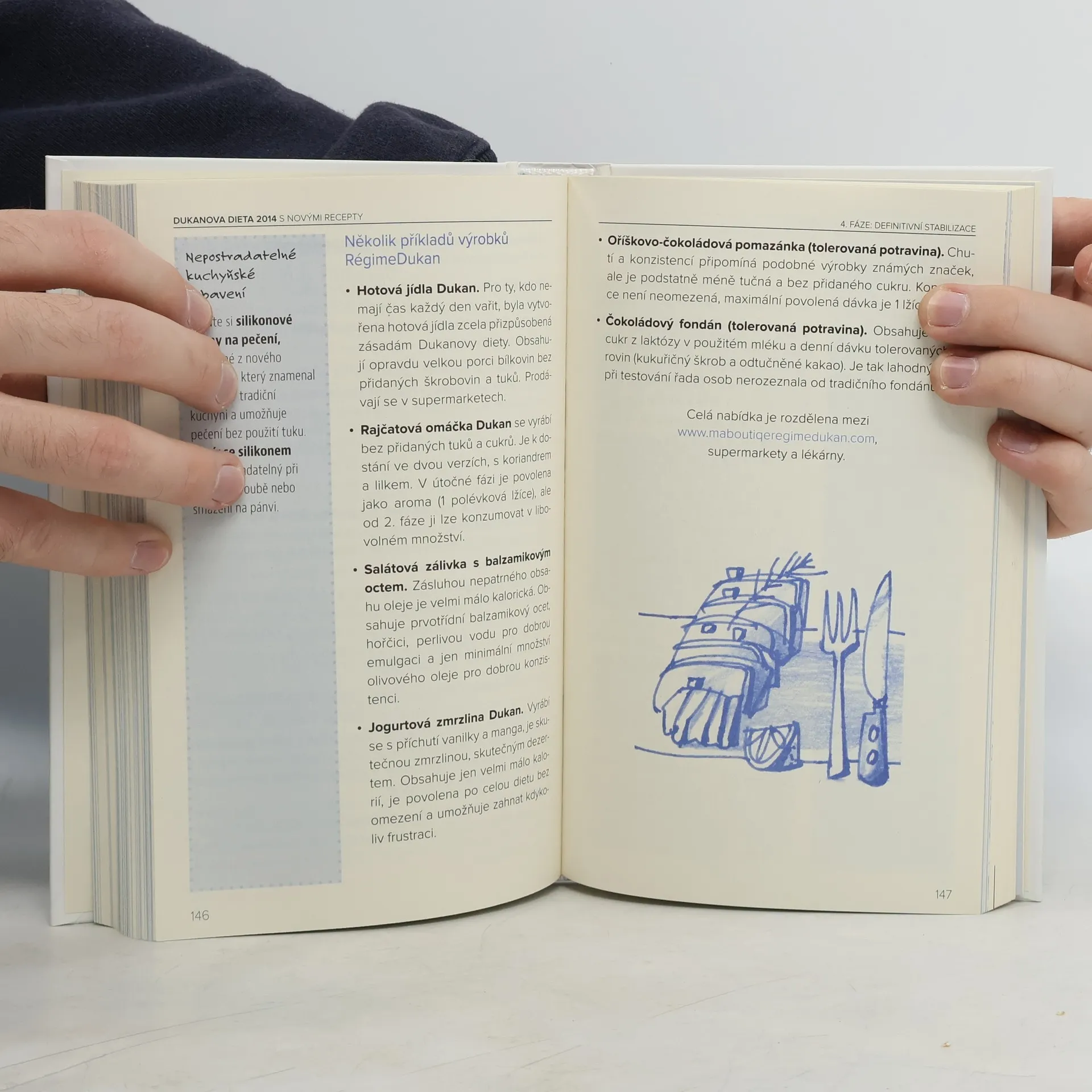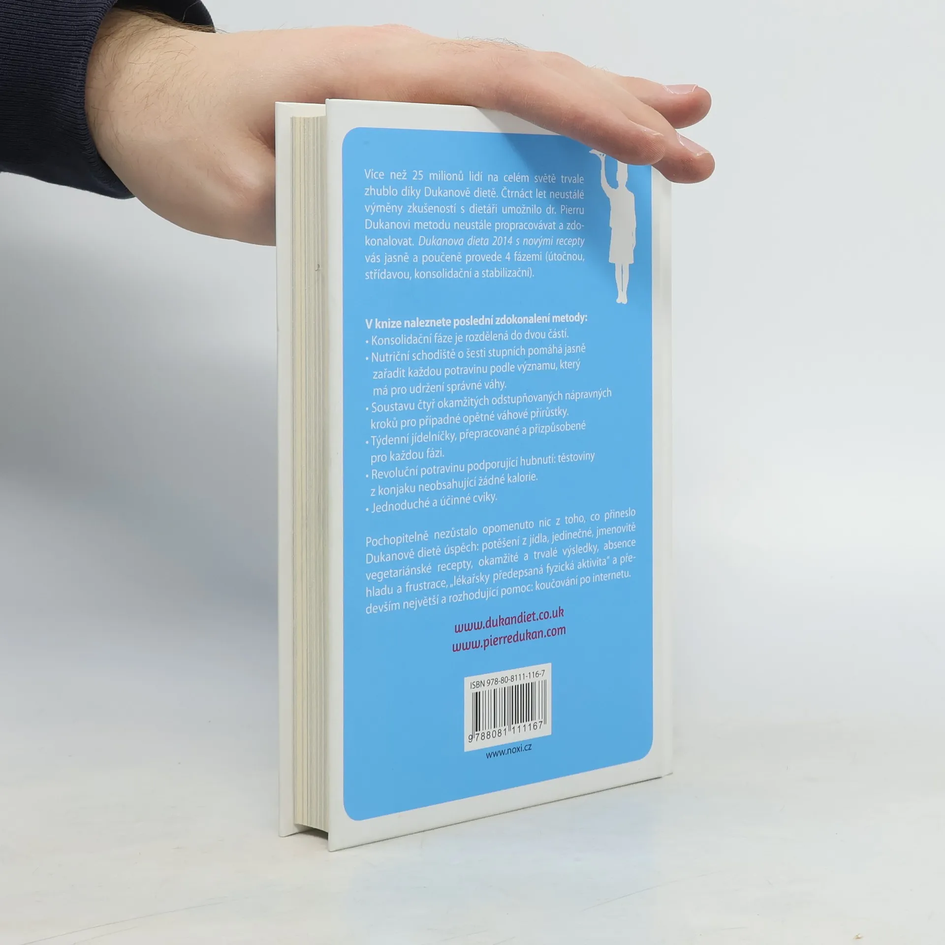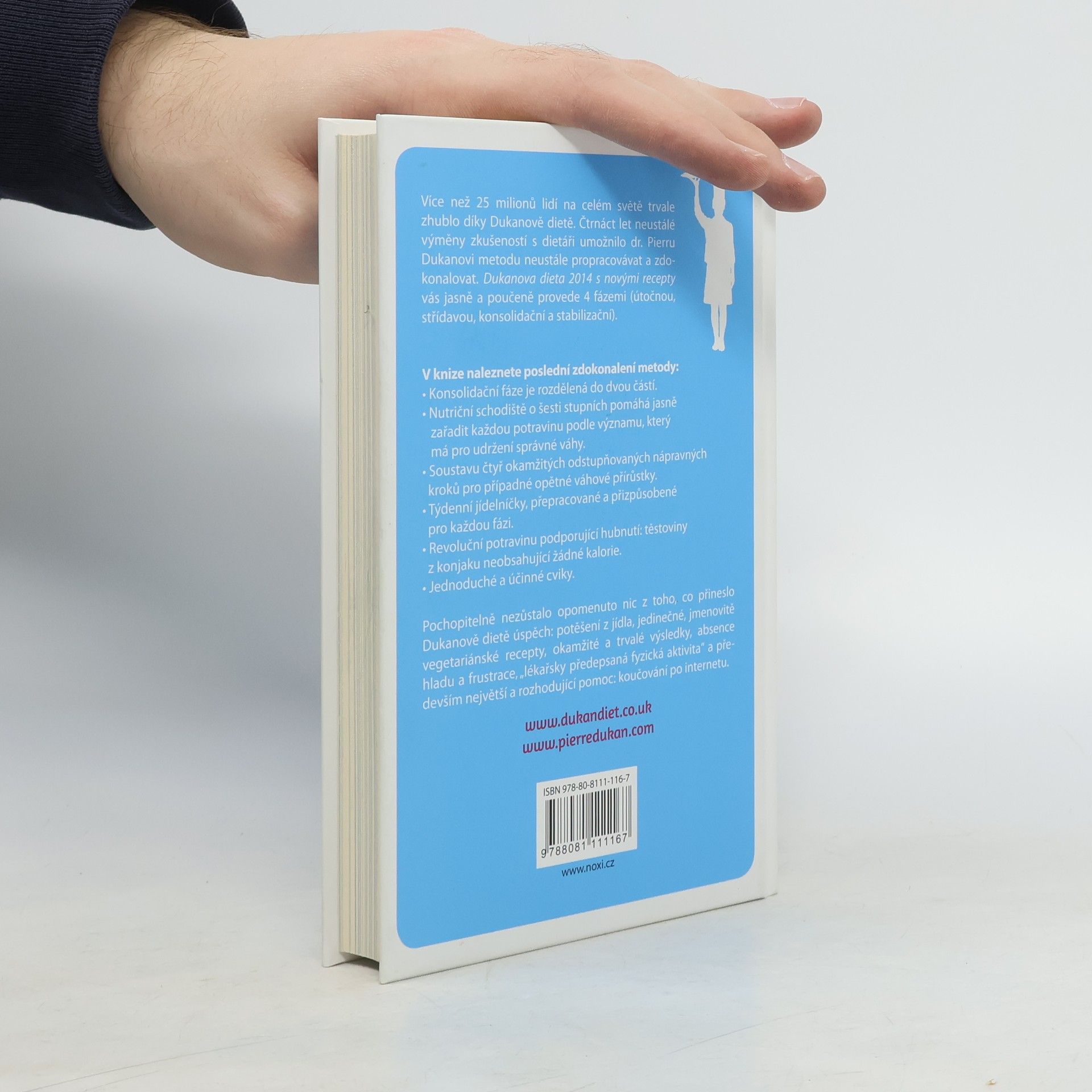 Více než 25 milionů osob na celém světě trvale zhublo díky Dukanově dietě. Čtrnáct let neustálé výměny zkušeností s dietáři umožnilo dr. Pierru Dukanovi metodu neustále propracovávat a zdokonalovat. Dukanova dieta s novými recepty i pro vegetariány vás jasně a poučeně provede 4 fázemi (útočnou, střídavou, konsolidační a stabilizační). V knize nalezete poslední zdokonalení metody: • Konsolidační fáze je rozdělená do dvou částí. • Nutriční schodiště o šesti stupních pomáhá jasně zařadit každou potravinu podle významu, který má pro udržení správné váhy. • Soustavu čtyř okamžitých odstupňovaných nápravných kroků pro případné opětné váhové přírůstky. • Týdenní jídelníčky, přepracované a přizpůsobené pro každou fázi. • Revoluční potravinu podporující hubnutí: těstoviny z konjaku neobsahující žádné kalorie. • Jednoduché a účinné cviky s ilustračními fotografiemi. Pochopitelně nezůstalo opomenuto nic z toho, co přineslo Dukanově dietě úspěch: potěšení z jídla, jedinečné, jmenovitě vegetariánské recepty, okamžité a trvalé výsledky, absence hladu a frustrace, „lékařsky předepsaná fyzická aktivita“, smlouva o krátkodobé, střednědobé a dlouhodobé stabilizaci – a především největší a rozhodující pomoc: koučování po internetu.