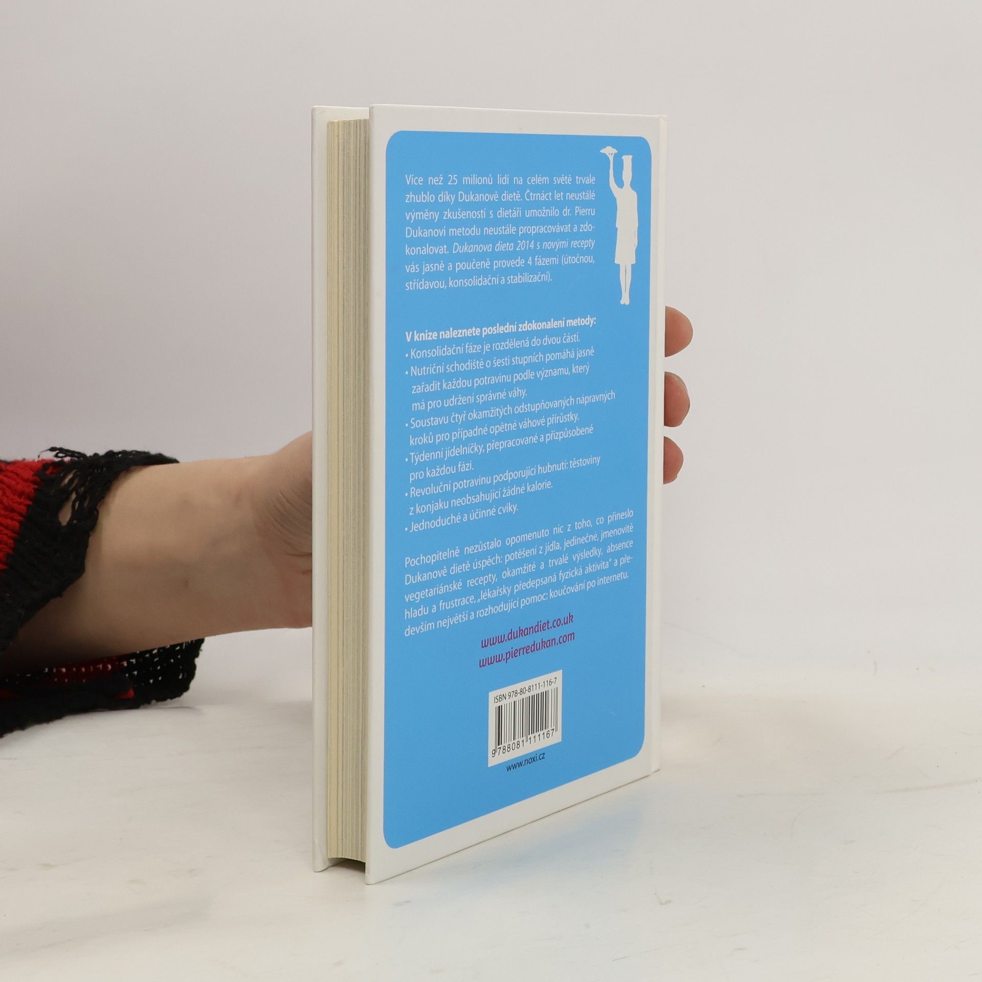 Více než 25 milionů osob na celém světě trvale zhublo díky Dukanově dietě. Čtrnáct let neustálé výměny zkušeností s dietáři umožnilo dr. Pierru Dukanovi metodu neustále propracovávat a zdokonalovat. Dukanova dieta s novými recepty i pro vegetariány vás jasně a poučeně provede 4 fázemi (útočnou, střídavou, konsolidační a stabilizační). V knize nalezete poslední zdokonalení metody: • Konsolidační fáze je rozdělená do dvou částí. • Nutriční schodiště o šesti stupních pomáhá jasně zařadit každou potravinu podle významu, který má pro udržení správné váhy. • Soustavu čtyř okamžitých odstupňovaných nápravných kroků pro případné opětné váhové přírůstky. • Týdenní jídelníčky, přepracované a přizpůsobené pro každou fázi. • Revoluční potravinu podporující hubnutí: těstoviny z konjaku neobsahující žádné kalorie. • Jednoduché a účinné cviky s ilustračními fotografiemi. Pochopitelně nezůstalo opomenuto nic z toho, co přineslo Dukanově dietě úspěch: potěšení z jídla, jedinečné, jmenovitě vegetariánské recepty, okamžité a trvalé výsledky, absence hladu a frustrace, „lékařsky předepsaná fyzická aktivita“, smlouva o krátkodobé, střednědobé a dlouhodobé stabilizaci – a především největší a rozhodující pomoc: koučování po internetu.