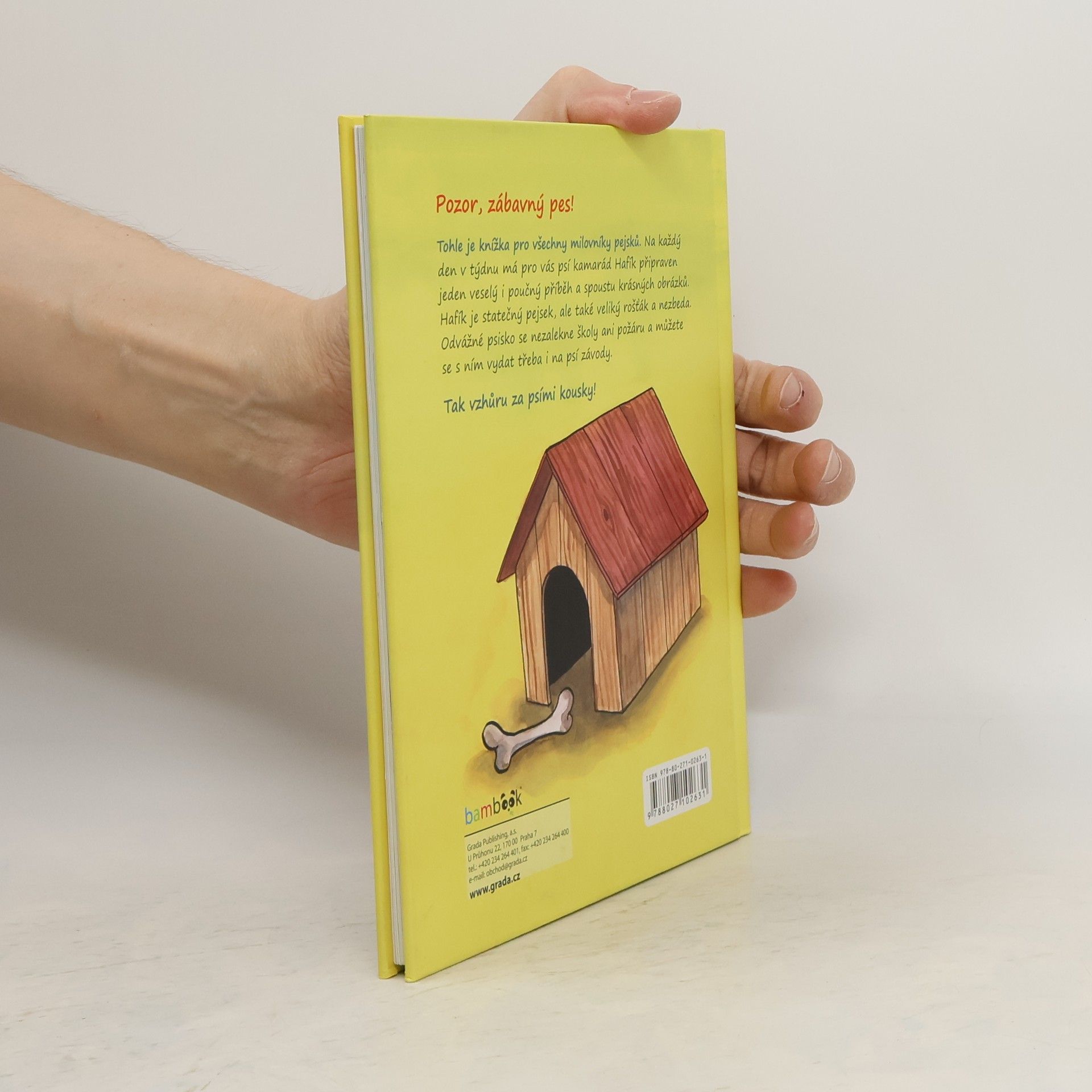 Hafík je milý a hodný pejsek, taky trochu rošťák a neposeda. Bydlí v boudičce na dvoře u Marků v Pěkněnicích a touží být velmi statečný. Hafík chce být hrdinou. Rozumí se samo sebou, že pejskové se nesmějí bát ničeho. Ovšem co nejméně Hafíka baví, je hlídání. To přece není žádná zábava! A tak to roztomilé psisko často utíká ze dvorečku za dobrodružstvími, o kterých si teď může přečíst každý milovník pejsků. Neváhejte a vzhůru za psími kousky!