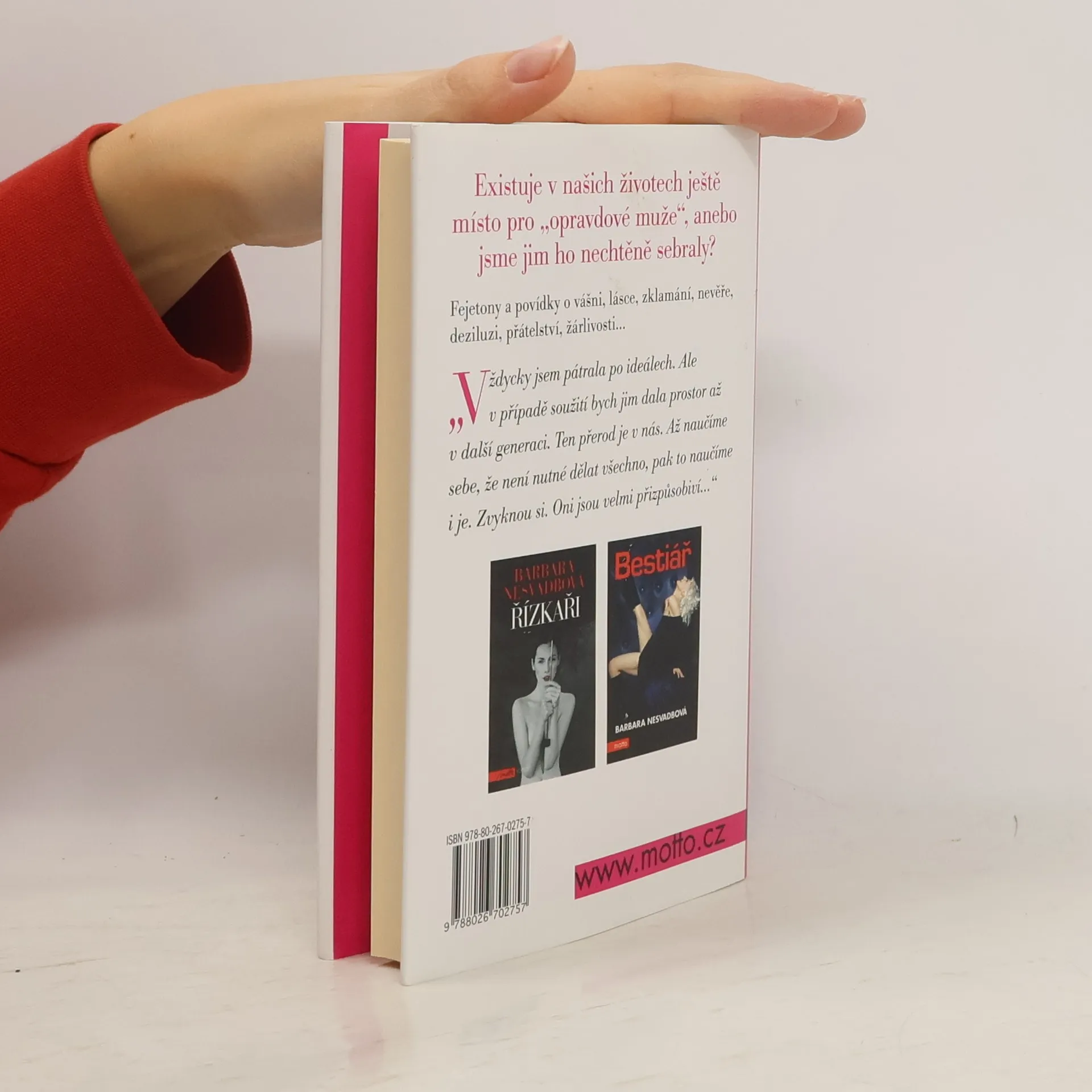 Existuje v našich životech ještě místo pro „opravdové muže“, a nebo jsme jim ho nechtěně sebraly? Fejetony a povídky Barbary Nesvadbové o vášni, lásce, zklamání, nevěře, deziluzi, zášti, přátelství i žárlivosti.