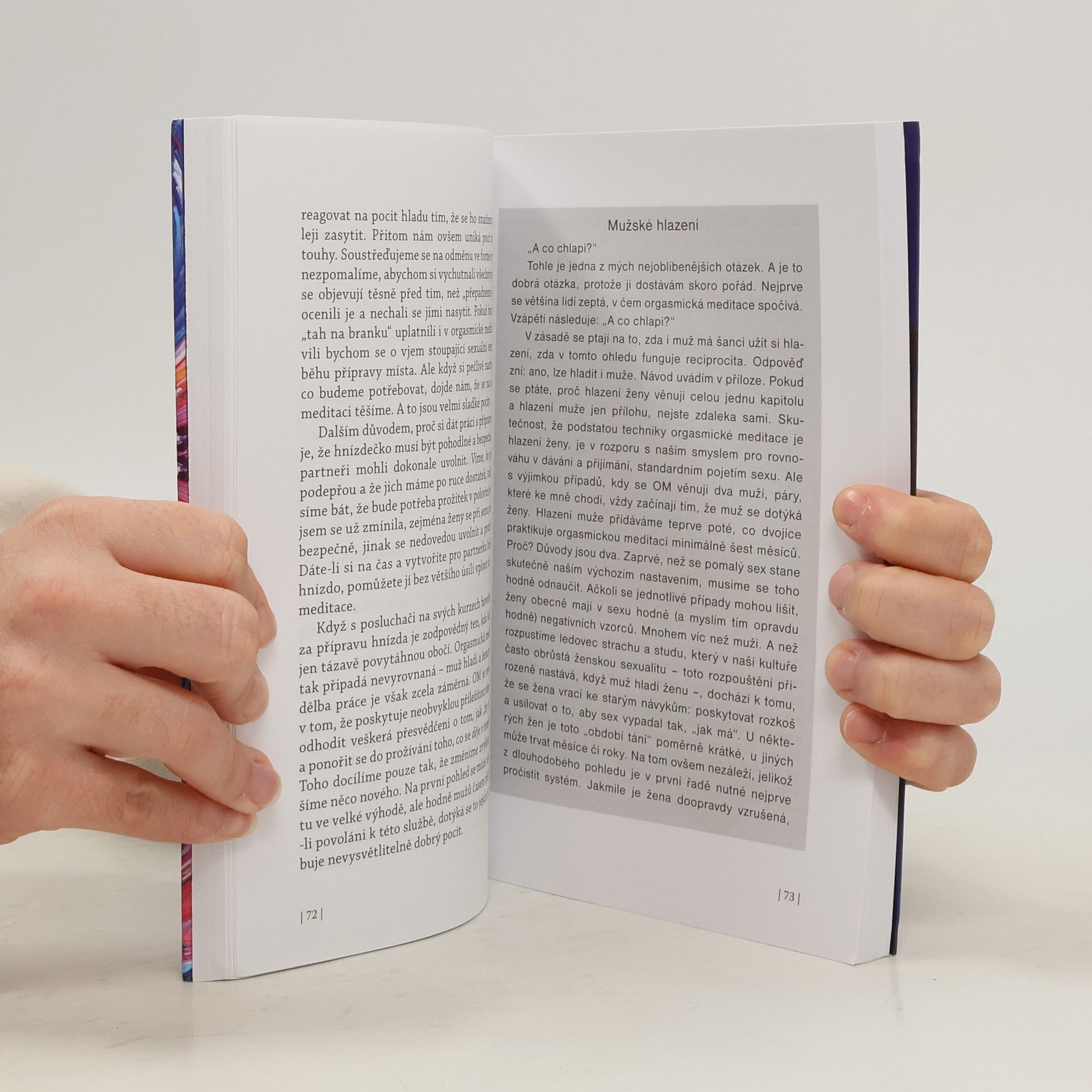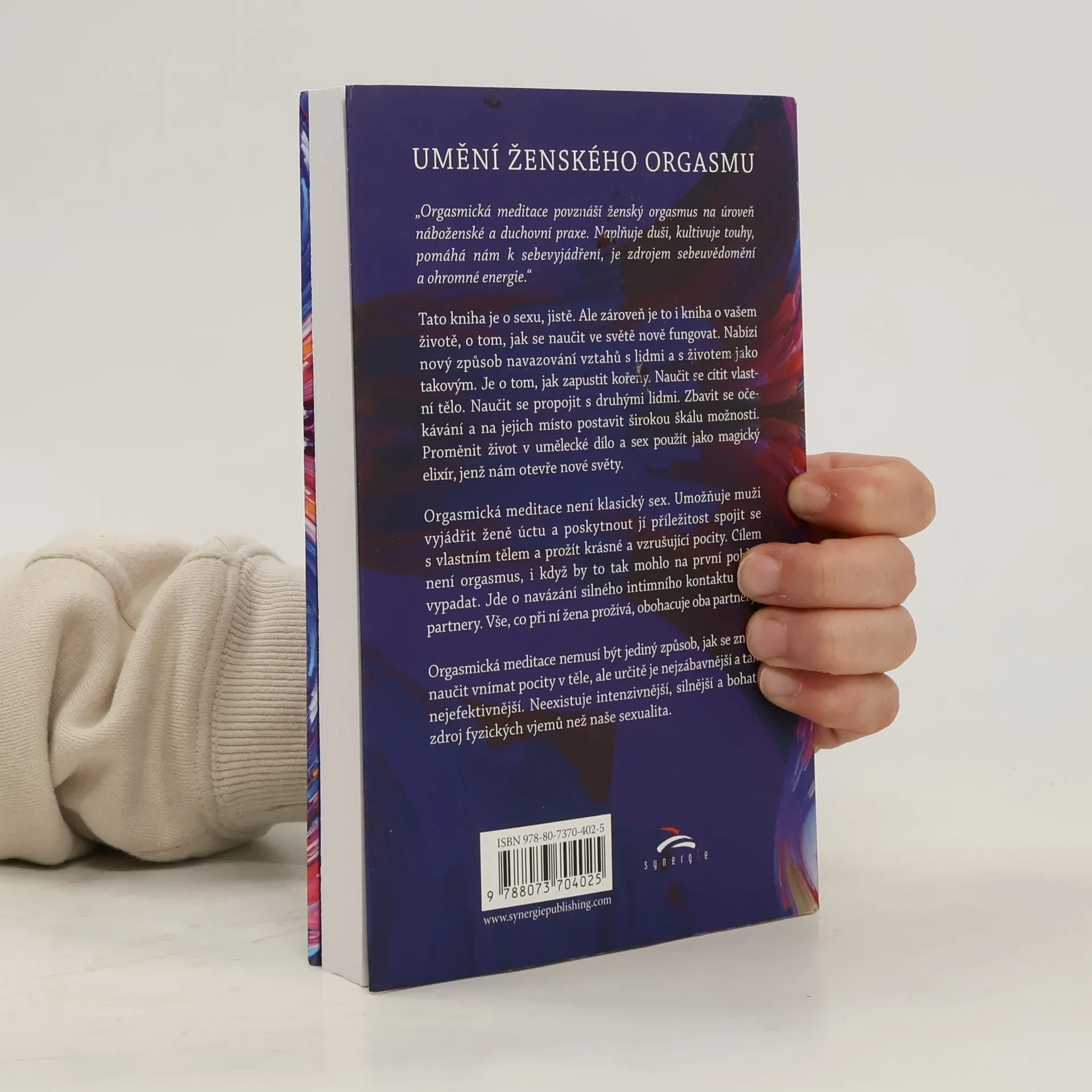 „Orgasmická meditace povznáší ženský orgasmus na úroveň náboženské a duchovní praxe. Naplňuje duši, kultivuje touhy, pomáhá nám k sebevyjádření, je zdrojem sebeuvědomění a ohromné energie.“ Tato kniha je o sexu, jistě. Ale zároveň je to i kniha o vašem životě, o tom, jak se naučit ve světě nově fungovat. Nabízí nový způsob navazování vztahů s lidmi a s životem jako takovým. Je o tom, jak zapustit kořeny. Naučit se cítit vlastní tělo. Naučit se propojit s druhými lidmi. Zbavit se očekávání a na jejich místo postavit širokou škálu možností. Proměnit život v umělecké dílo a sex použít jako magický elixír, jenž nám otevře nové světy. Orgasmická meditace není klasický sex. Umožňuje muži vyjádřit ženě úctu a poskytnout jí příležitost spojit se s vlastním tělem a prožít krásné a vzrušující pocity. Cílem není orgasmus, i když by to tak mohlo na první pohled vypadat. Jde o navázání silného intimního kontaktu mezi partnery. Vše, co při ní žena prožívá, obohacuje oba dva. Orgasmická meditace nemusí být jediný způsob, jak se znovu naučit vnímat pocity v těle, ale určitě je nejzábavnější a také nejefektivnější. Neexistuje intenzivnější, silnější a bohatší zdroj fyzických vjemů než naše sexualita.