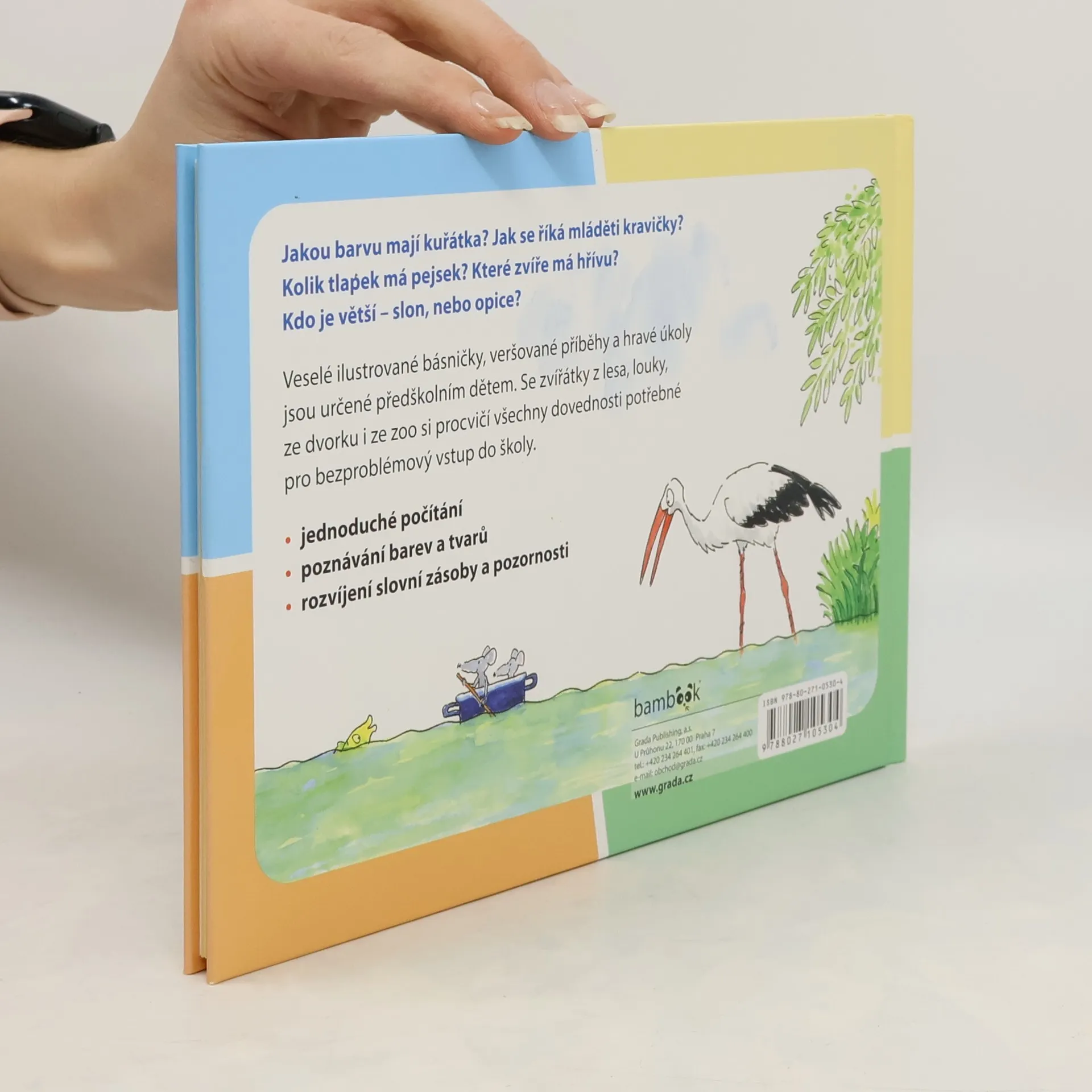 Čtěte, hrajte si a připravte své dítě na první třídu! Jakou barvu mají kuřátka? Jak se říká mláděti kravičky? Kolik tlapek má pejsek? Které zvíře má hřívu? Kdo je větší – slon, nebo opice? Veselé ilustrované básničky, veršované příběhy a hravé úkoly jsou určené předškolním dětem. Se zvířátky z lesa, louky, ze dvorku i ze zoo si procvičí všechny dovednosti potřebné pro bezproblémový vstup do školy.