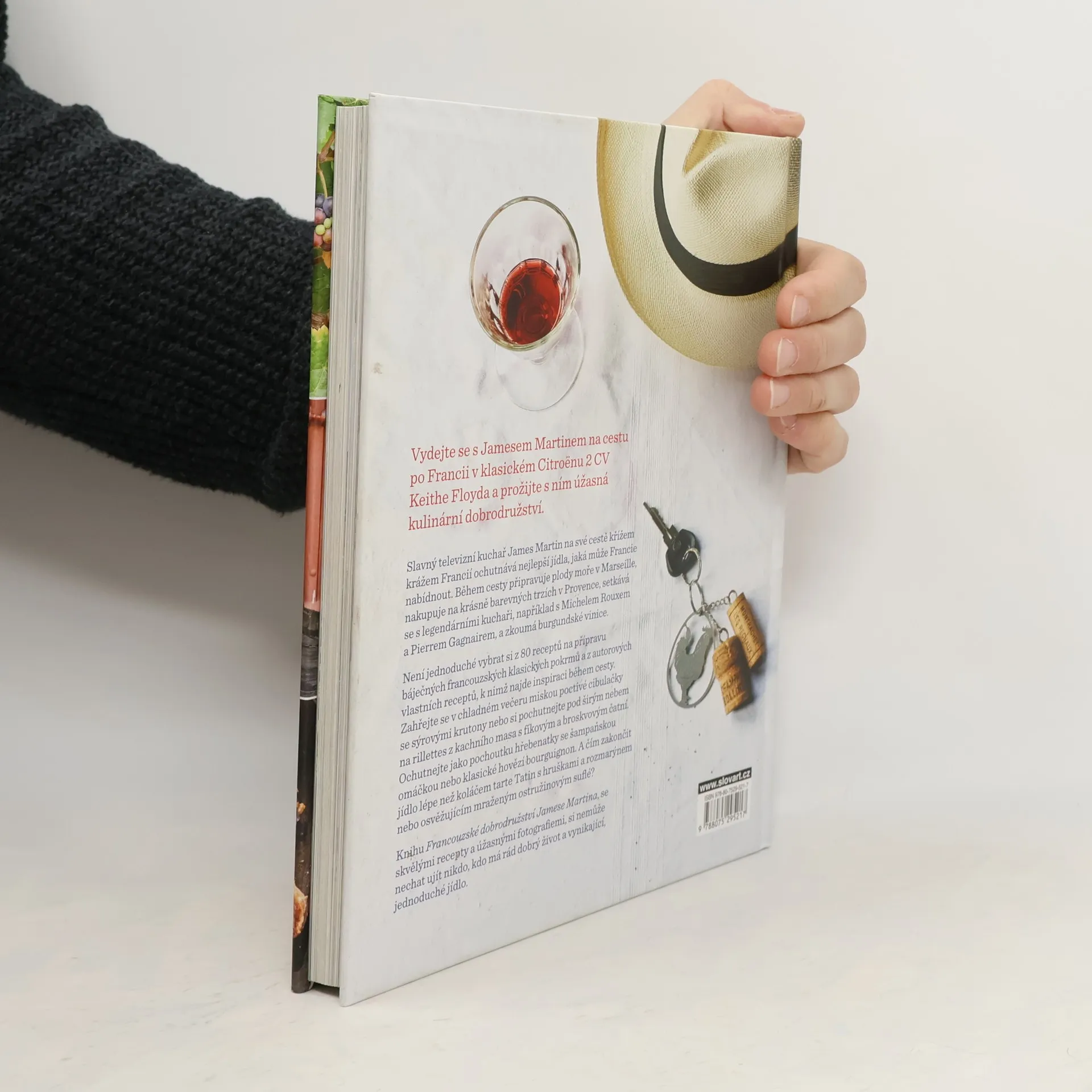 80 klasických francouzských receptů. Vydejte se s kuchařem Jamesem Martinem, kterého zřejmě znáte z TV Paprika, na cestu po Francii v klasickém Citroënu 2 a prožijte s ním úžasná kulinární dobrodružství. Na cestě křížem krážem zemí ochutnává nejlepší jídla, nakupuje na trzích a vaří – zahřejte se jeho poctivou cibulačkou se sýrovými krutony, pochutnejte si na rillettes z kachního masa s fíkovým a broskvovým čatní, připravte si pstruha s mandlemi a fazolkami, zařaďte do svého repertoáru klasické hovězí po burgundsku nebo králíka v hořčičné omáčce, naučte se správně udělat brambory gratin dauphinois či salade niçoise s grilovaným tuňákem. A čím zakončit jídlo lépe než koláčem tarte Tatin s hruškami a rozmarýnem nebo mraženým ostružinovým suflé…