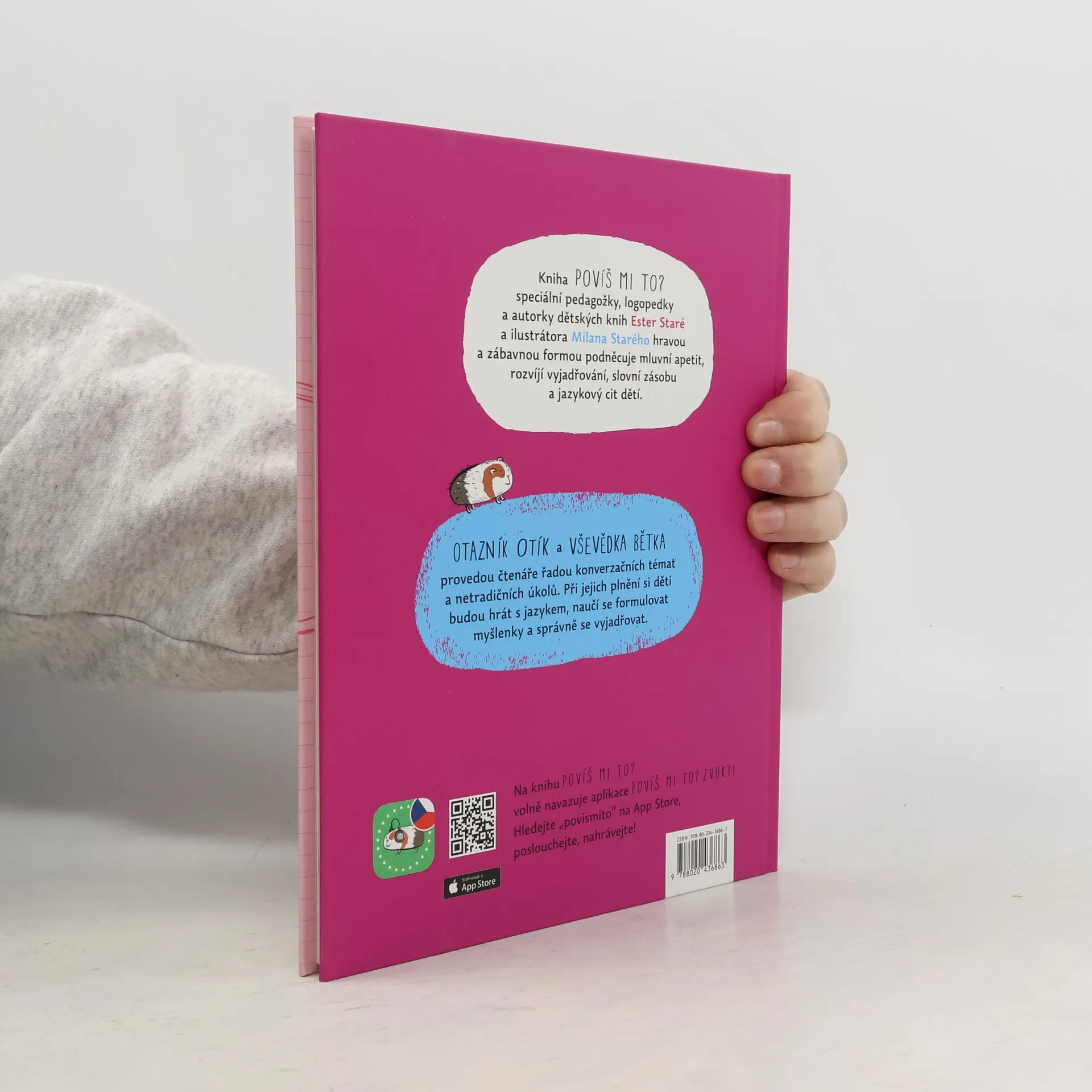 Kniha speciální pedagožky, logopedky a autorky dětských knih Ester Staré a ilustrátora Milana Starého nenásilně a zábavnou formou podněcuje mluvní apetit, rozvíjí vyjadřovací schopnosti, slovní zásobu a jazykový cit dítěte. Děti se prostřednictvím rozmanitých konverzačních témat a netradičních úkolů učí utřídit si a zformulovat myšlenky, hrát si s jazykem a správně se vyjadřovat. Bohatě ilustrovaná kniha vybízí k mluvení i svou grafickou podobou. Publikace je určena jak dětem a jejich rodičům, tak i logopedům a učitelům. V závěru jsou zařazeny stručné poznámky, které rodiče procvičovanou problematikou provedou a poradí jim, jak s knihou správně pracovat.